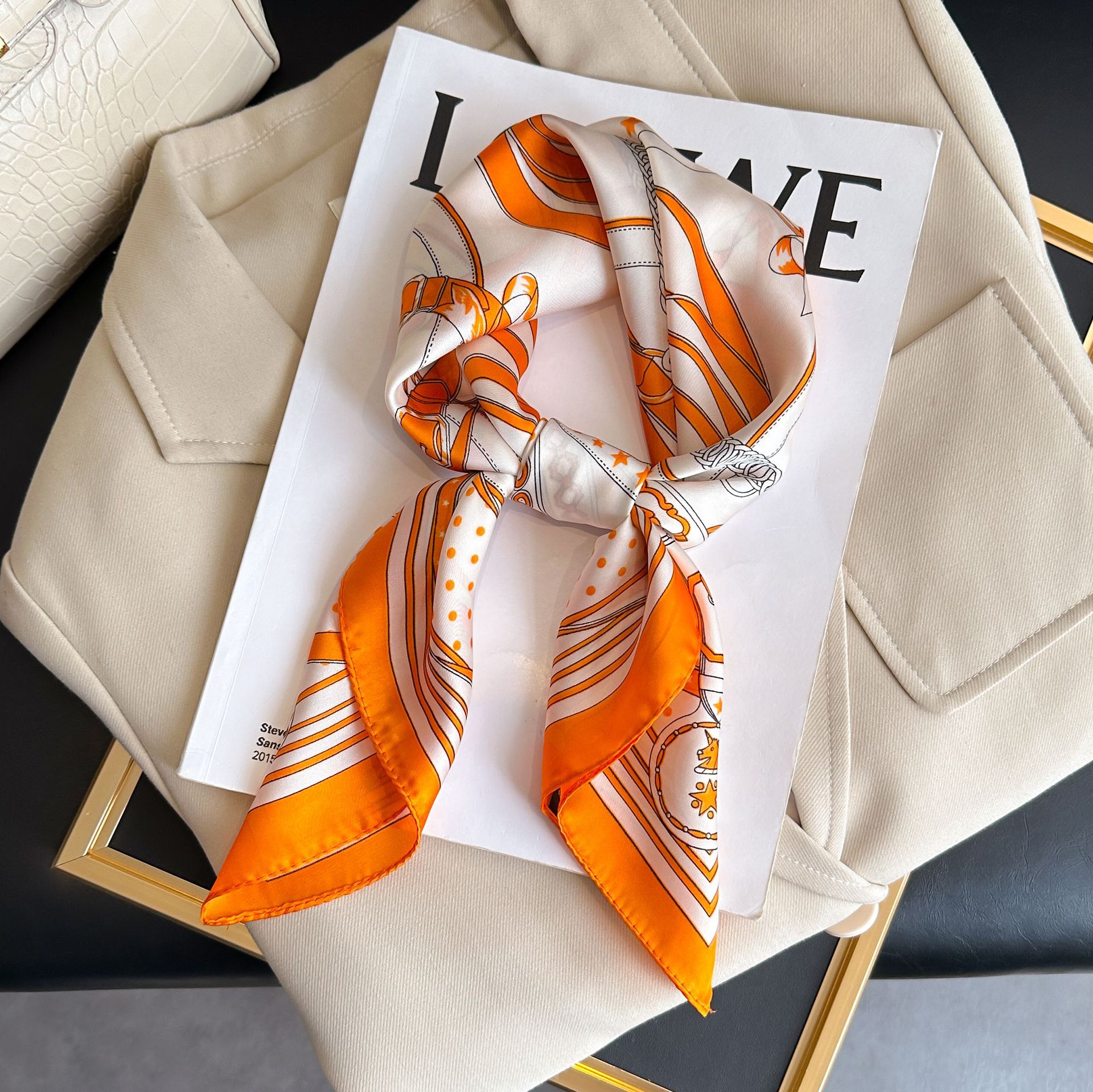 • 크로스보더 캐슈 오렌지 실크 스카프