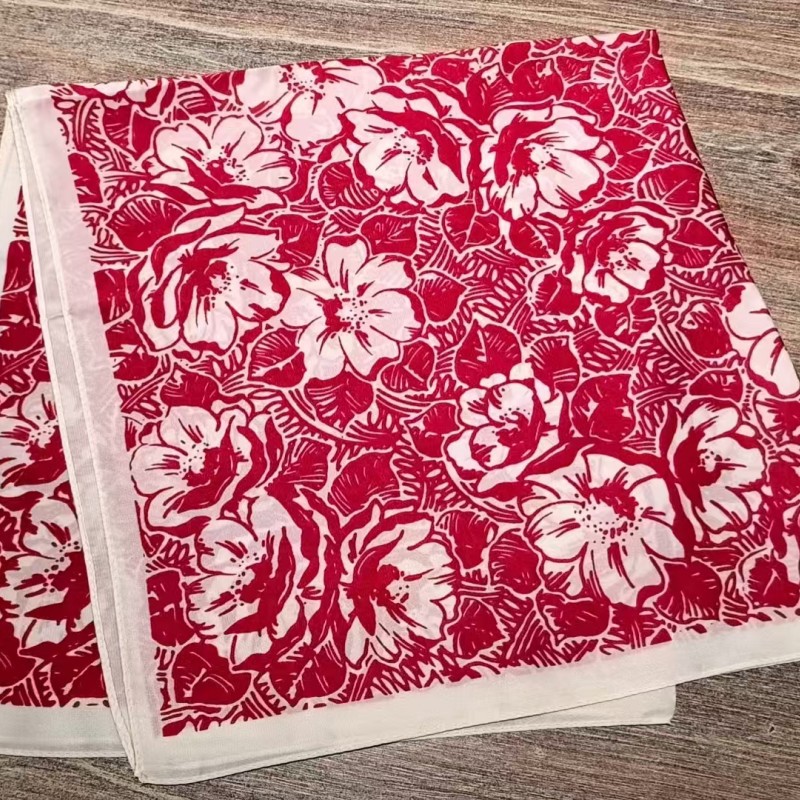 • 크로스보더 캐슈 로즈 레드 실크 스카프