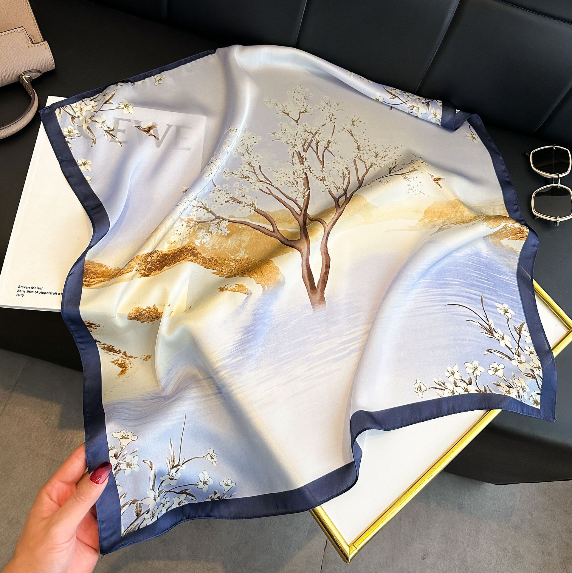 • 스플라이스 캐슈넛 네이비 블루 실크 스카프
