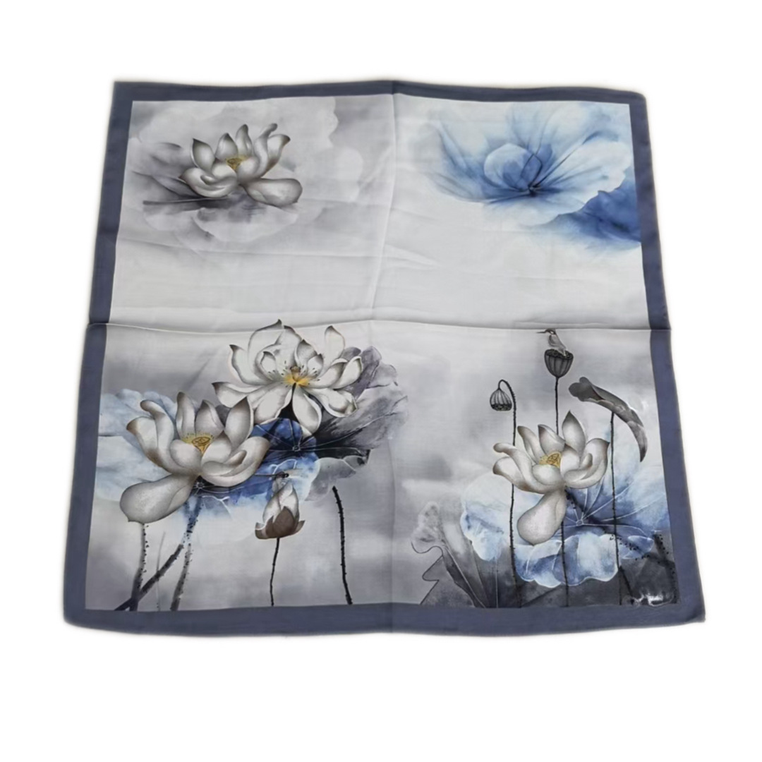 • 캐슈 꽃 흰색 실크 스카프