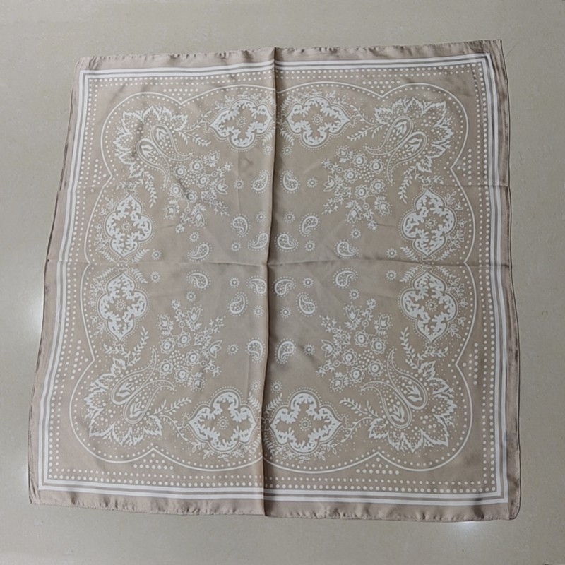 • 작은 꽃 캐슈 베이지 실크 스카프