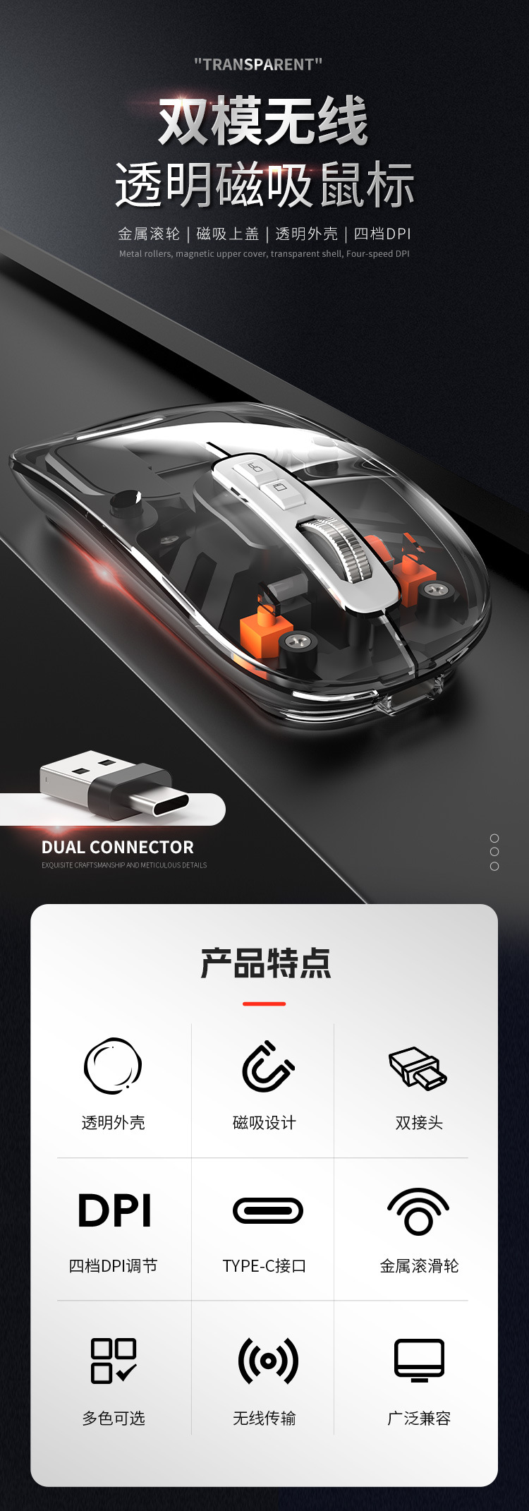 공장 직배송 선물용 맞춤형 투명 자석식 무선 블루투스 마우스 충전식 데스크탑 태블릿 겸용 투명 디자인스토어 가기