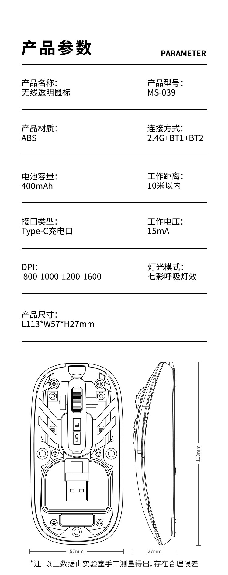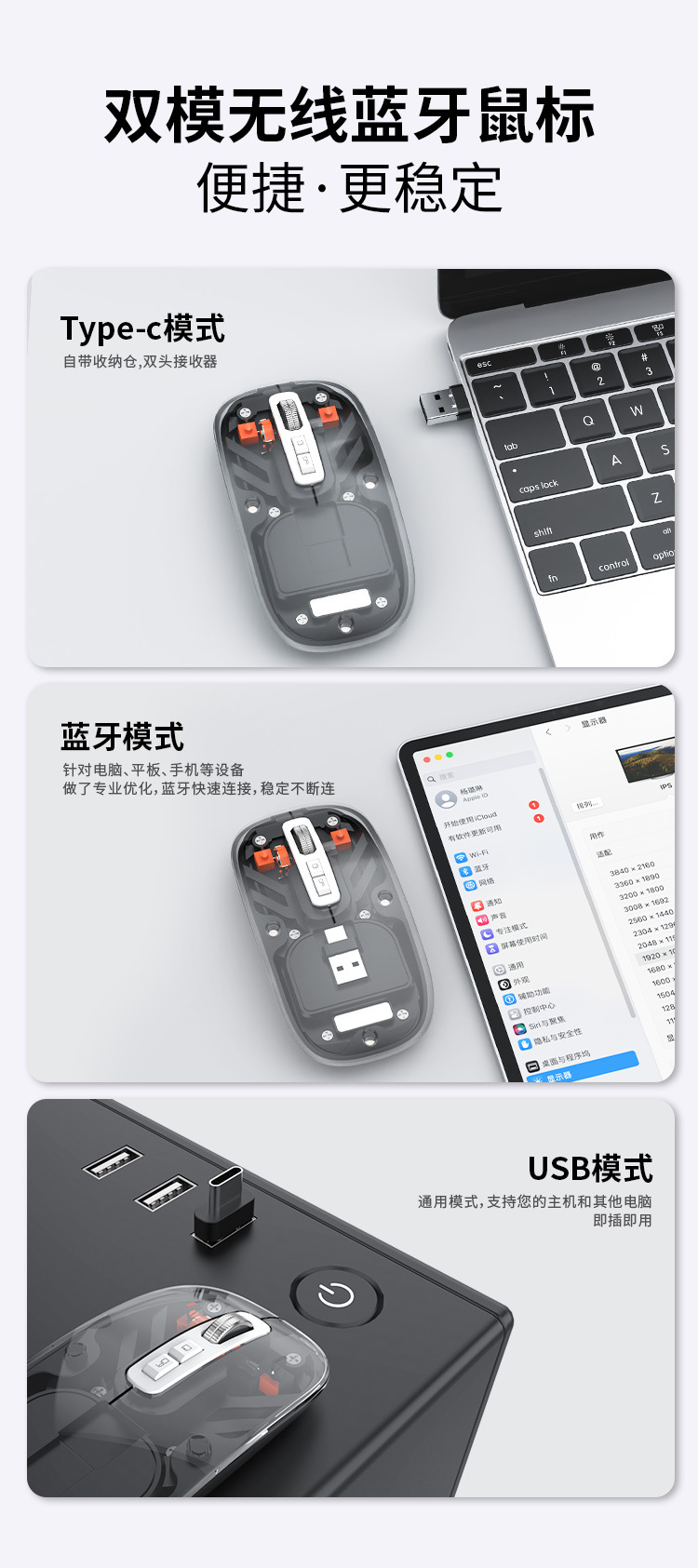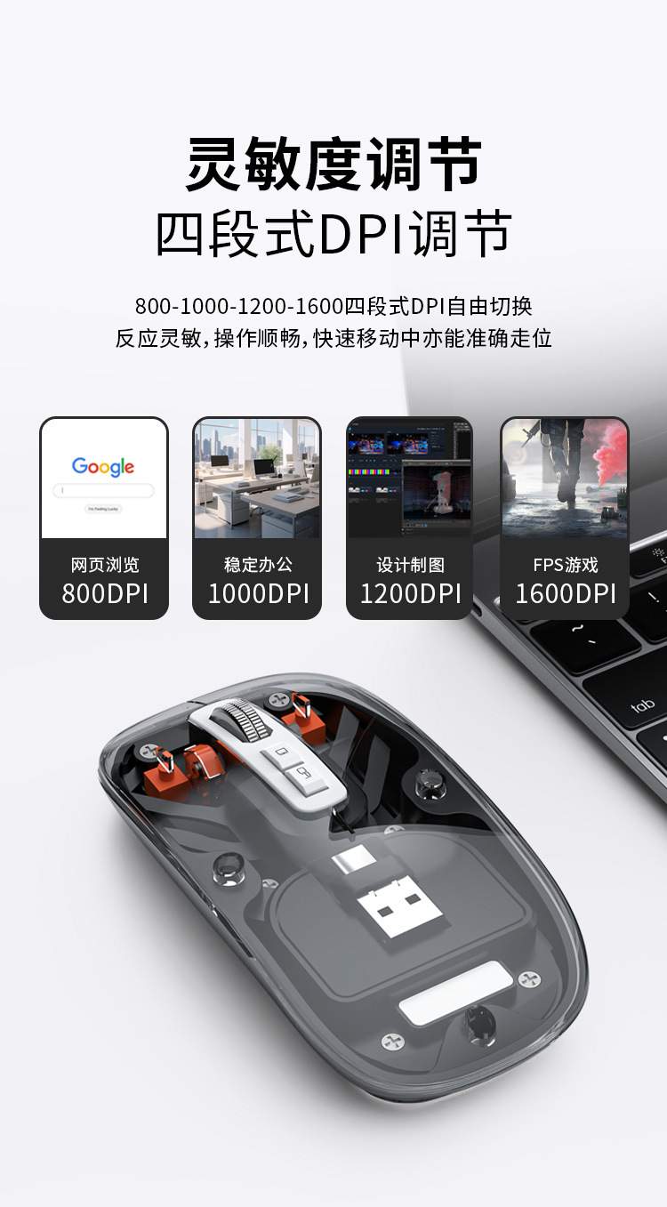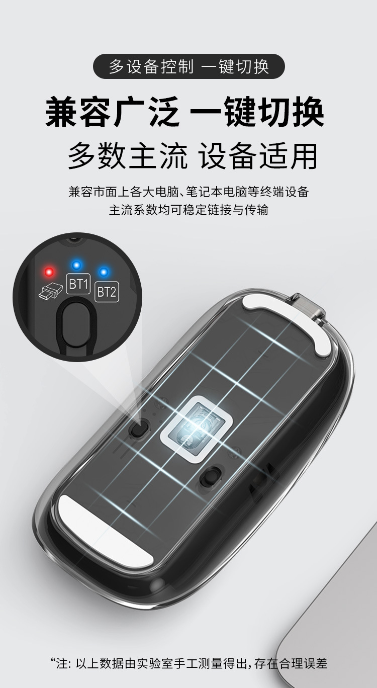 공장 직배송 선물용 맞춤형 투명 자석식 무선 블루투스 마우스 충전식 데스크탑 태블릿 겸용 투명 디자인