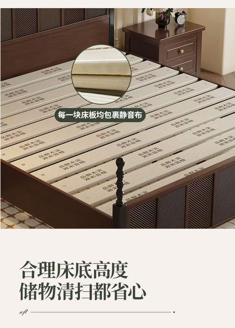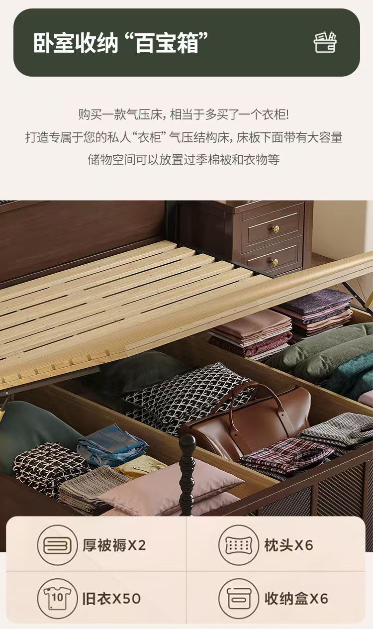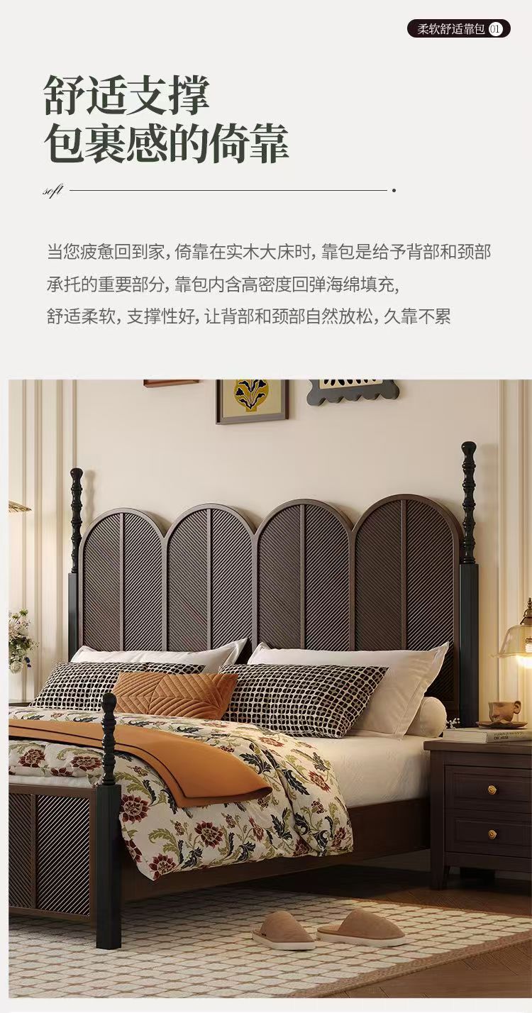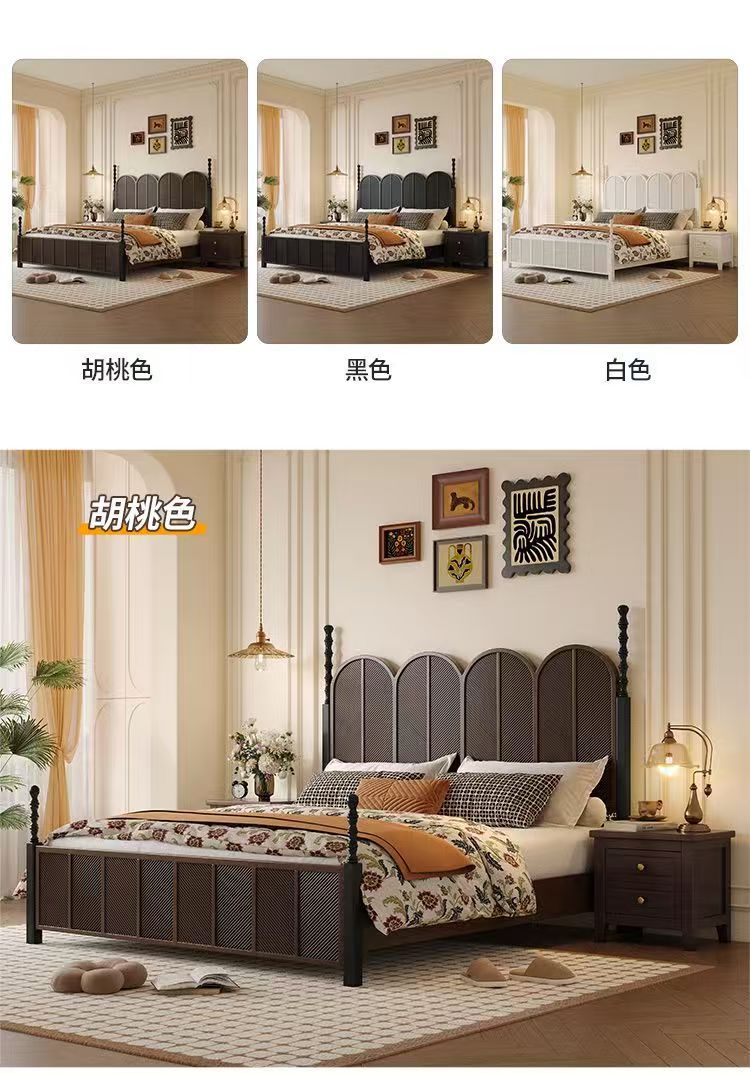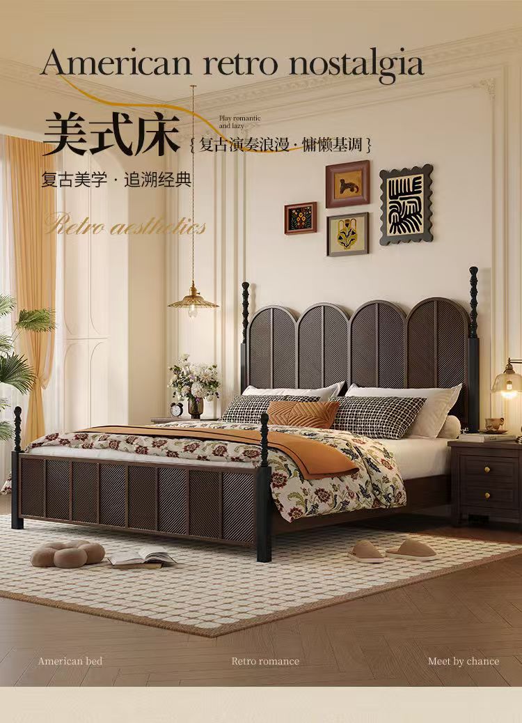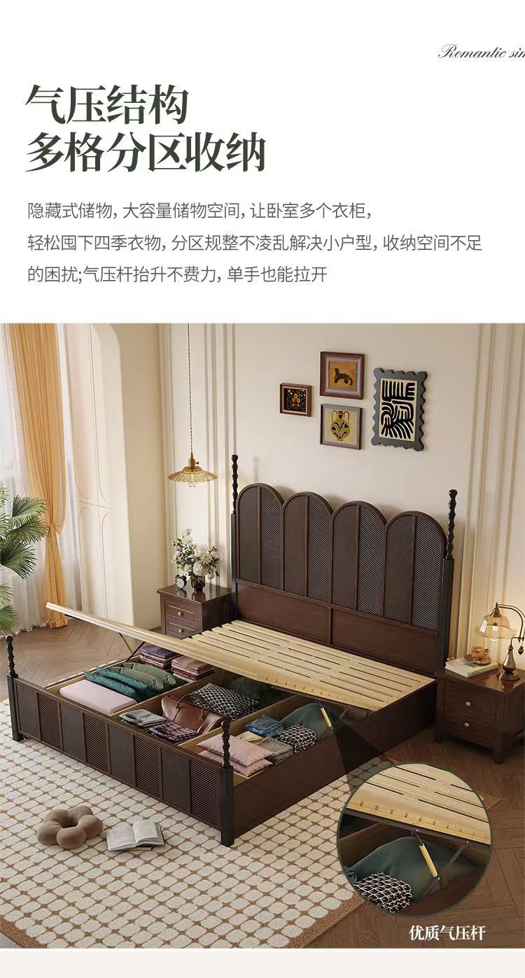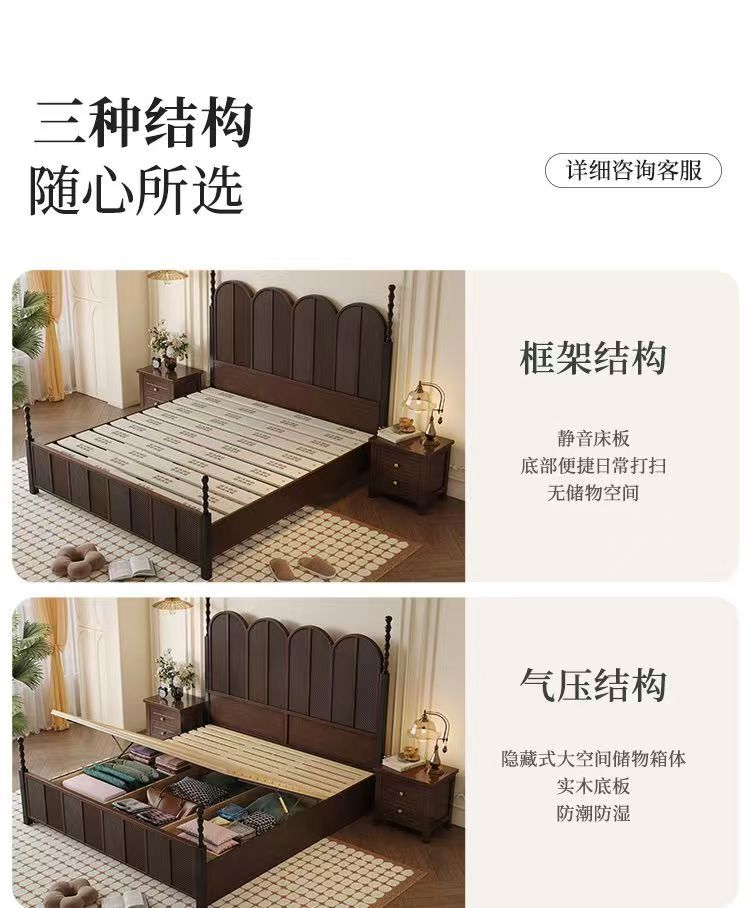 미국 복고풍 나무 침대 마스터 침실 더블 침대 골동품 스타일 1.5 현대 1.8 간단한 프랑스 로마 기둥 수납 웨딩 침대스토어 가기