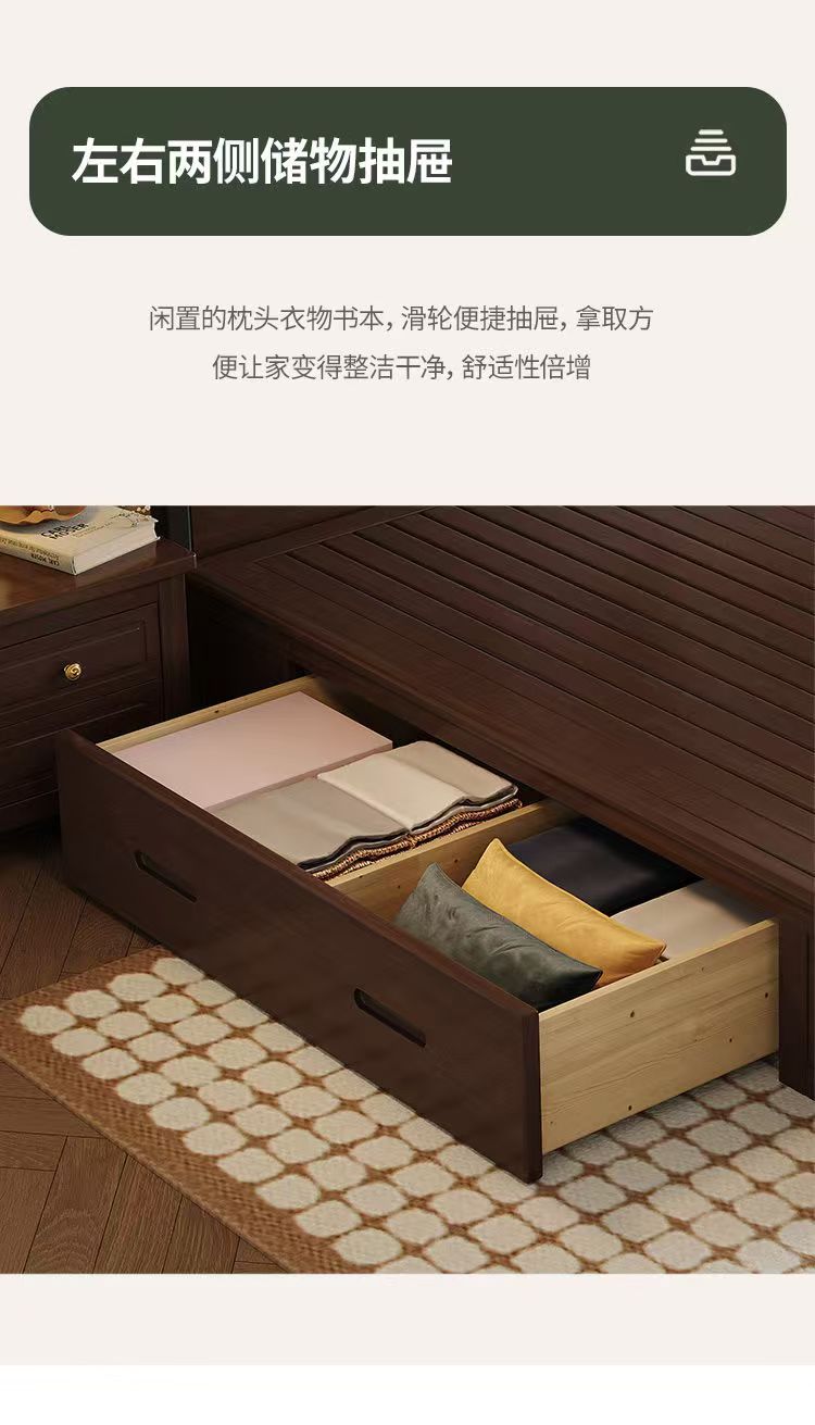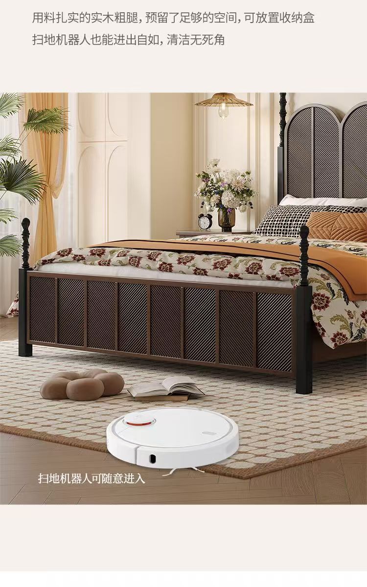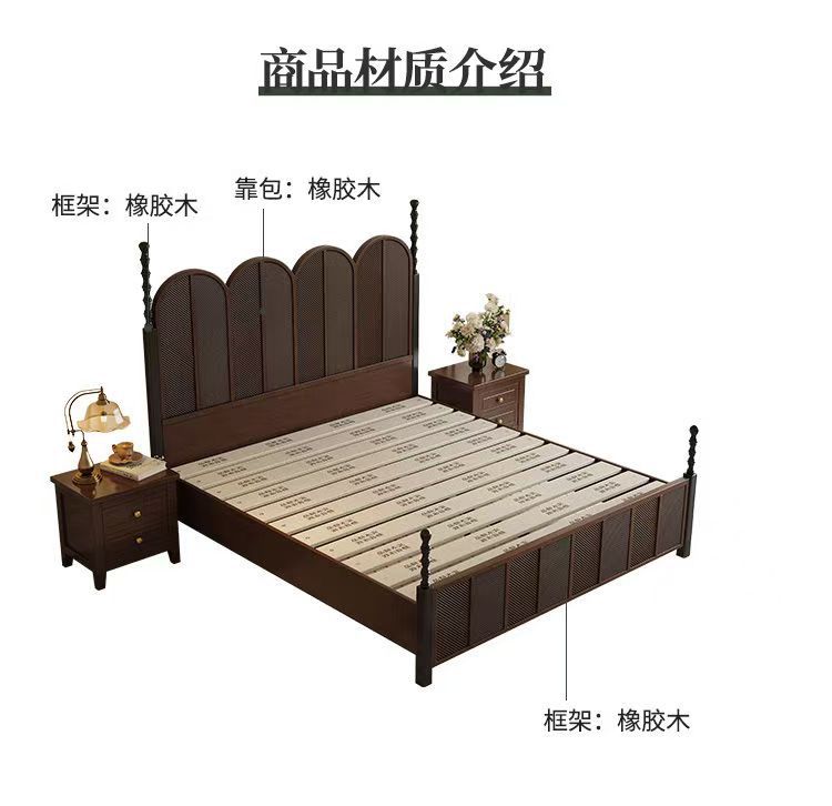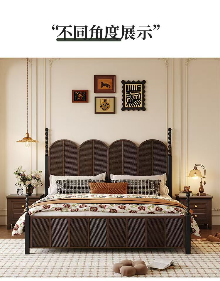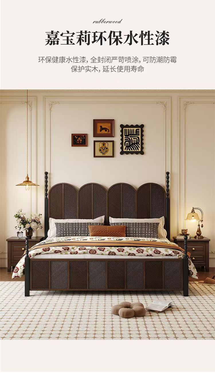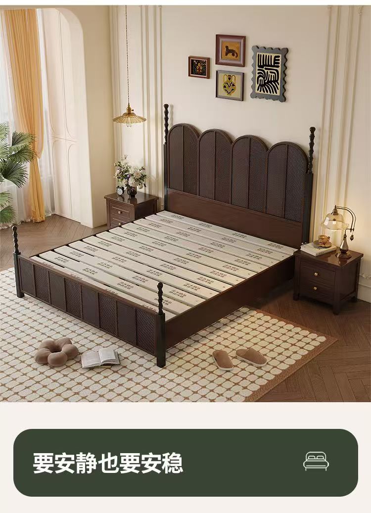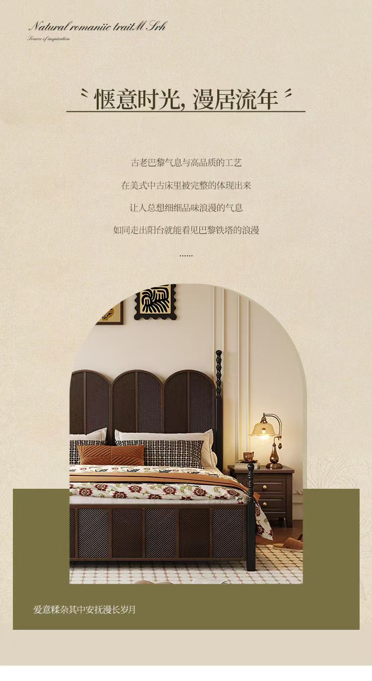 미국 복고풍 나무 침대 마스터 침실 더블 침대 골동품 스타일 1.5 현대 1.8 간단한 프랑스 로마 기둥 수납 웨딩 침대스토어 가기