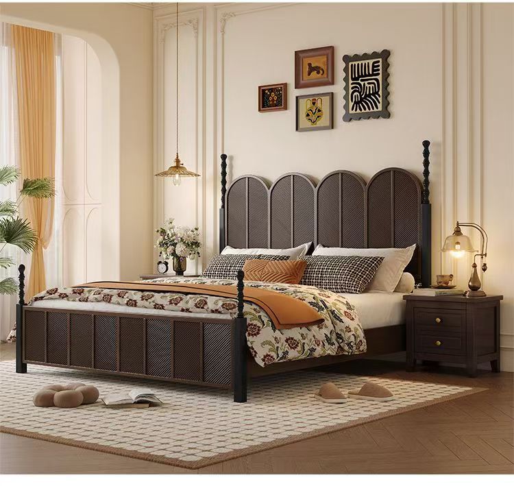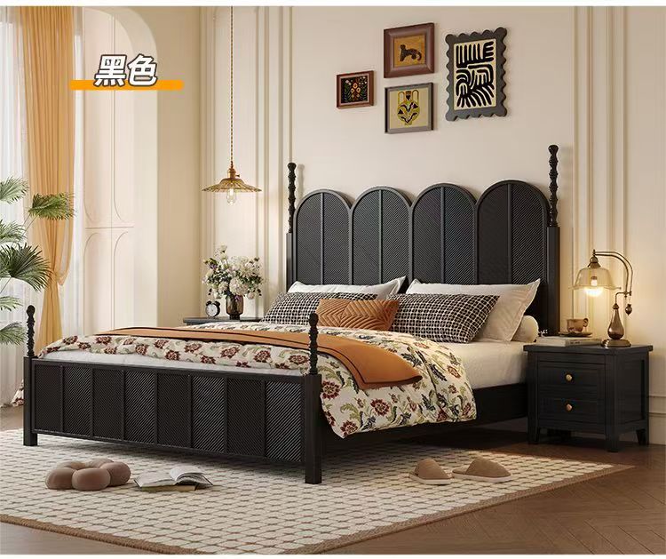 미국 복고풍 나무 침대 마스터 침실 더블 침대 골동품 스타일 1.5 현대 1.8 간단한 프랑스 로마 기둥 수납 웨딩 침대