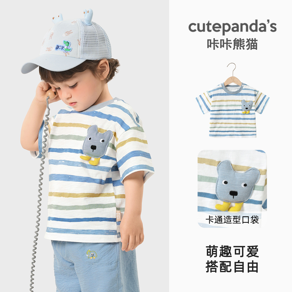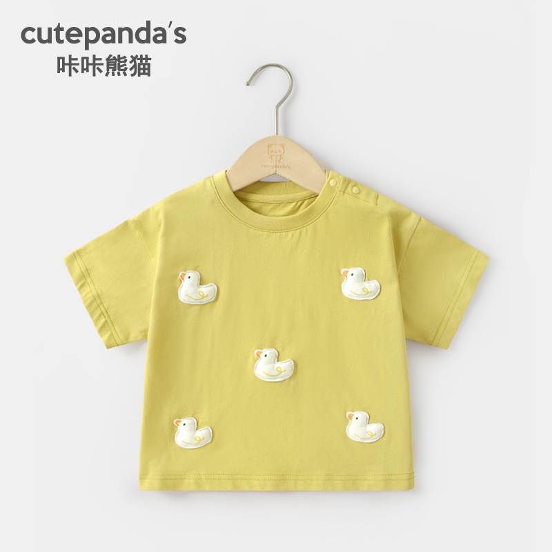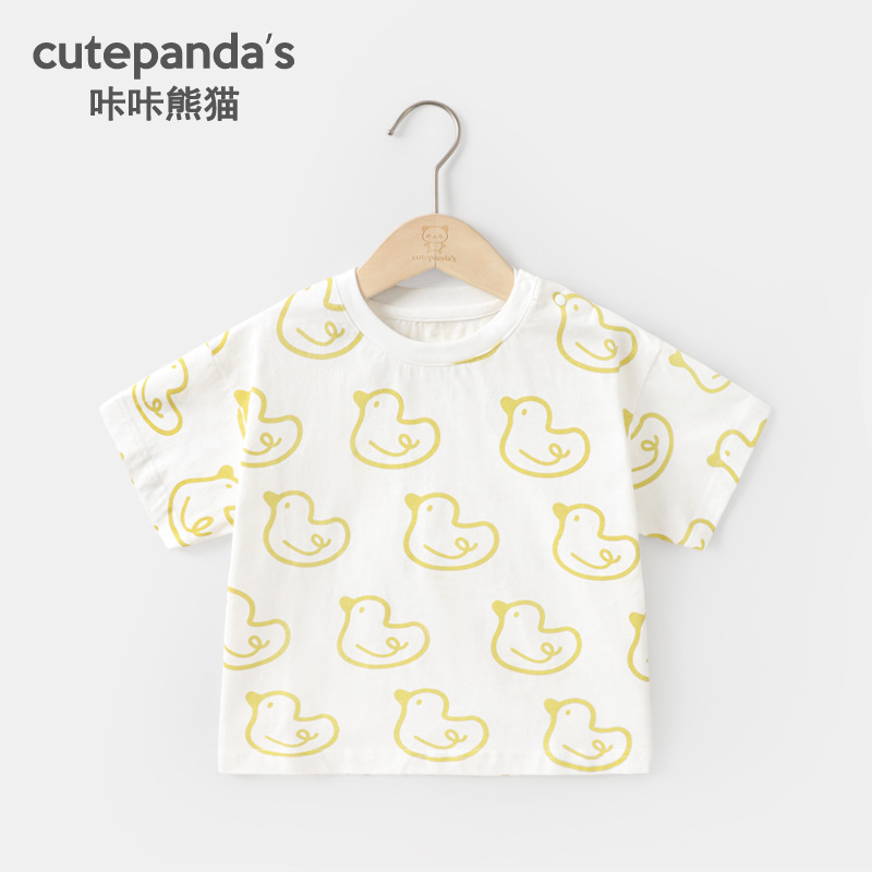 Kaka Panda 소년 반팔 티셔츠 소녀 여름 옷 어린이 여름 캐주얼 반팔 베이비 탑 아기 아동복스토어 가기