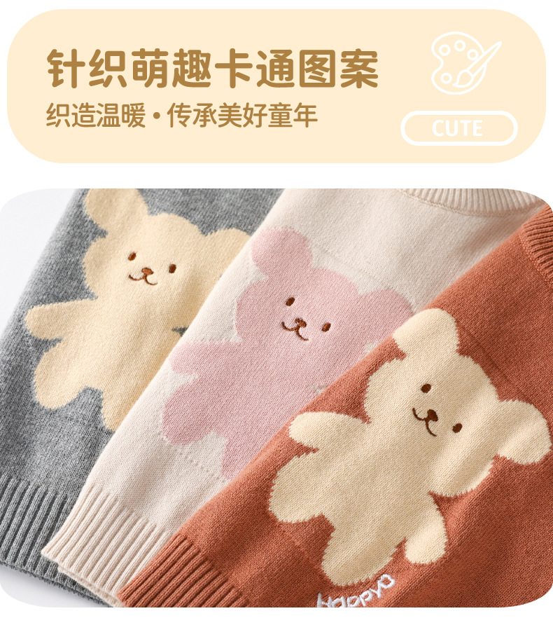어린이 소년 솔리드 컬러 풀오버 스웨터 세트 아동 의류 가을, 겨울 새로운 만화 라운드 넥 아동 스웨터 제조 업체 도매스토어 가기