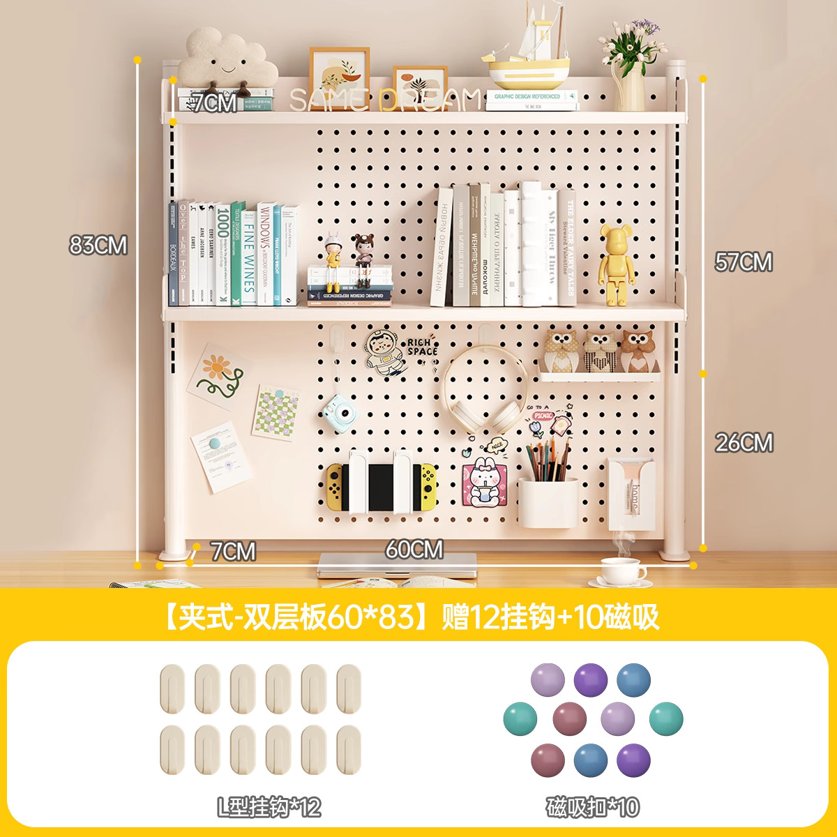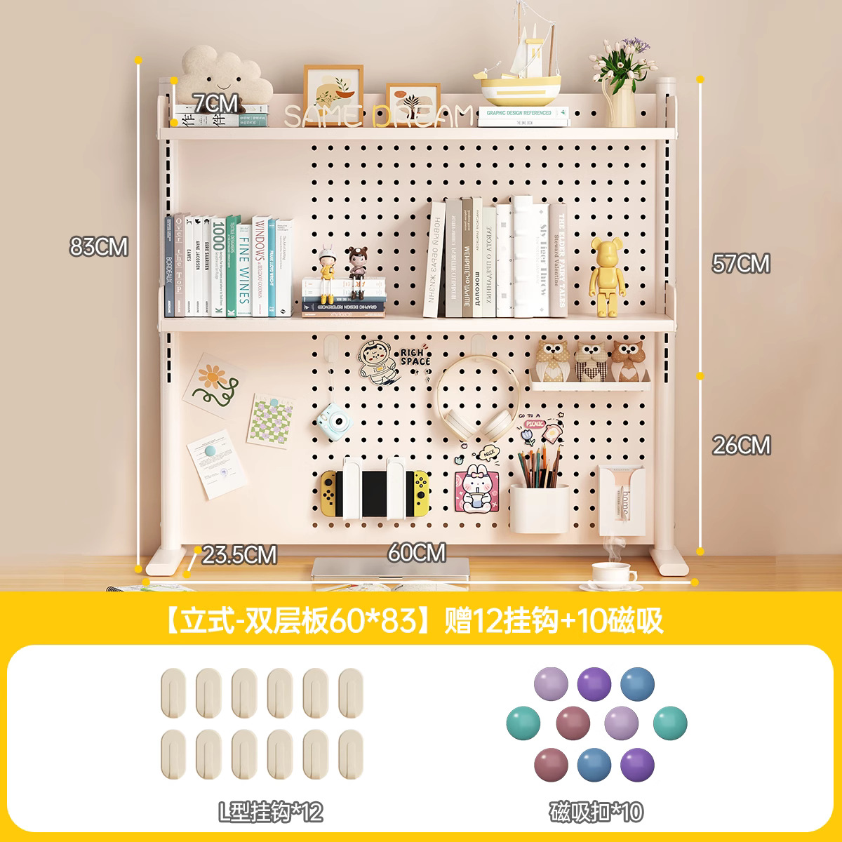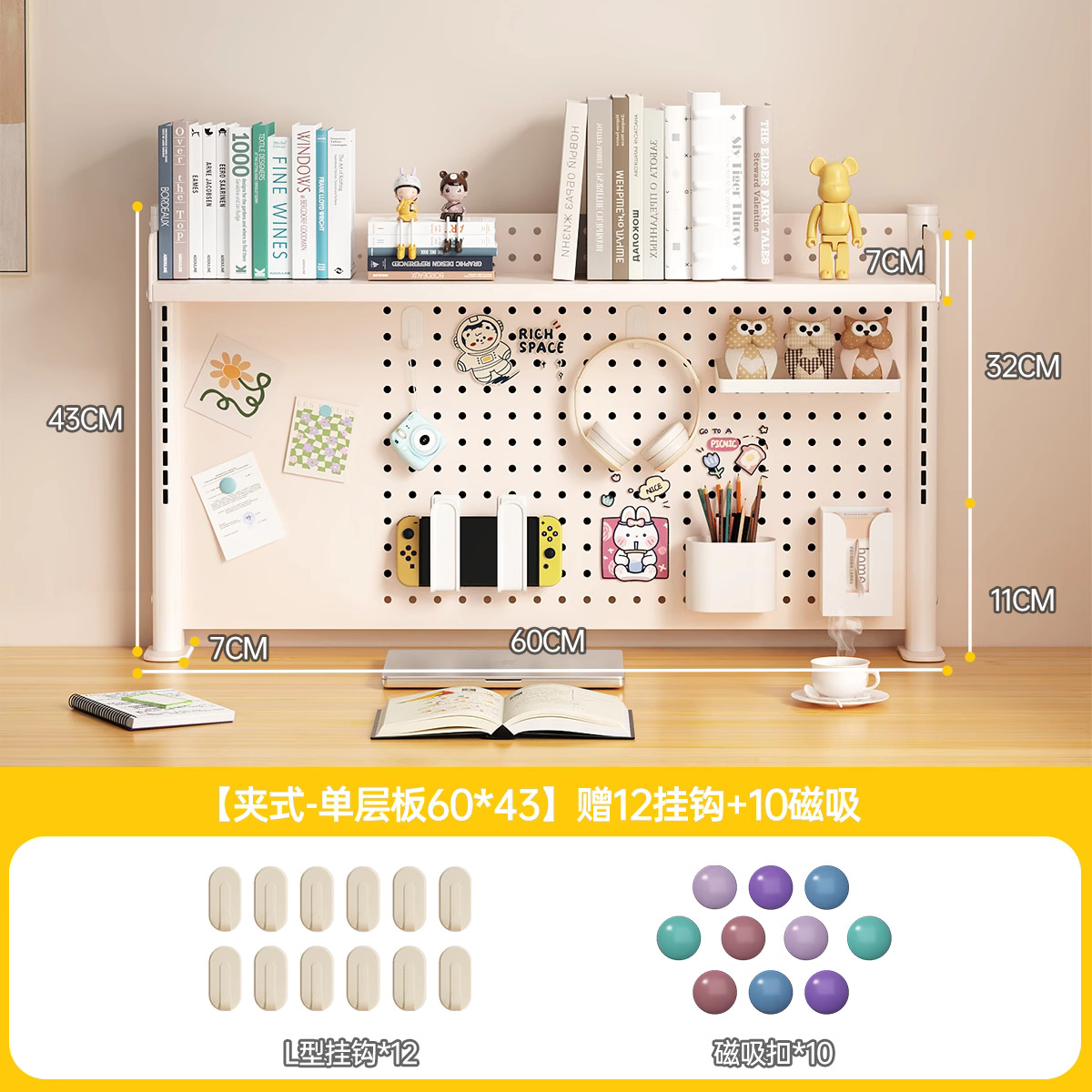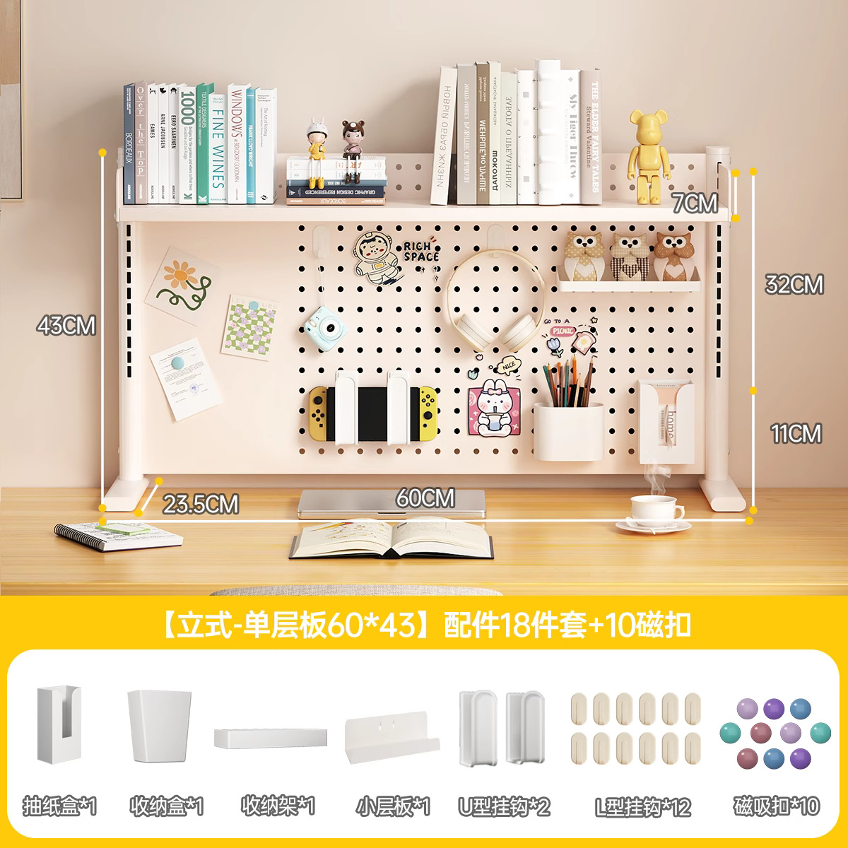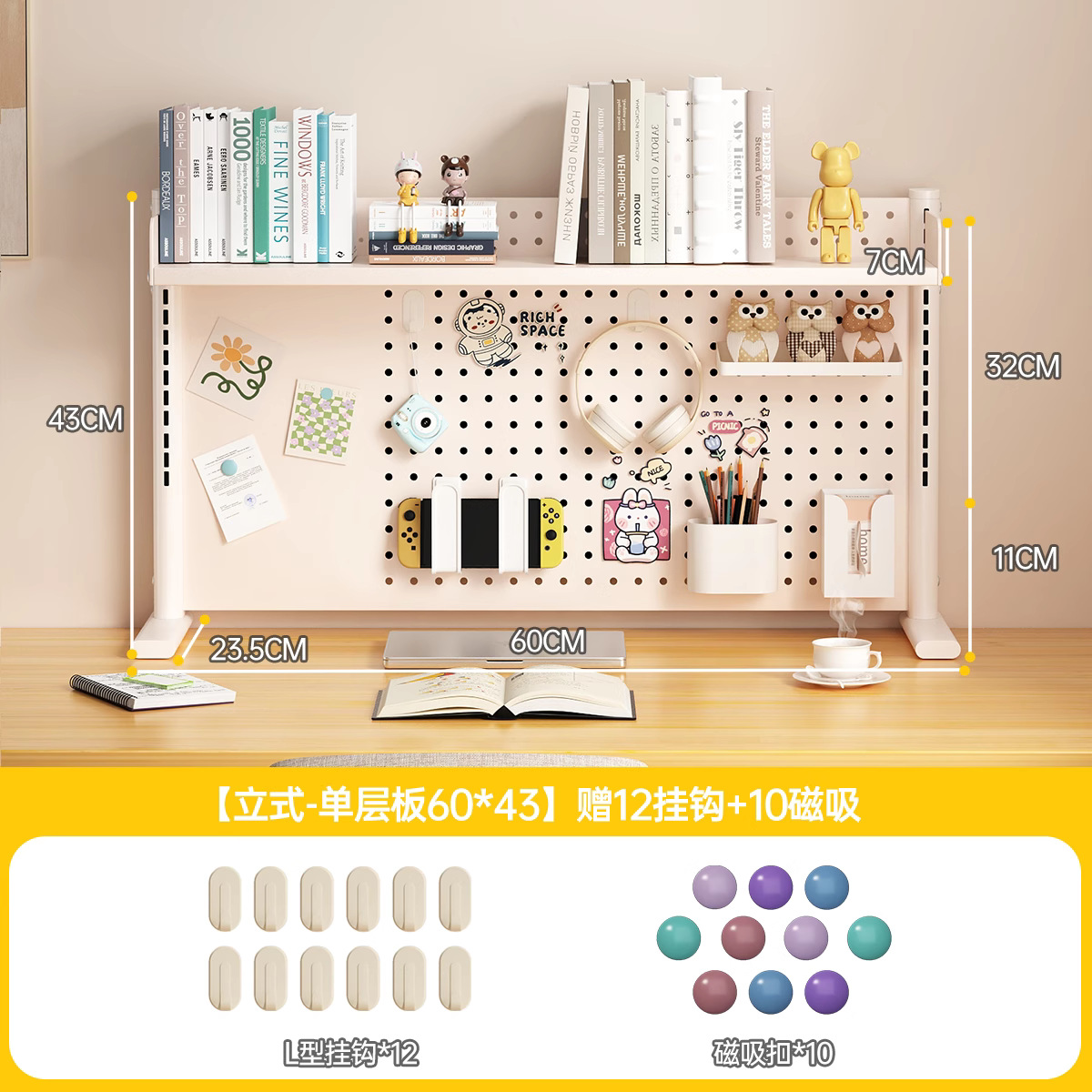 데스크탑 홀 보드 수납 선반, 학습 테이블 책장, 조절 가능한 보드 테이블, 책상 수납 테이블, 수납 선반, 데스크탑스토어 가기