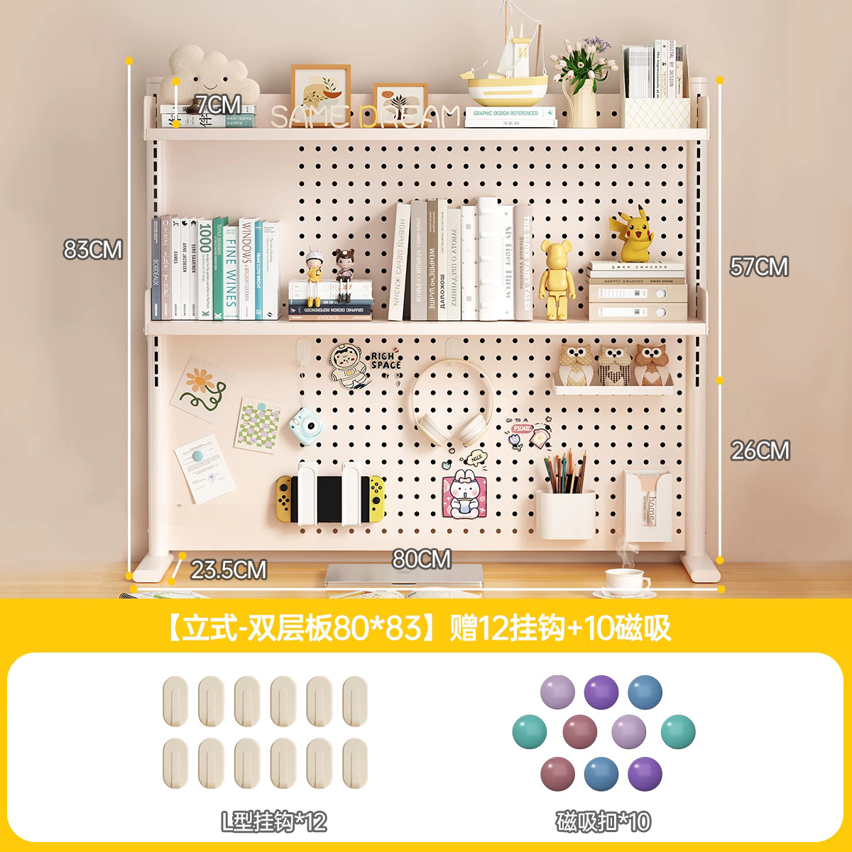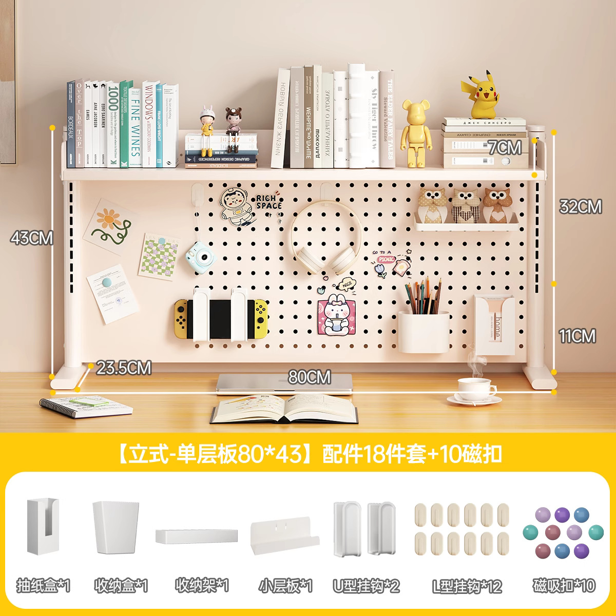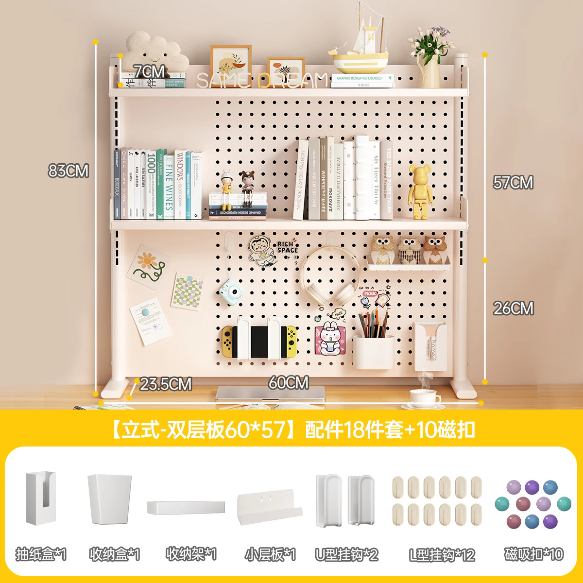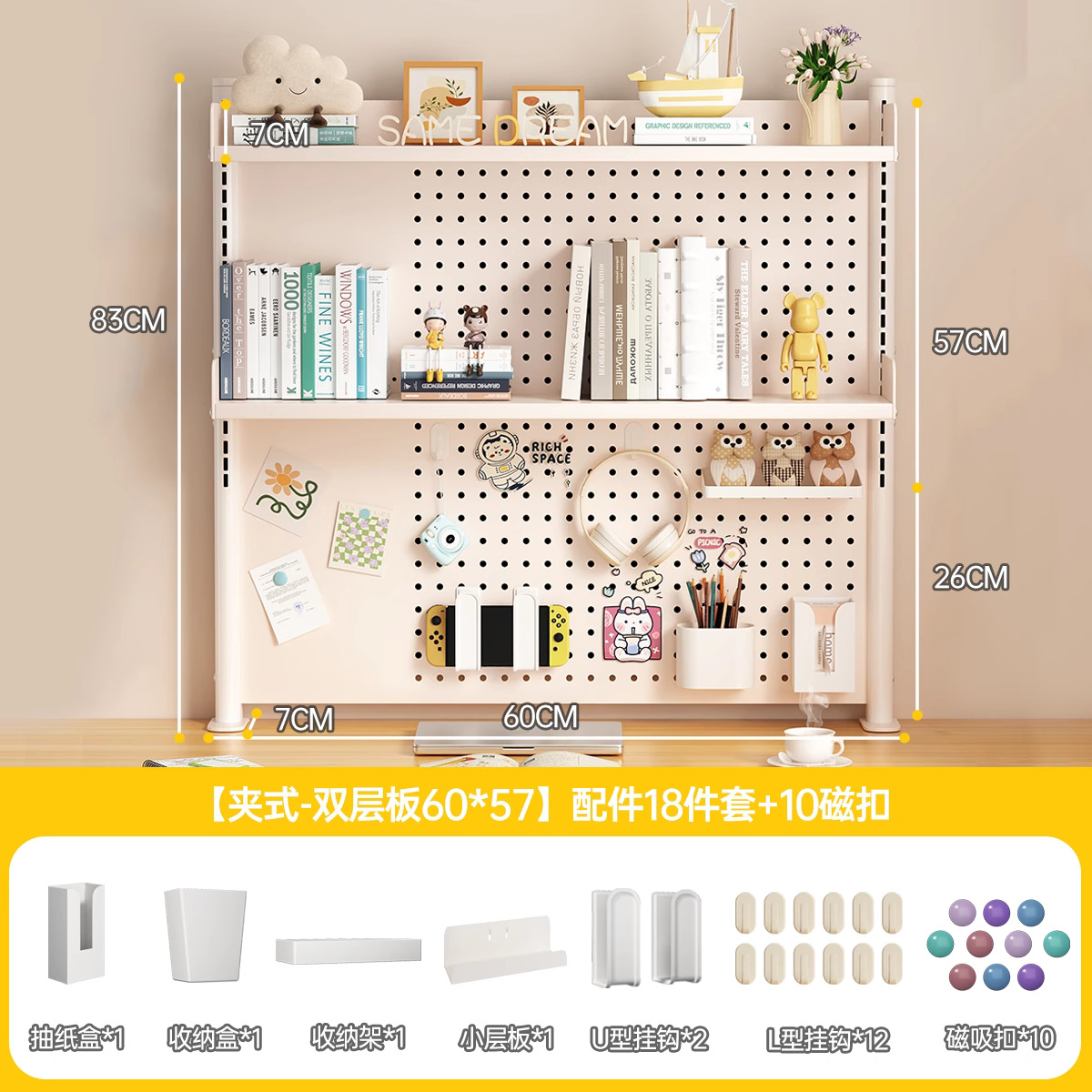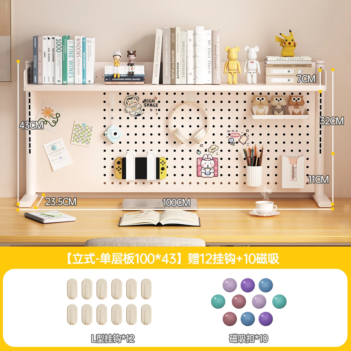 데스크탑 홀 보드 수납 선반, 학습 테이블 책장, 조절 가능한 보드 테이블, 책상 수납 테이블, 수납 선반, 데스크탑스토어 가기