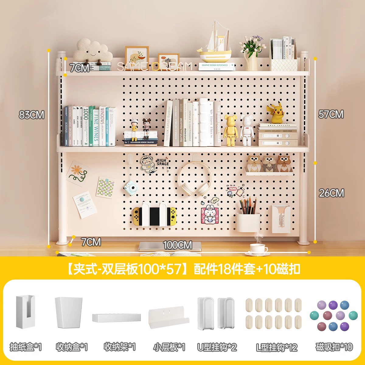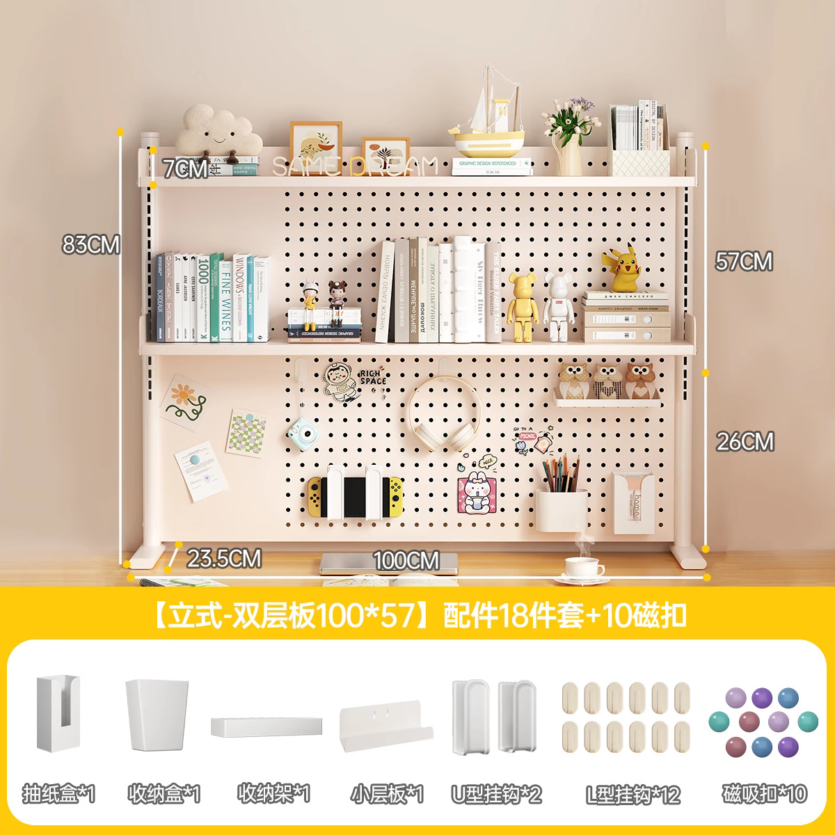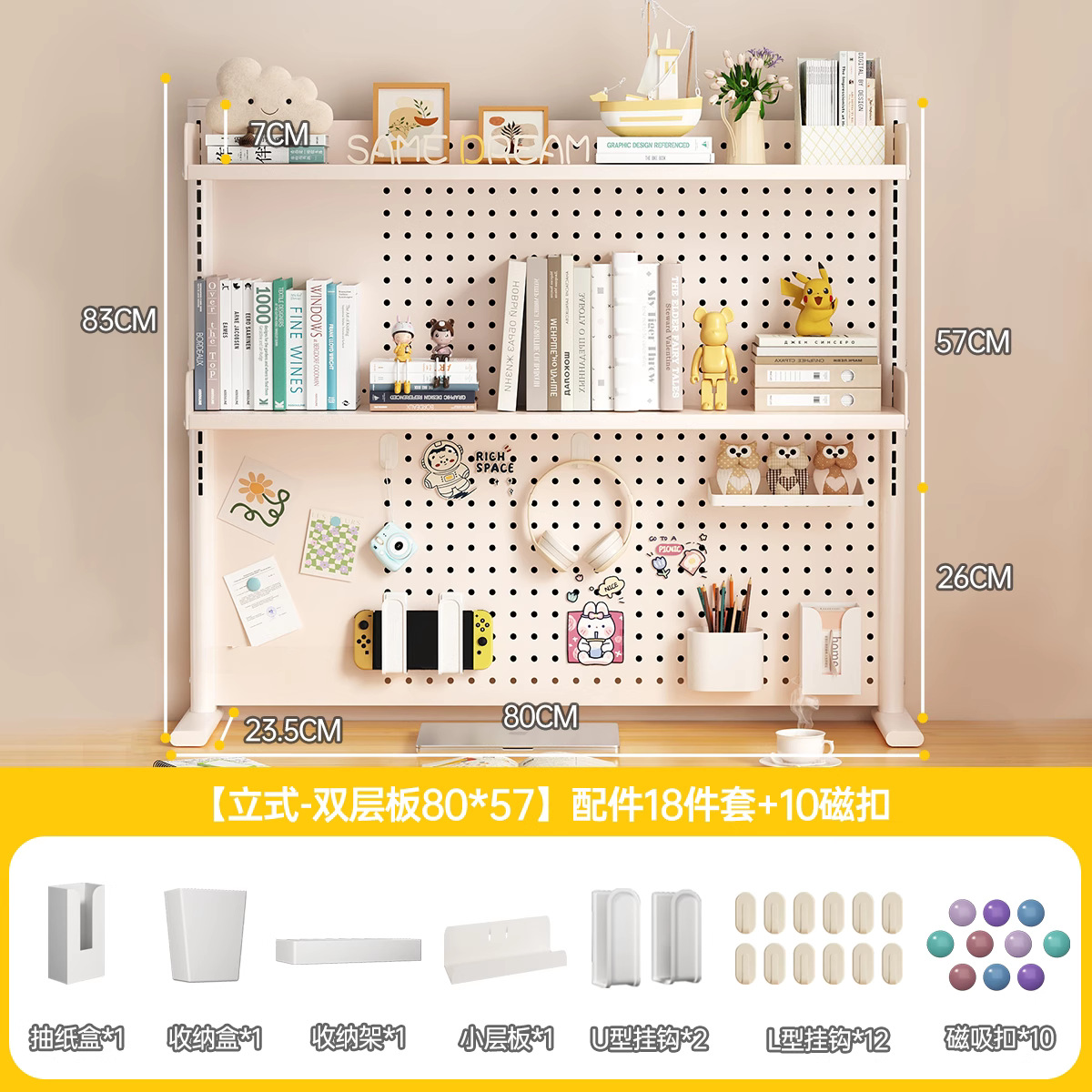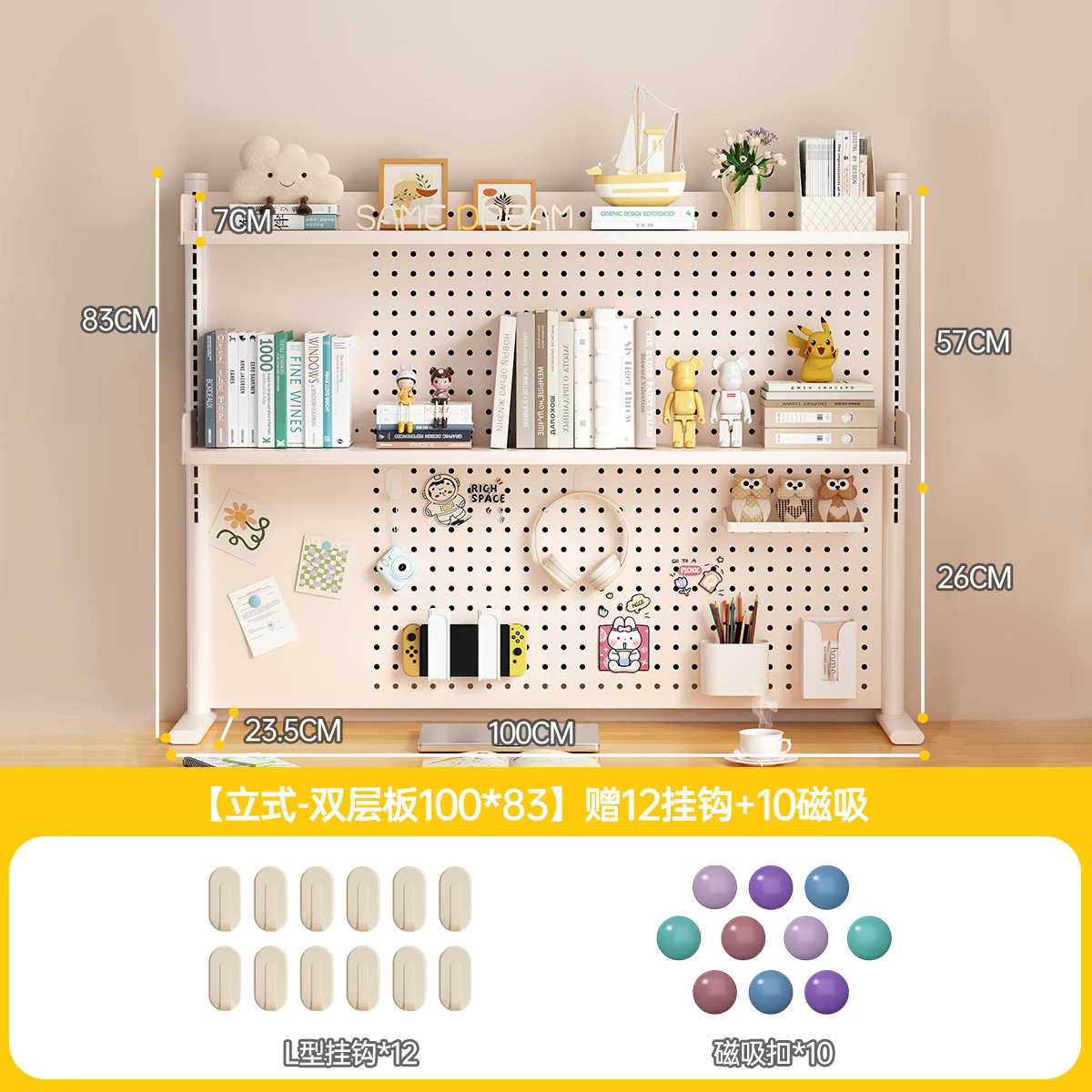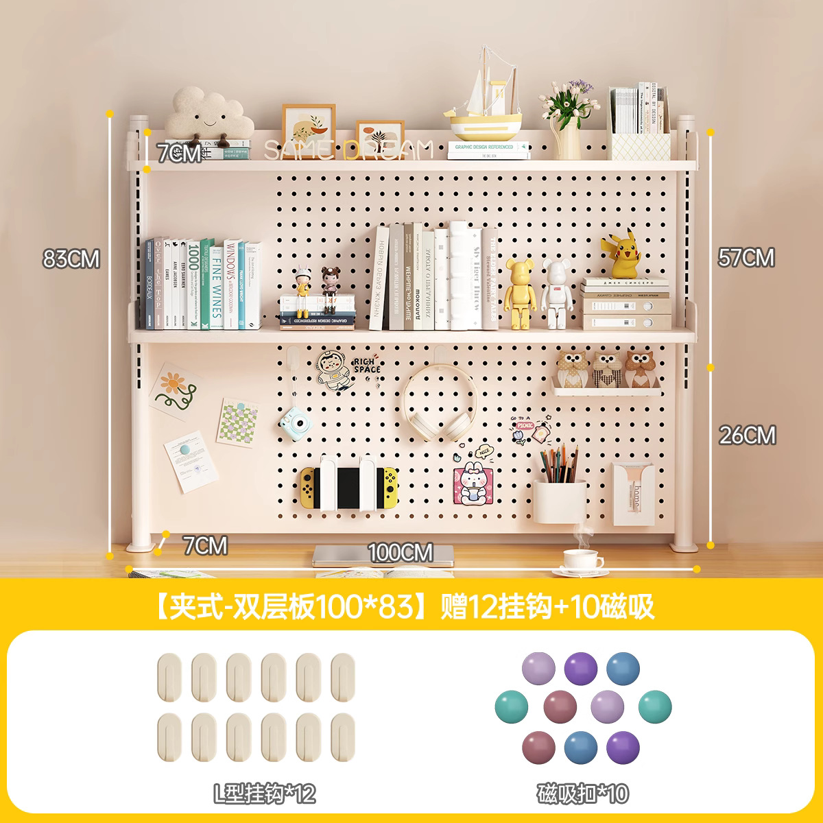 데스크탑 홀 보드 수납 선반, 학습 테이블 책장, 조절 가능한 보드 테이블, 책상 수납 테이블, 수납 선반, 데스크탑스토어 가기