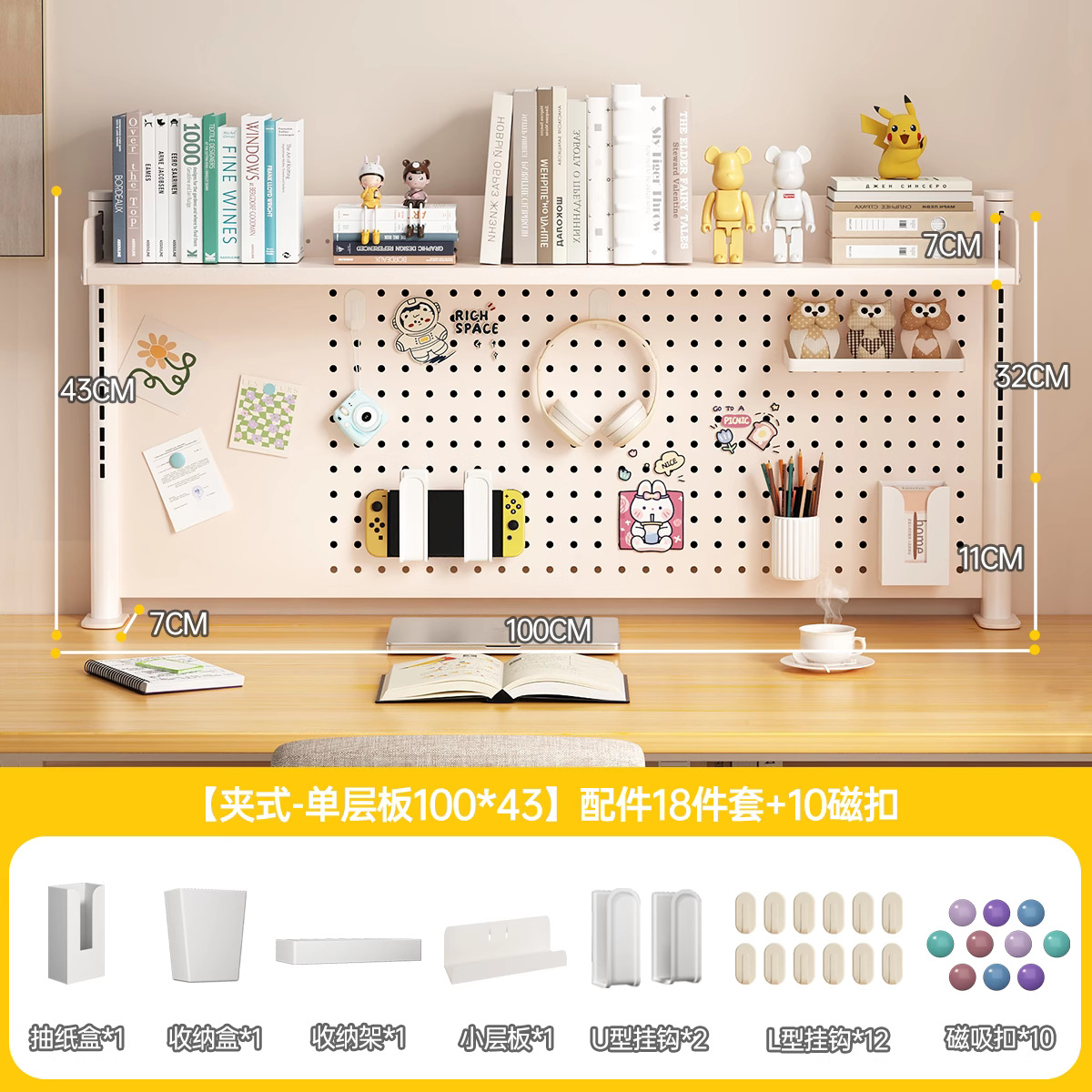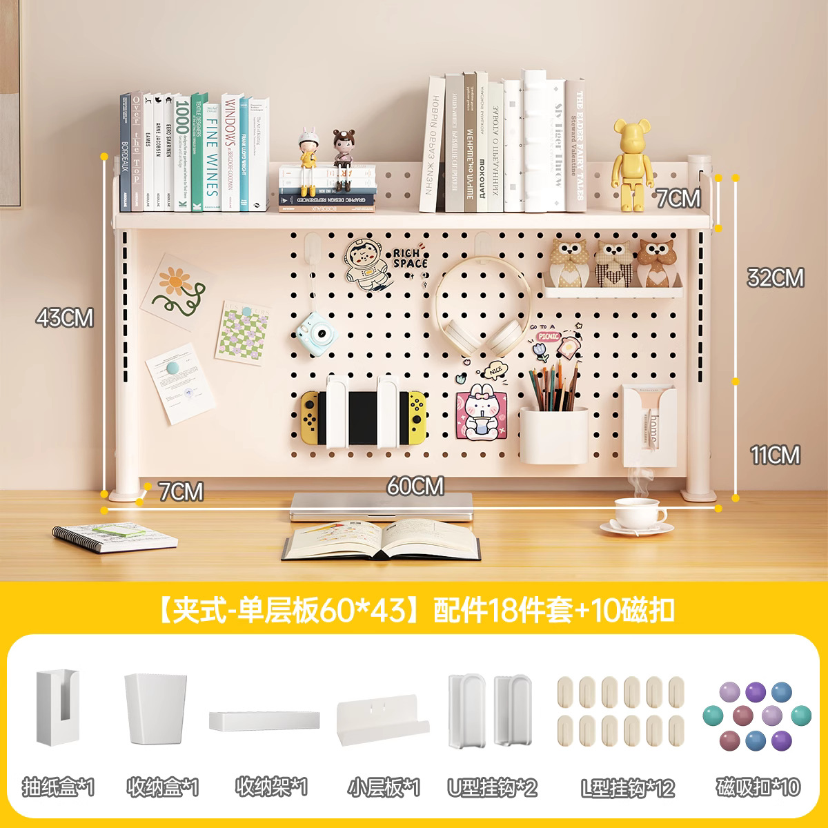 데스크탑 홀 보드 수납 선반, 학습 테이블 책장, 조절 가능한 보드 테이블, 책상 수납 테이블, 수납 선반, 데스크탑