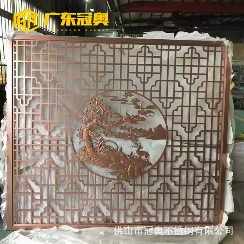 산가옥 클럽하우스용 구리판 속이 빈 조각 장식 현관 빌라 정원 입구 스크린, 구리 화관문, 순수 구리 배경벽스토어 가기