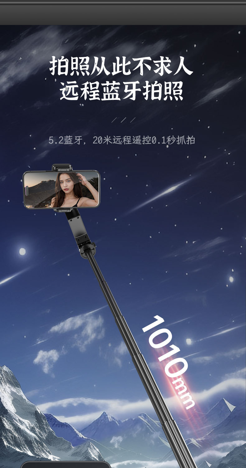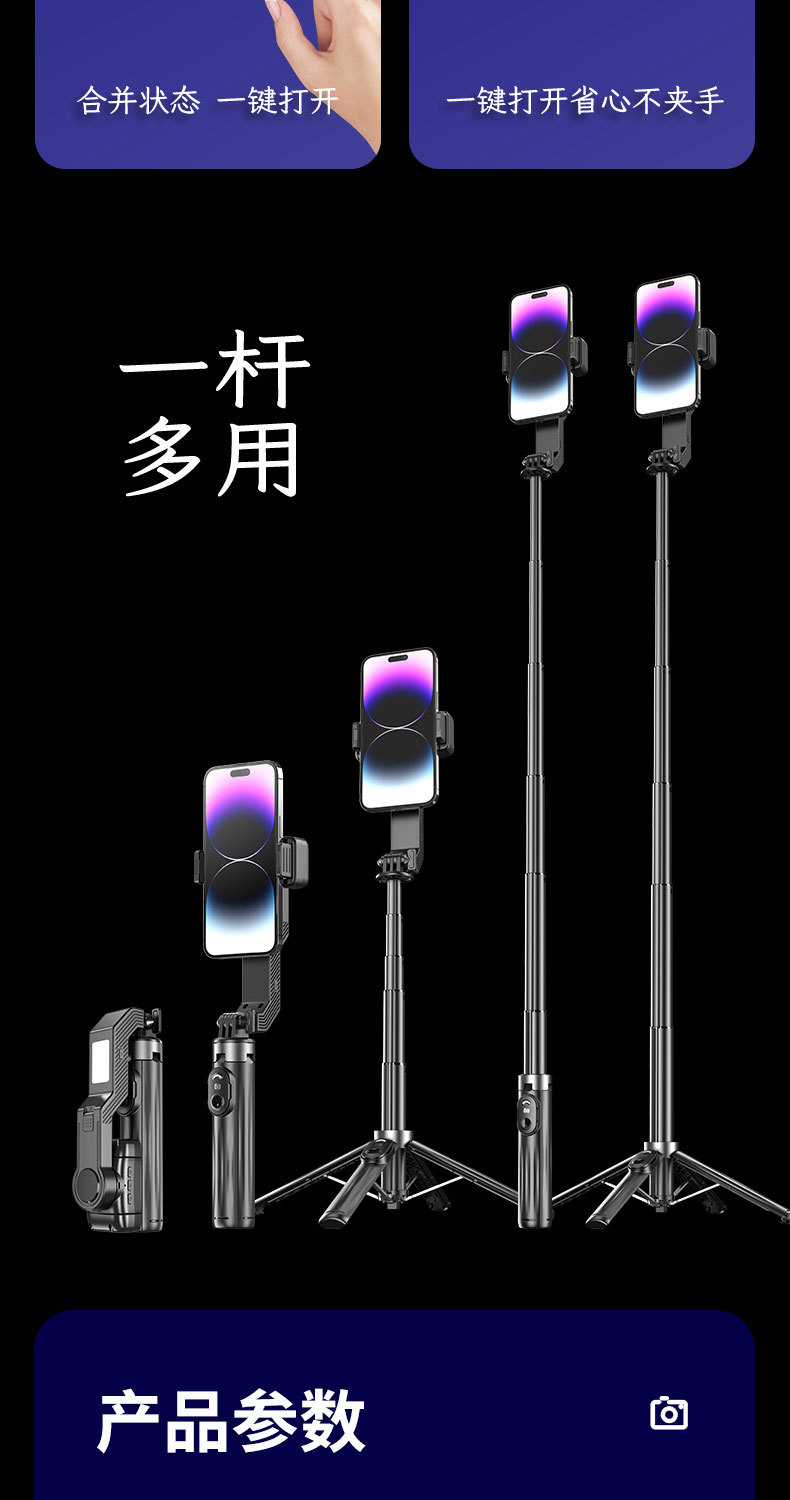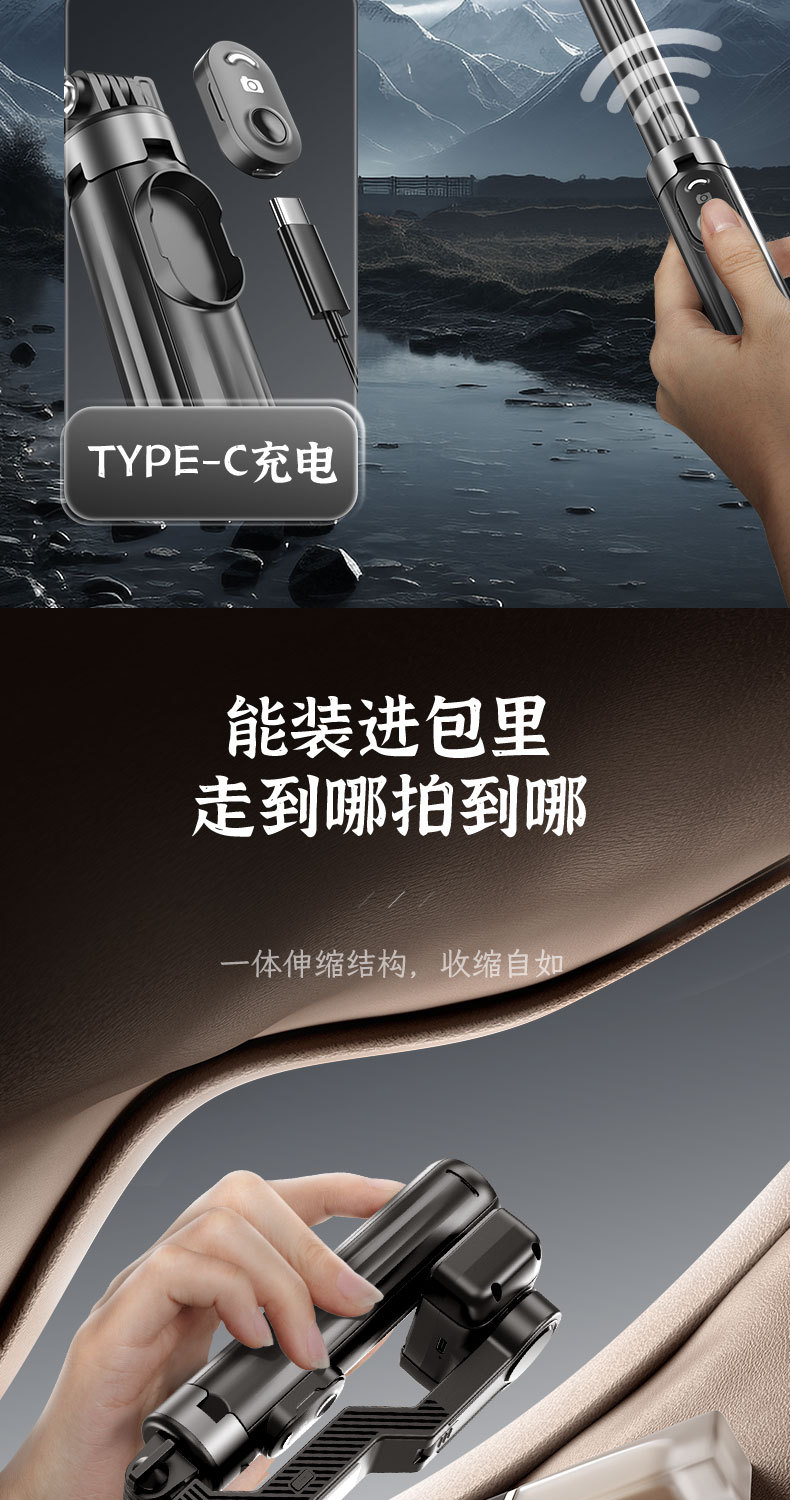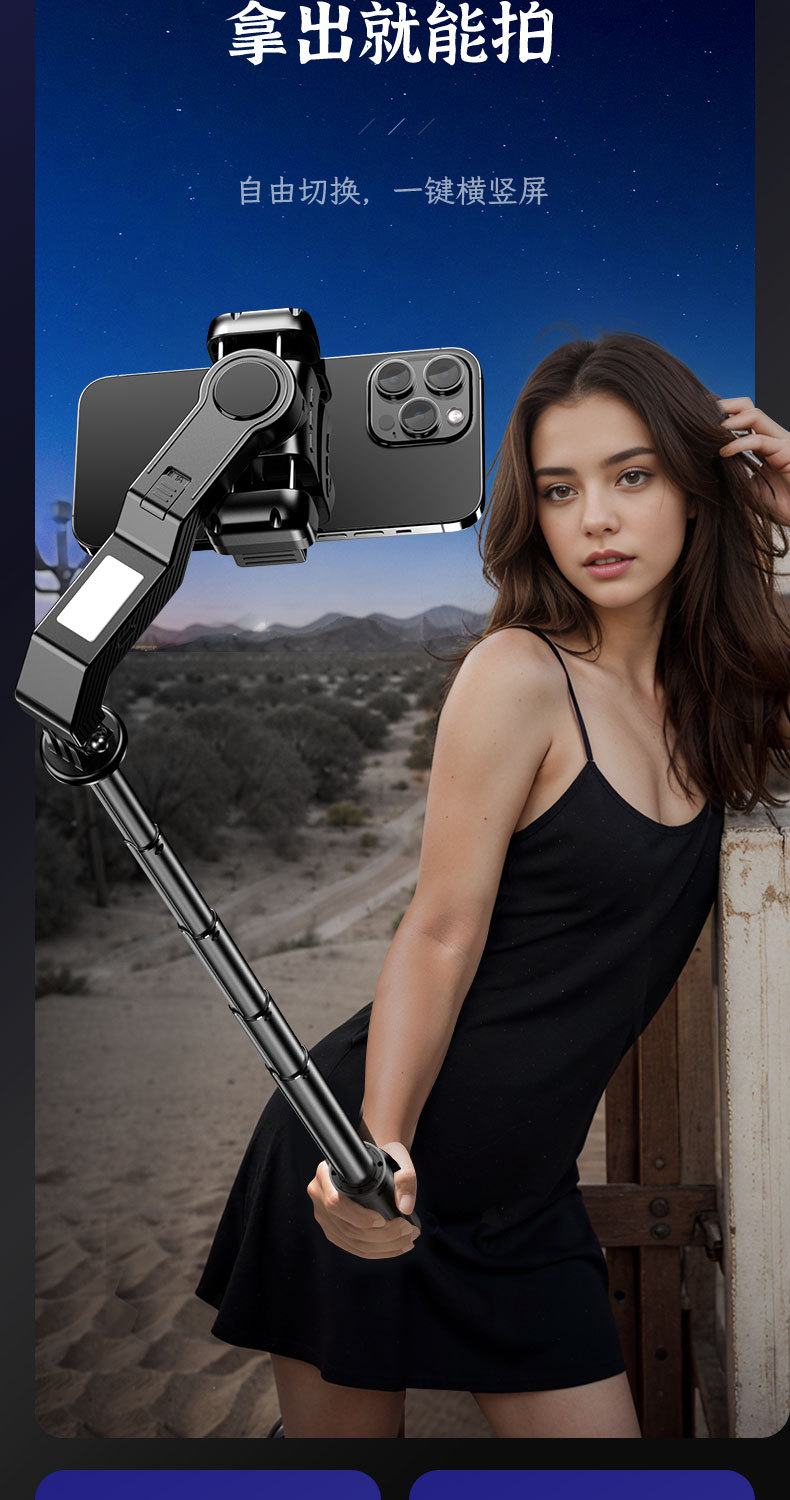 新款带补光防抖单轴迷你稳拍器蓝牙自拍杆 手持稳定器 Q31