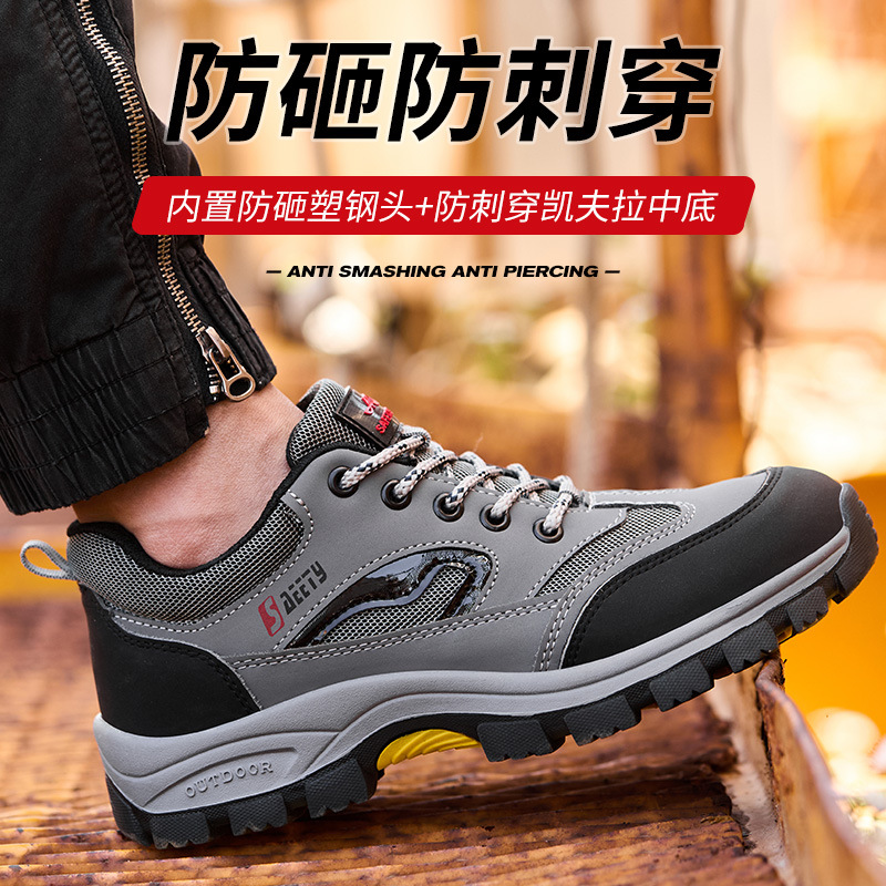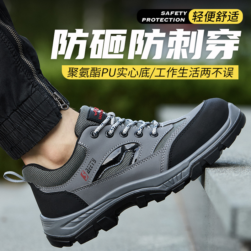 남성용 노동 보호 신발, 플라스틱 강철 발가락, 여름 통기성, 충격 방지 및 펑크 방지, 가볍고 편안한 고무 밑창 건설 현장 안전 작업 신발스토어 가기