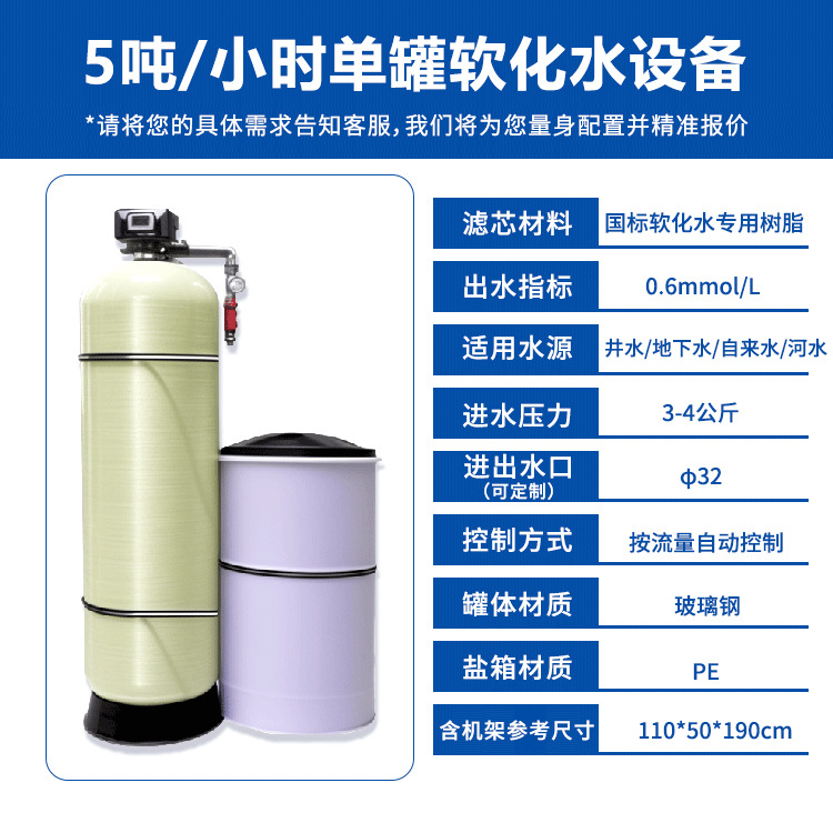 • 5톤/시간 단일 탱크 연화 및 필터 재료 완전 자동 통합