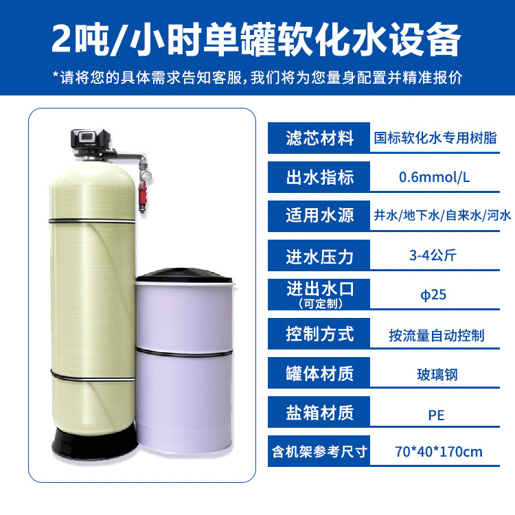 • 2톤/시간 단일 탱크 연화 및 필터 재료 완전 자동 통합