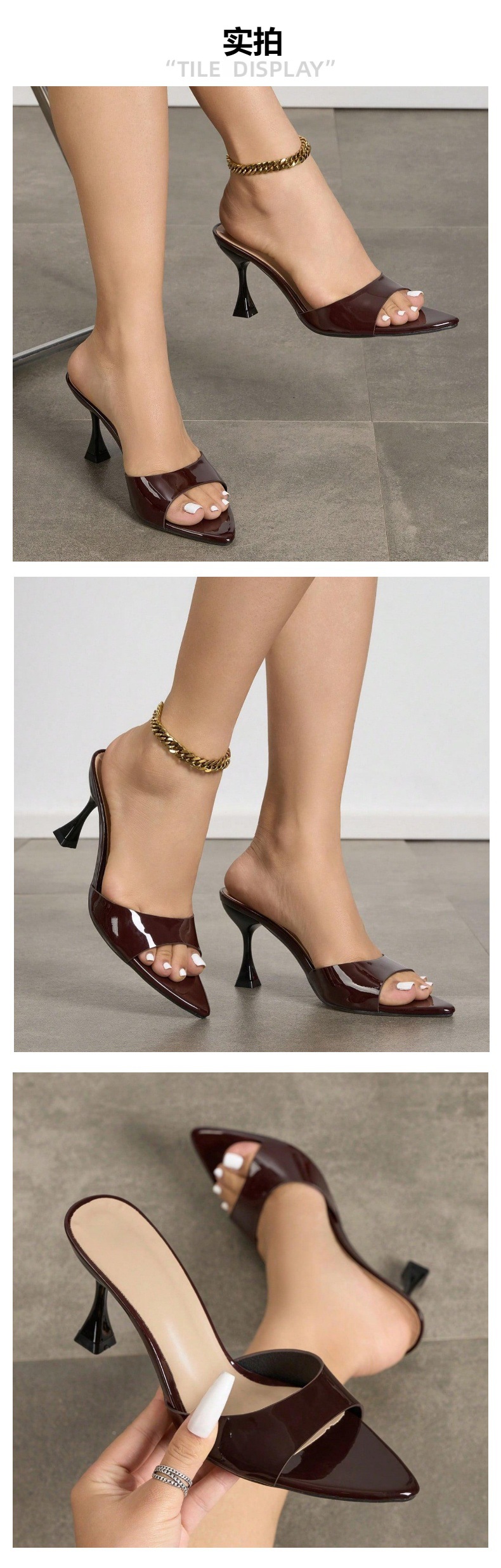 국경을 넘나드는 유럽과 미국 여성용 포인티드 토 미러 스트랩 스틸레토 샌들 여성 패션 커피 브라운 하이힐 여성용스토어 가기