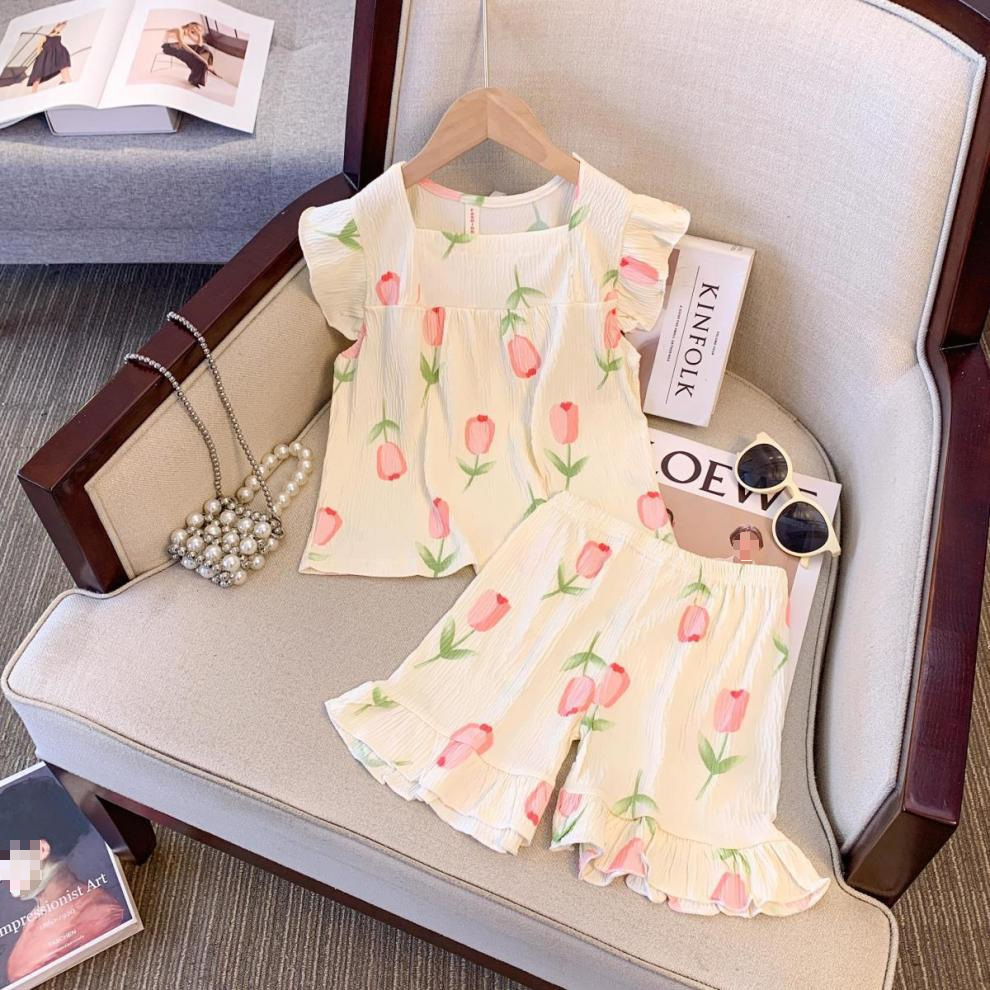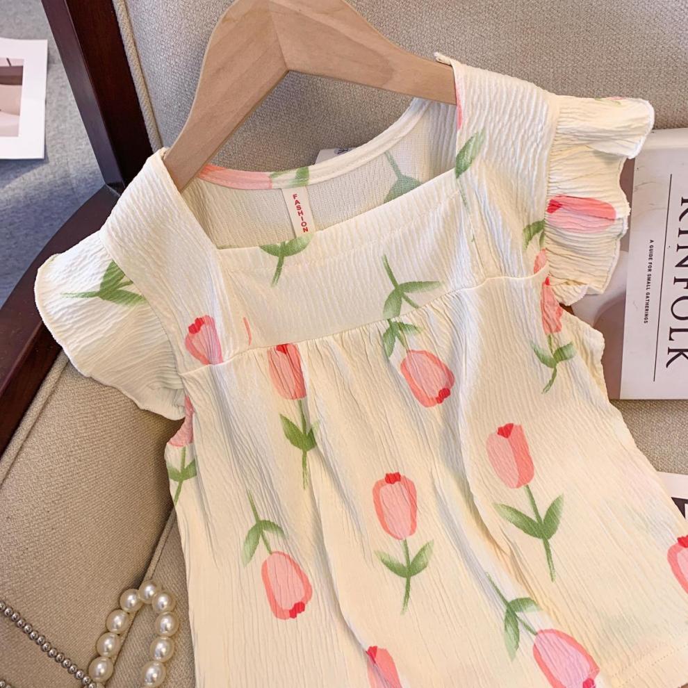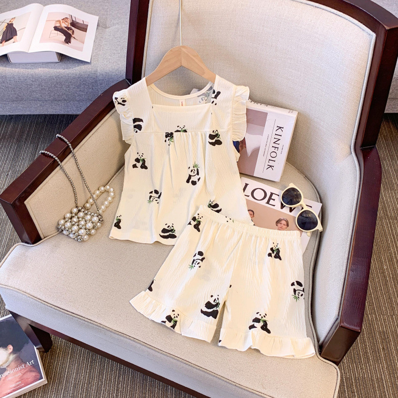 어린이 귀여운 잠옷 세트 여름 민소매 새로운 에어컨 중형 및 대형 어린이 얇은 아기 가정 의류 어린 소녀스토어 가기