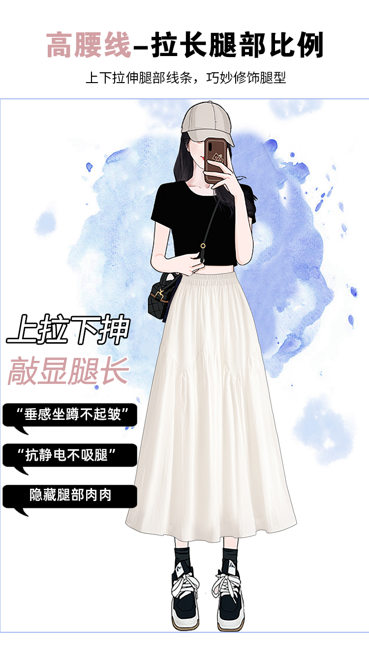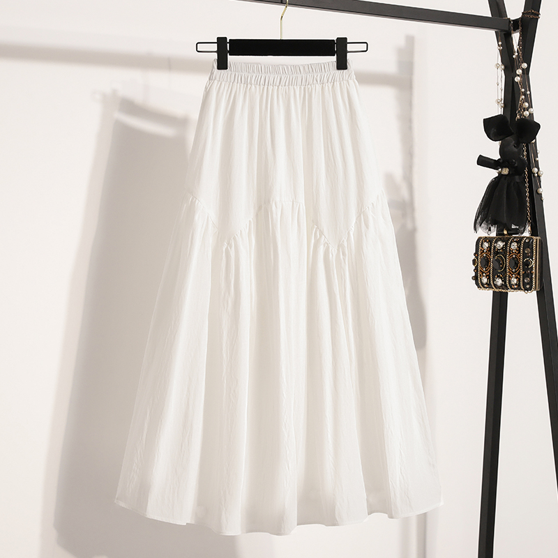 여름에 살찐 여성을 위한 플러스 사이즈 화이트 플리츠 스커트, 슬리밍, 배 커버, 하이웨이스트, A라인 스몰 스커트스토어 가기