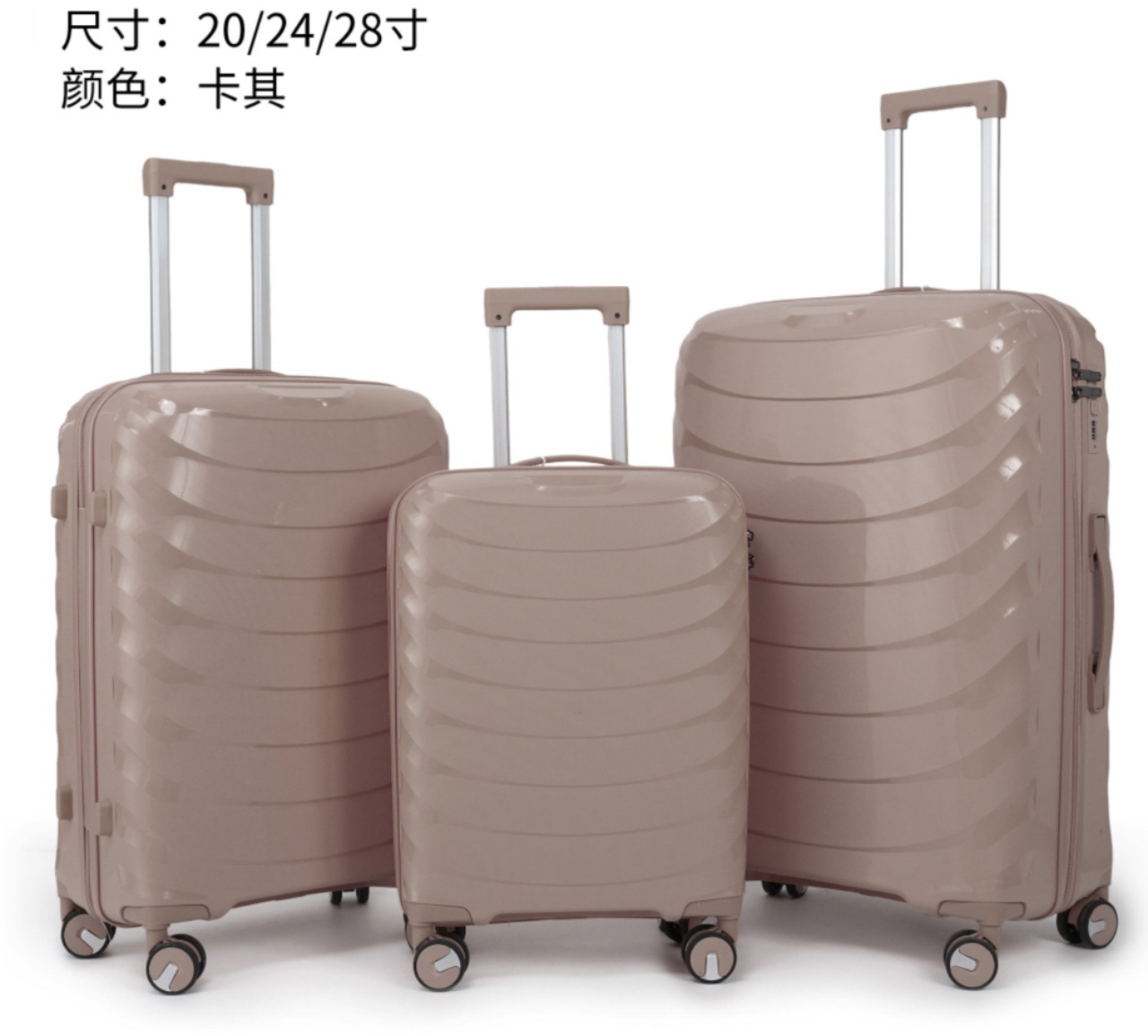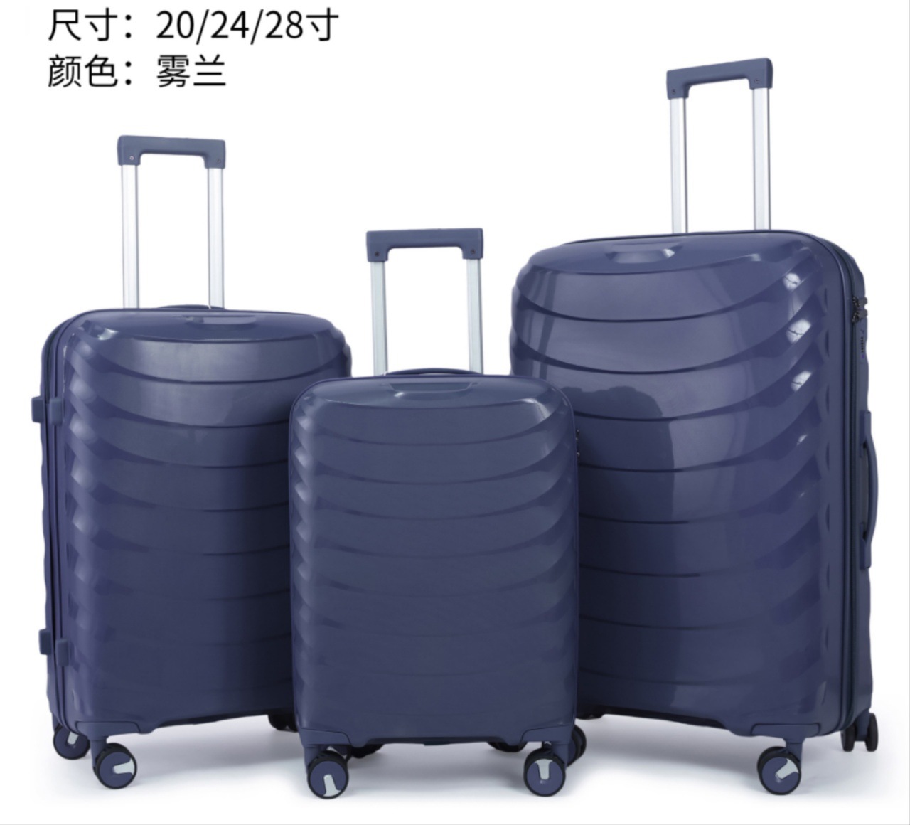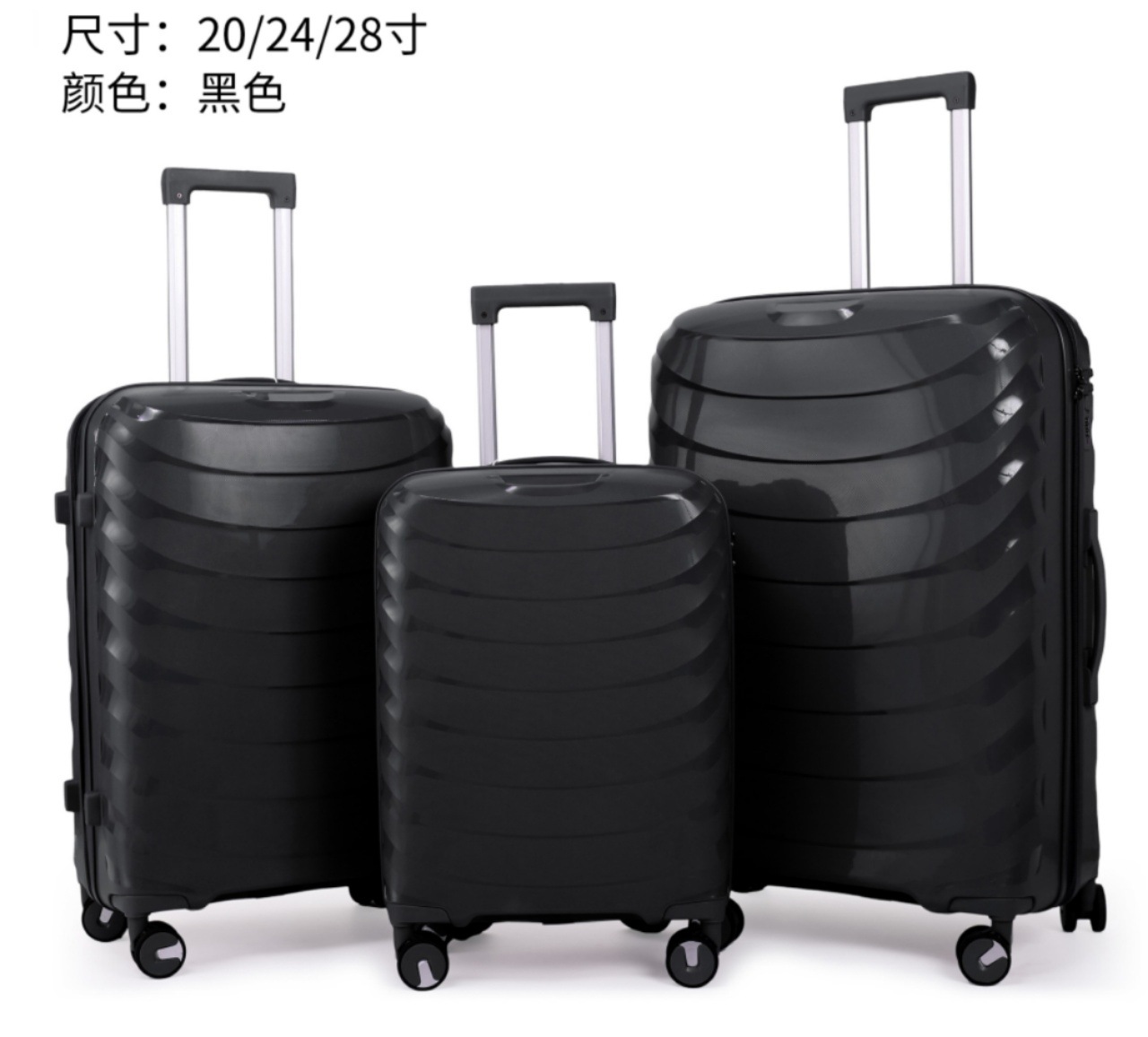 유럽과 미국의 대외 무역을 수출하는 맞춤형 PP 트롤리 케이스 3피스 세트 20inch + 24inch + 28인치 범용 휠 탑승 가방
