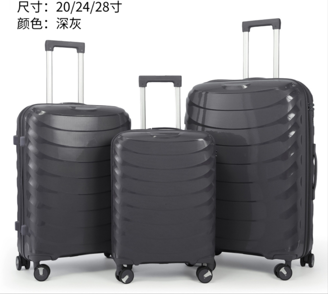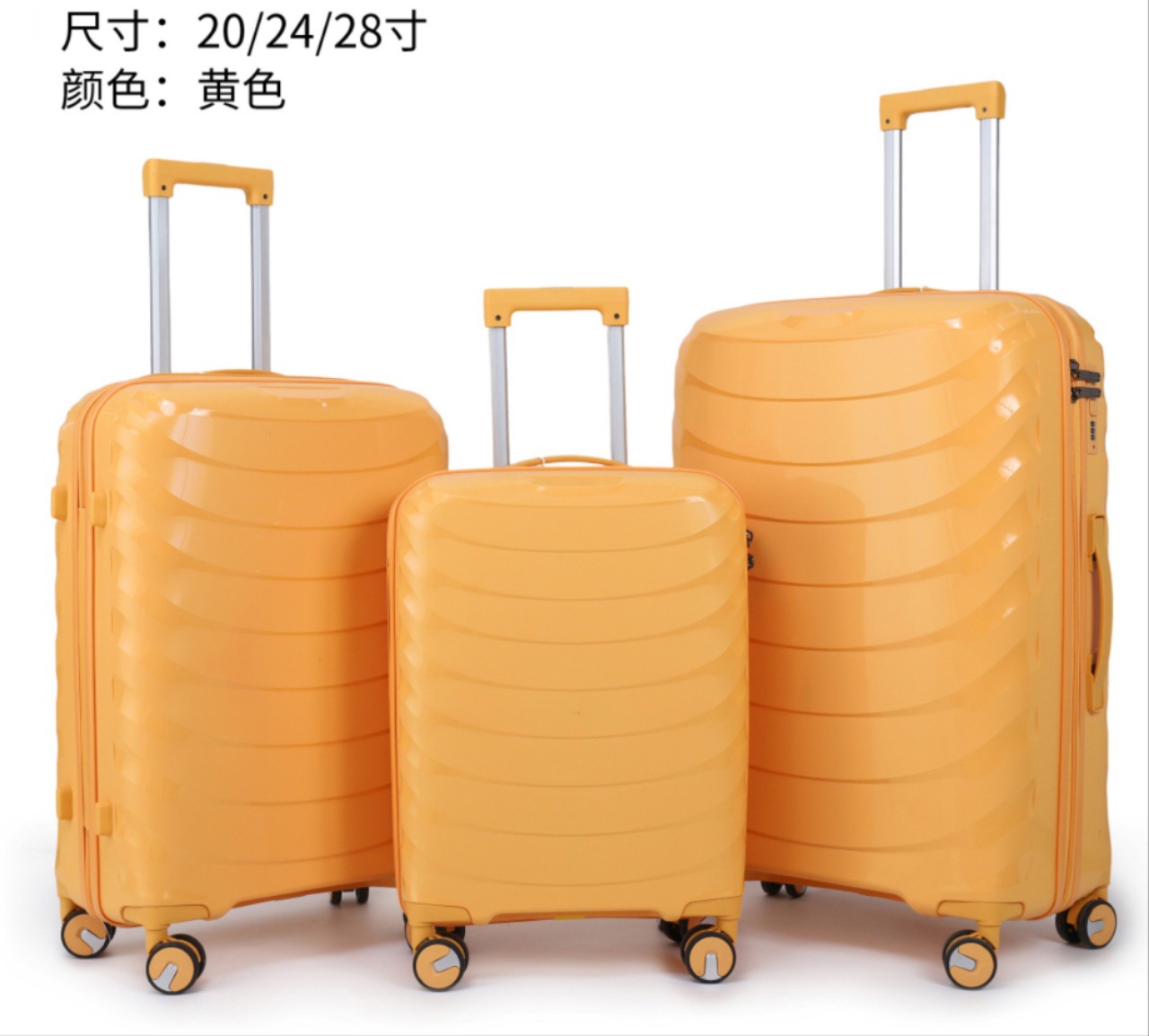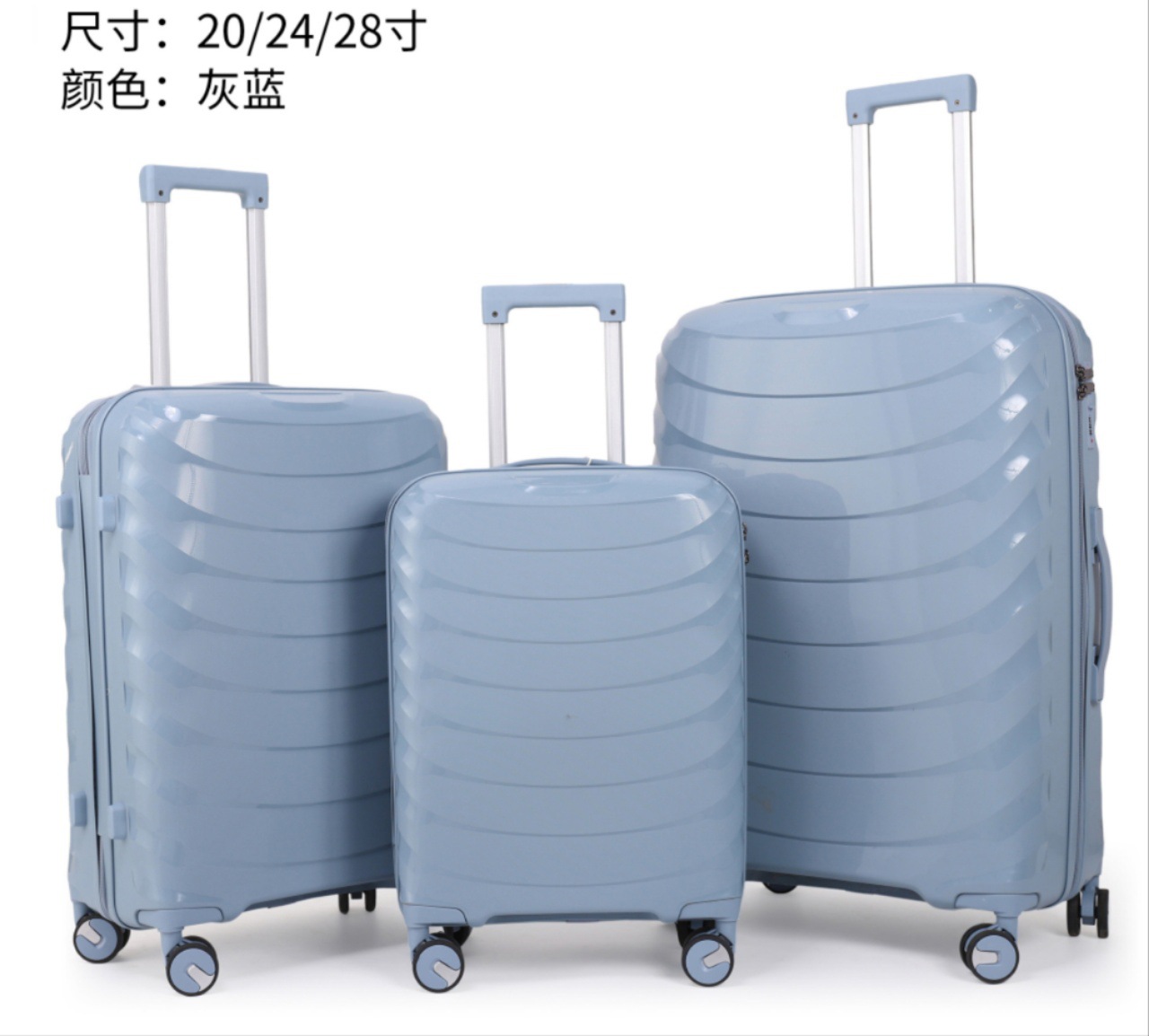 유럽과 미국의 대외 무역을 수출하는 맞춤형 PP 트롤리 케이스 3피스 세트 20inch + 24inch + 28인치 범용 휠 탑승 가방