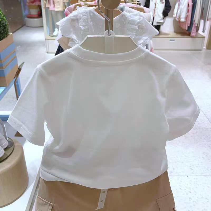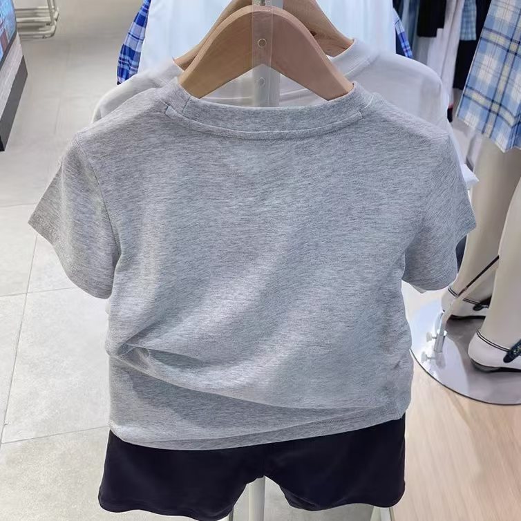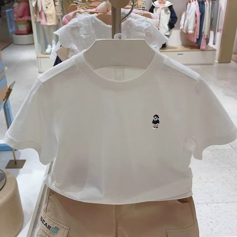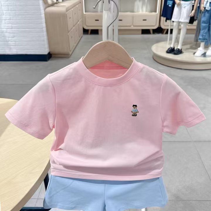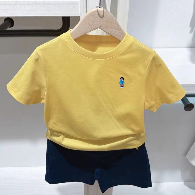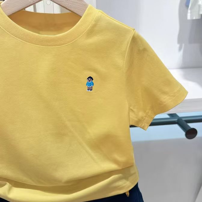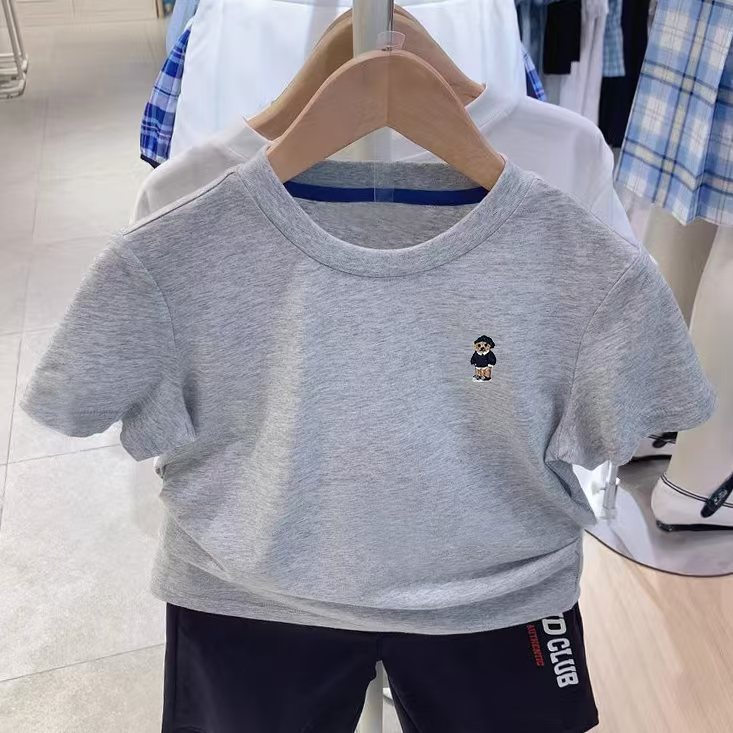 리틀베어 아동복 25번째 여름 남녀공용 자수 반팔 티셔츠 바텀 셔츠 작은 자수 단색 반팔