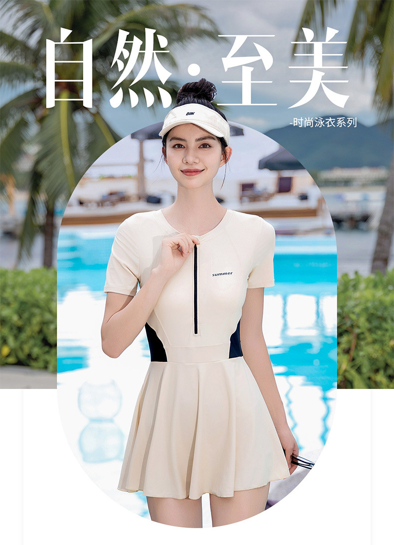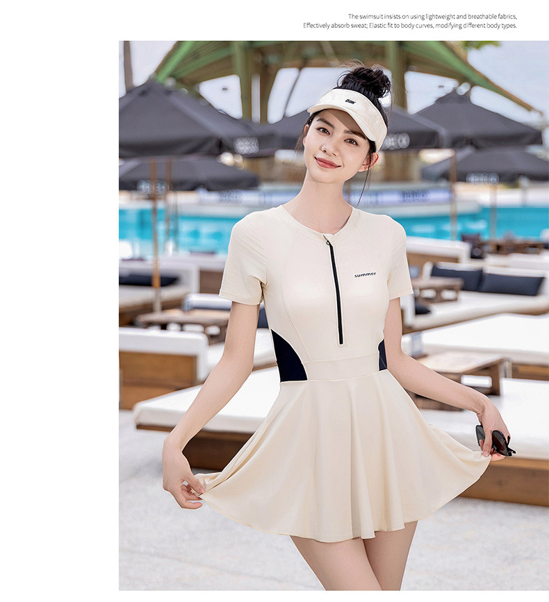 여성용 보수적 원피스 수영복, 스커트 스포츠웨어, 슬림하고 심플한 온천 단색 여성용 여름 레이싱 수영복 도매스토어 가기