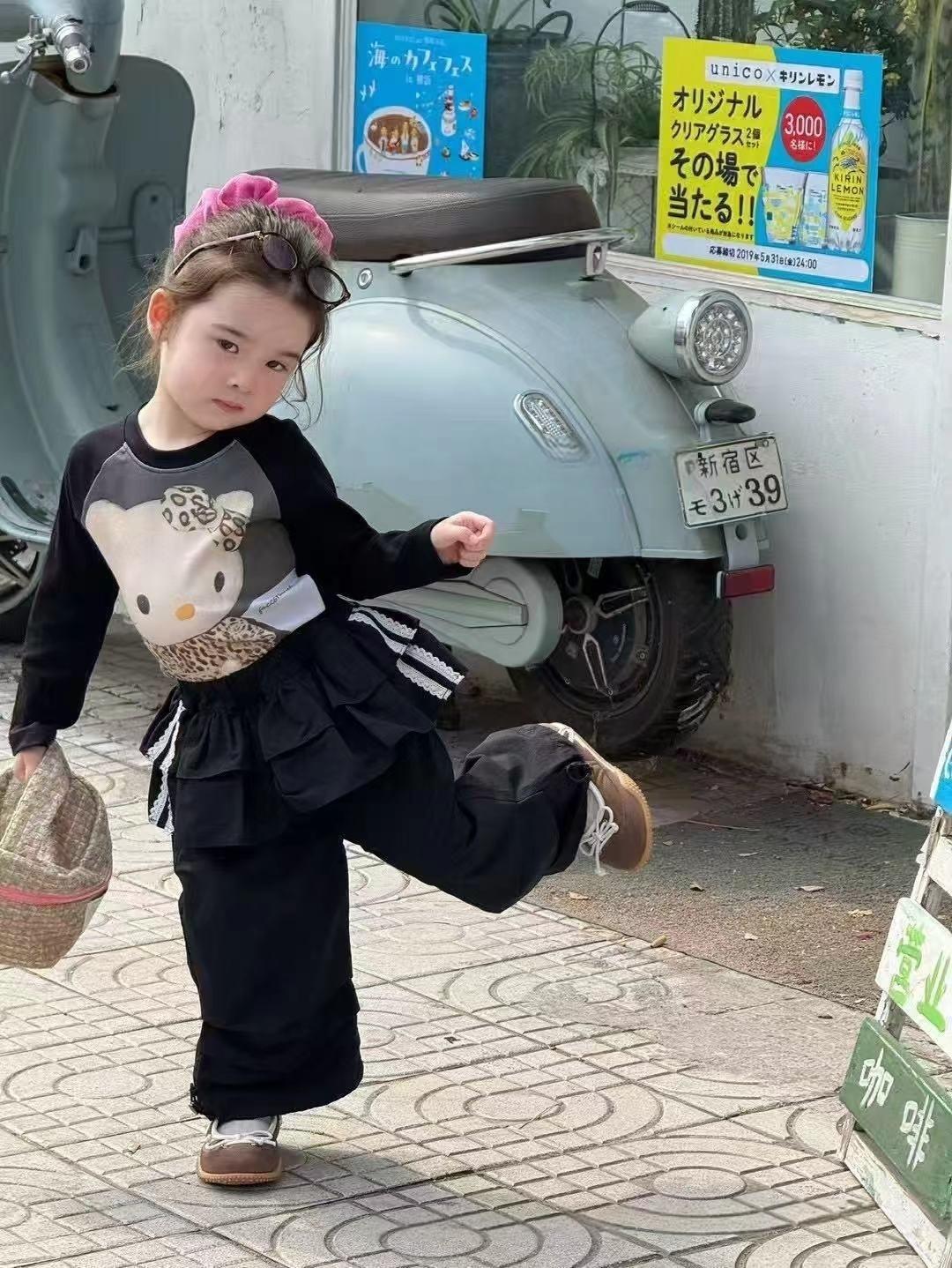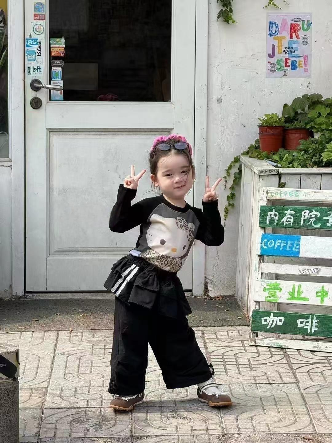 여자 티셔츠 2025 가을 새로운 만화 스타일 탑 아기 소녀 한국 kt 고양이 유행 귀여운 t