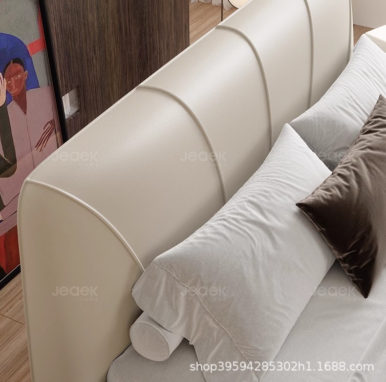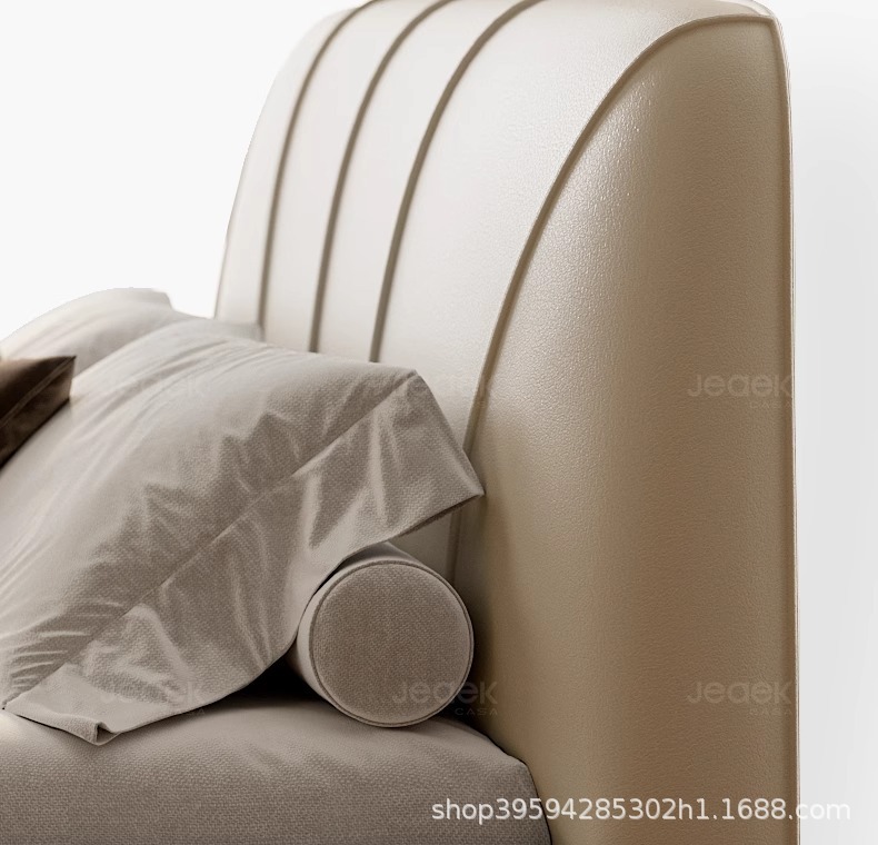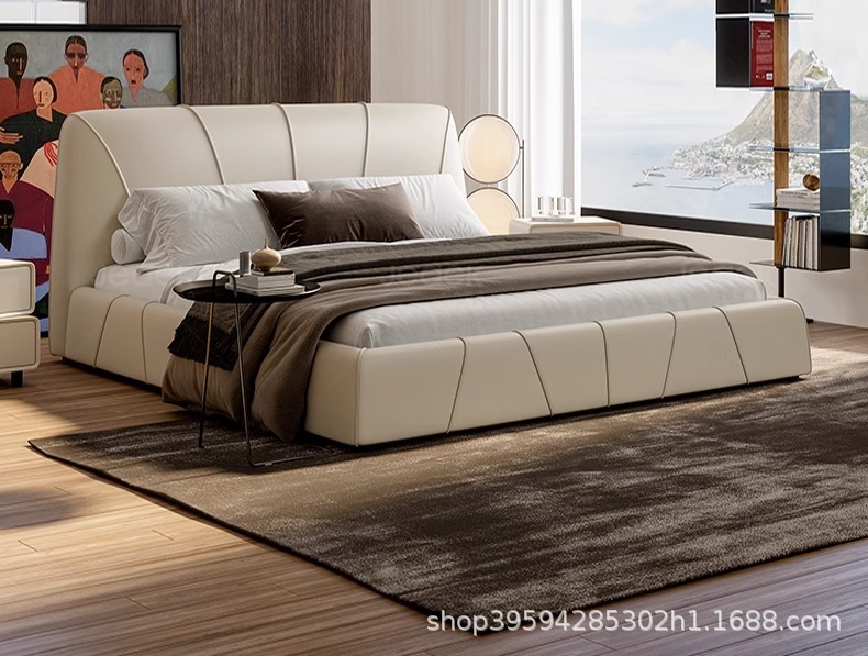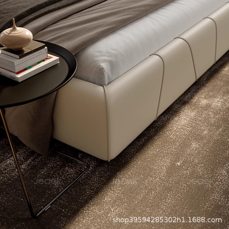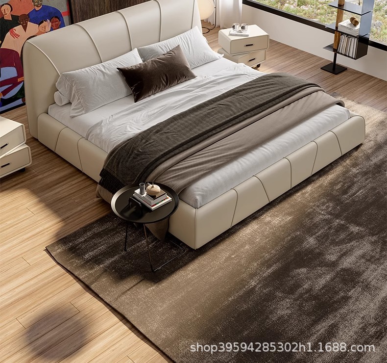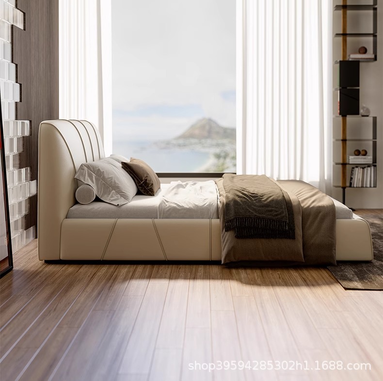 현대적인 미니멀리스트 가죽 침대, 마스터 침실, 고급스럽고 우아한 더블 침대, 1.8m 내장형 대형 침대, 심플한 소프트 침대