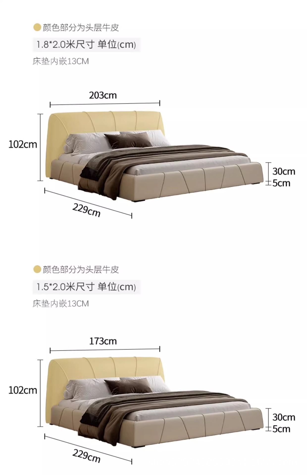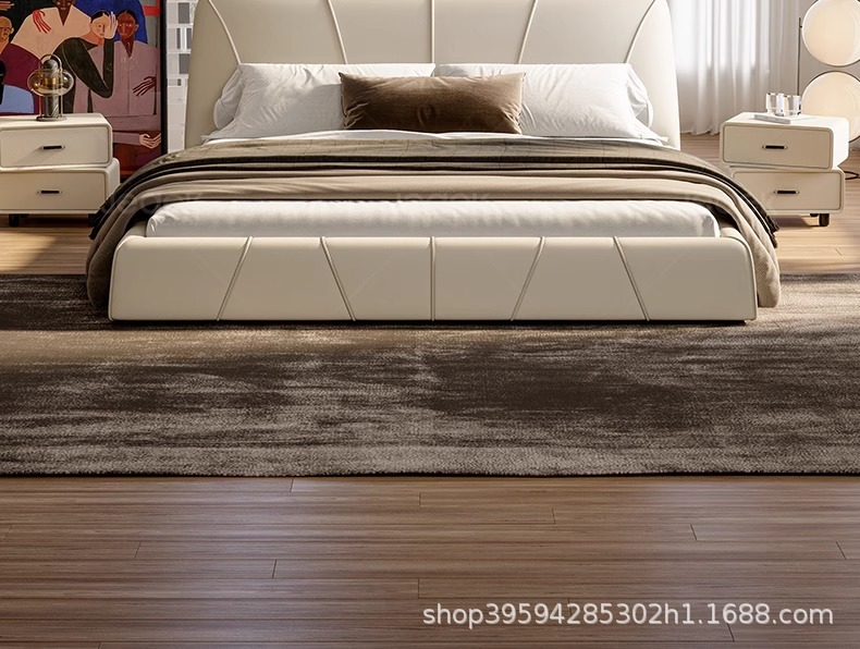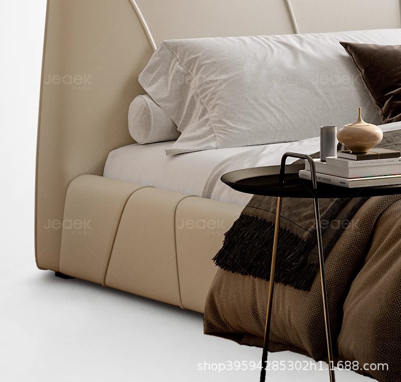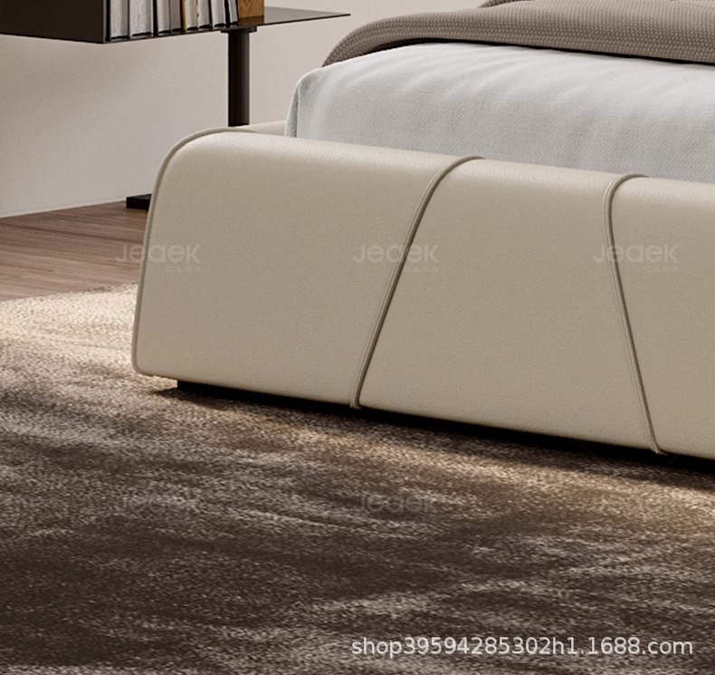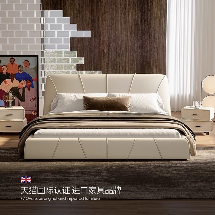 현대적인 미니멀리스트 가죽 침대, 마스터 침실, 고급스럽고 우아한 더블 침대, 1.8m 내장형 대형 침대, 심플한 소프트 침대