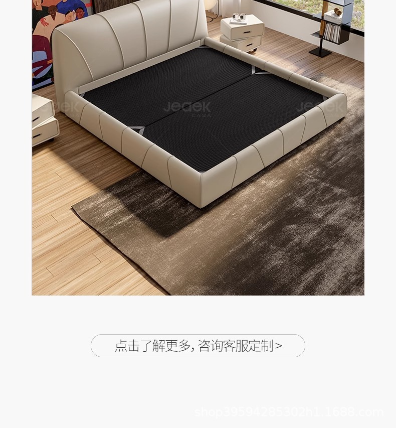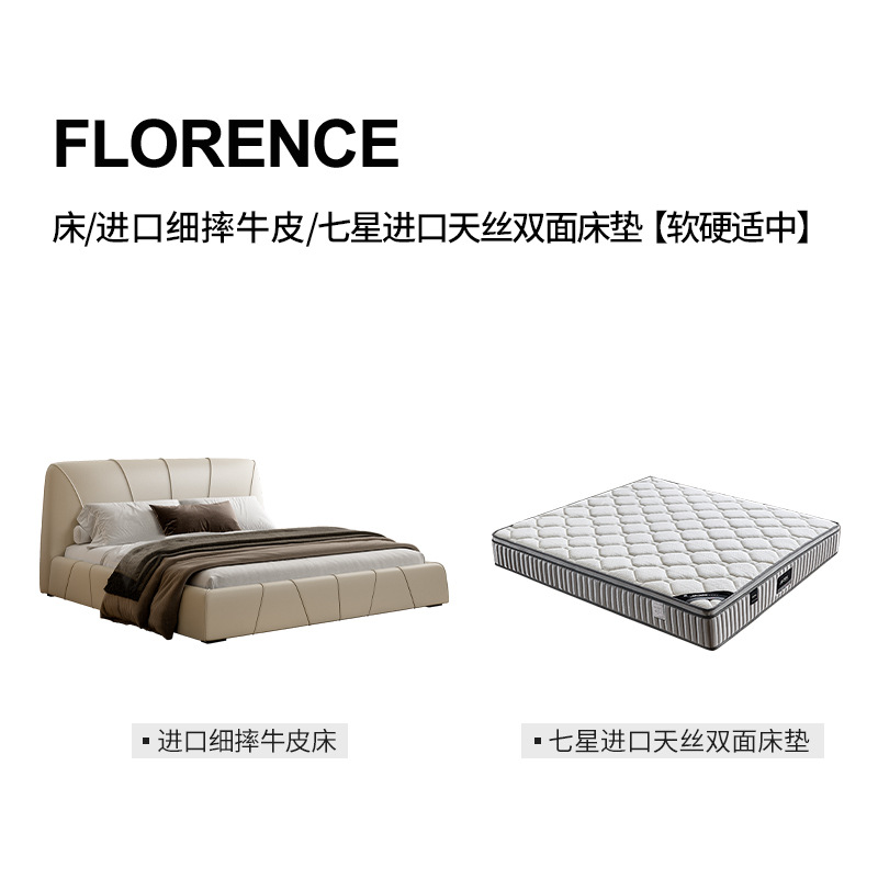 현대적인 미니멀리스트 가죽 침대, 마스터 침실, 고급스럽고 우아한 더블 침대, 1.8m 내장형 대형 침대, 심플한 소프트 침대스토어 가기
