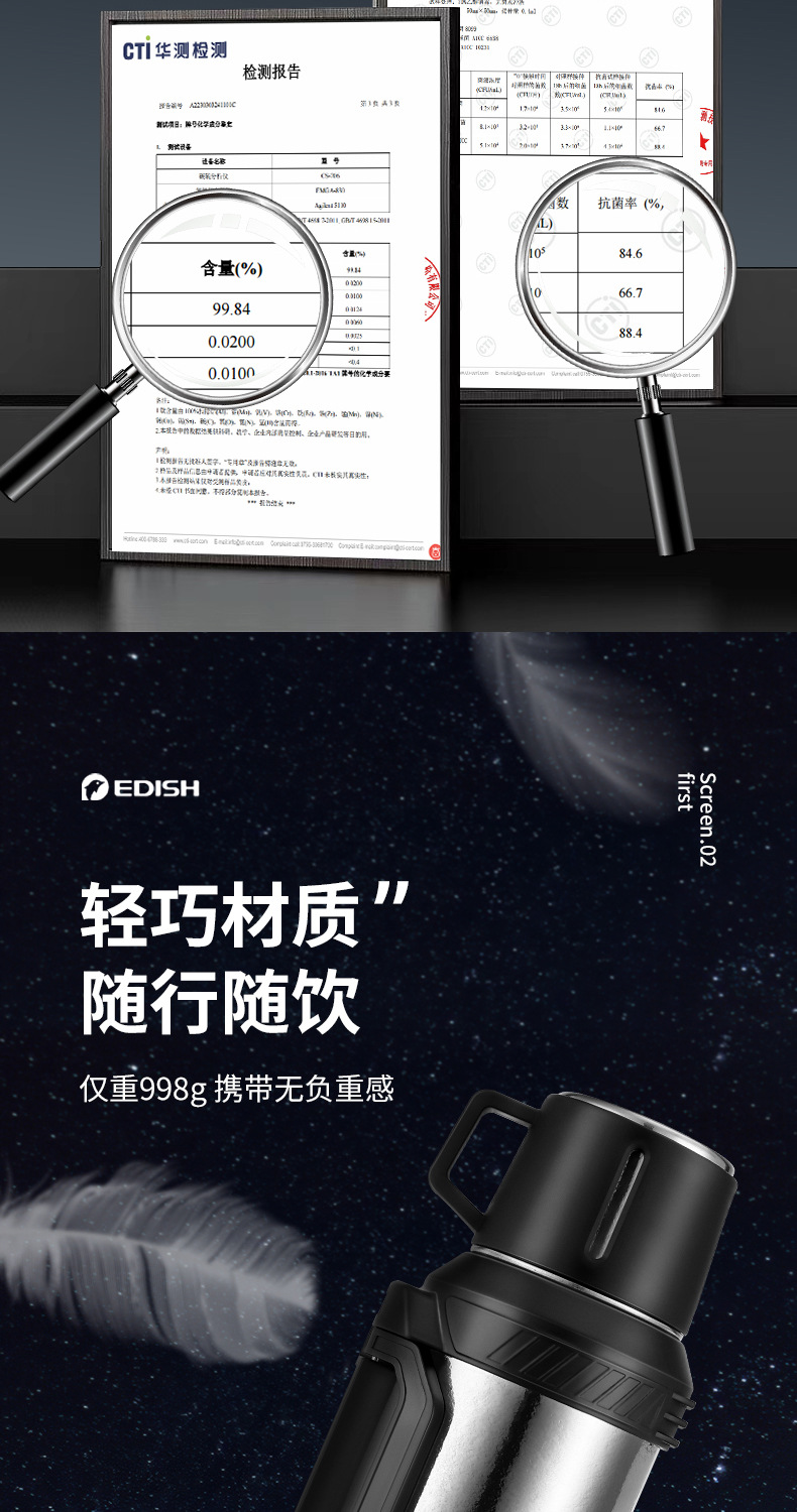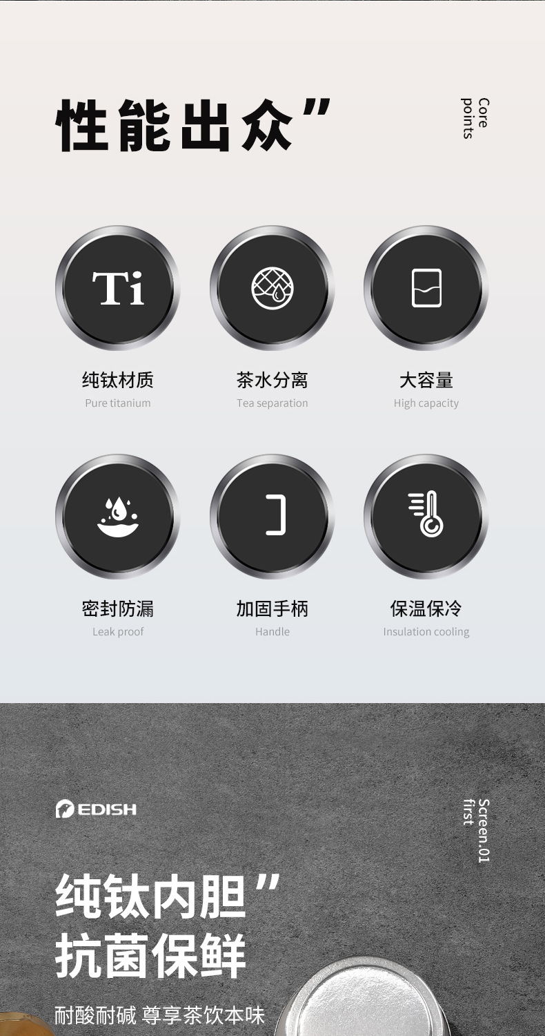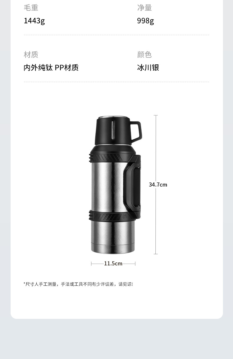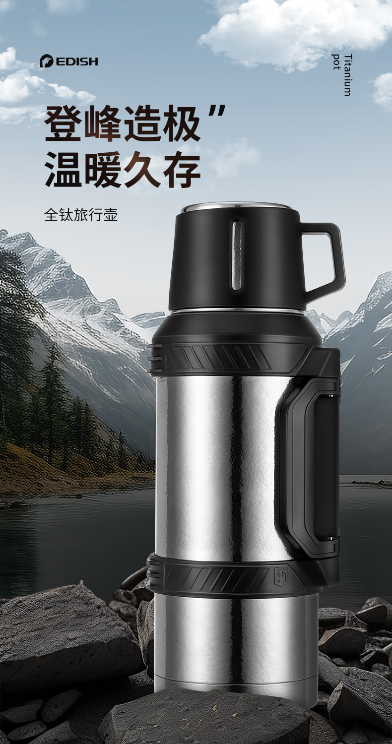 야외용 대용량 순수 티타늄 보온병 이중층 두꺼운 등산 캠핑용 티타늄 물병 맞춤형 보온병스토어 가기
