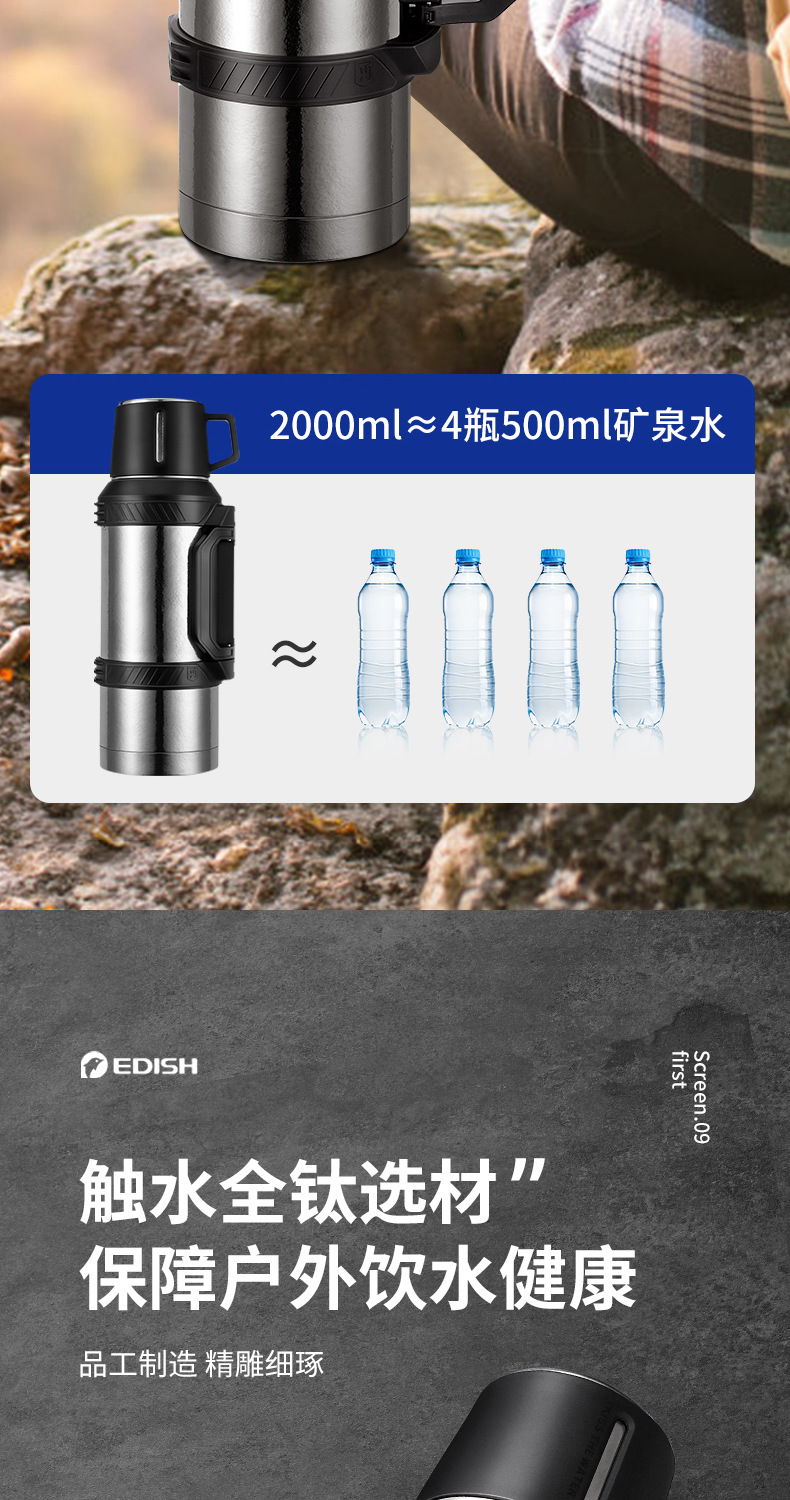 야외용 대용량 순수 티타늄 보온병 이중층 두꺼운 등산 캠핑용 티타늄 물병 맞춤형 보온병