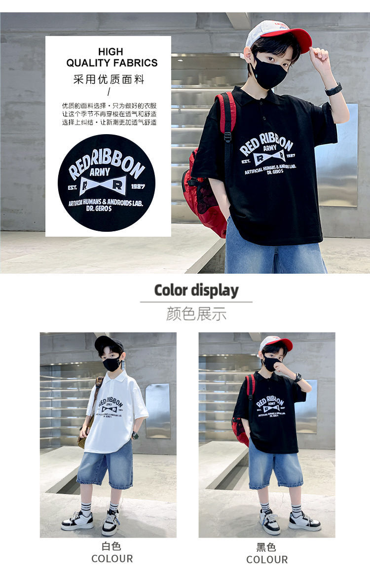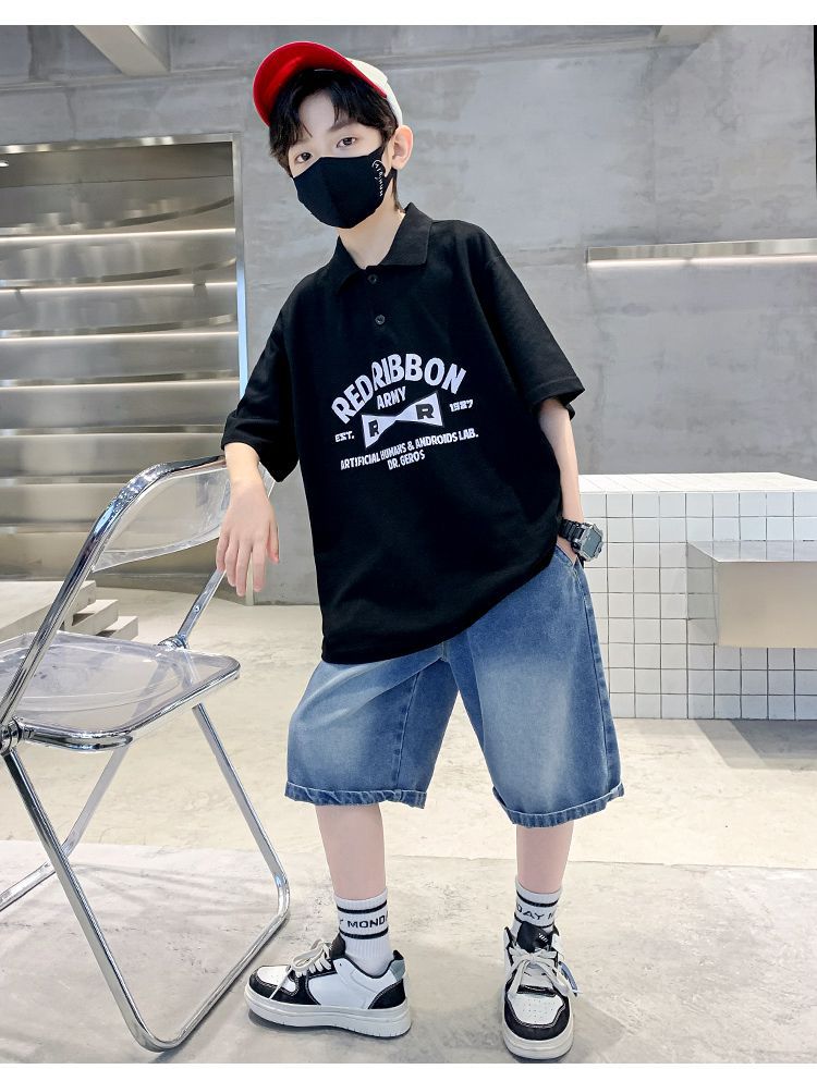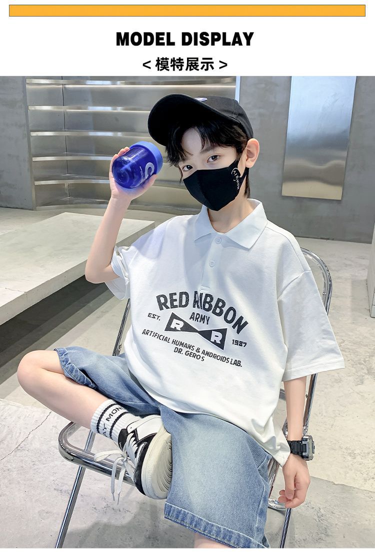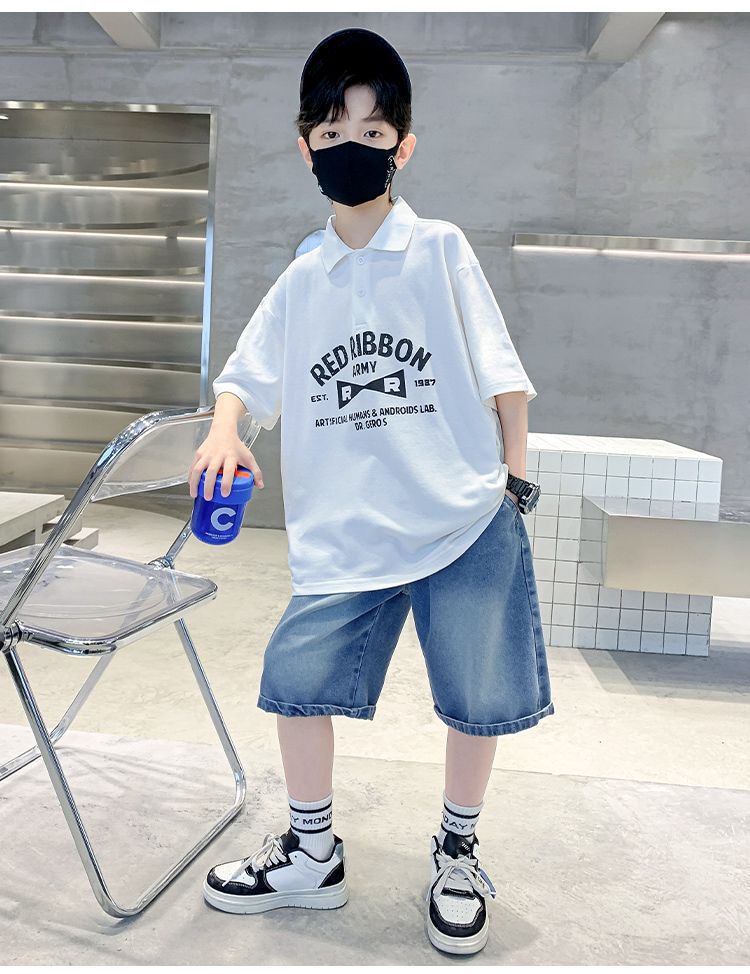 아동 여름 의류 소년 폴로 셔츠 정장 여름 반팔 2025 새로운 스타일 잘 생기고 세련된 중대형 아동 여름 캐주얼스토어 가기