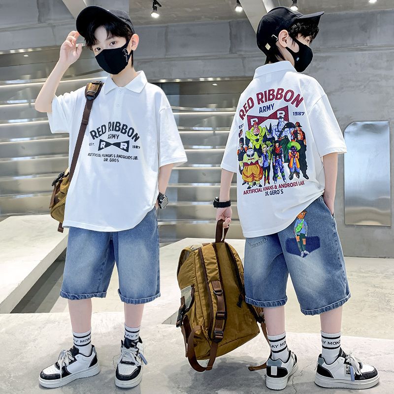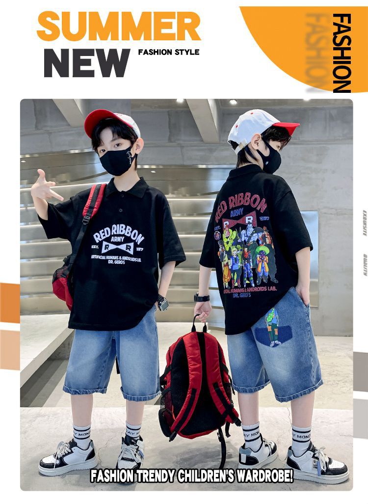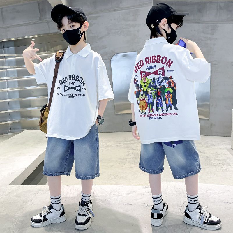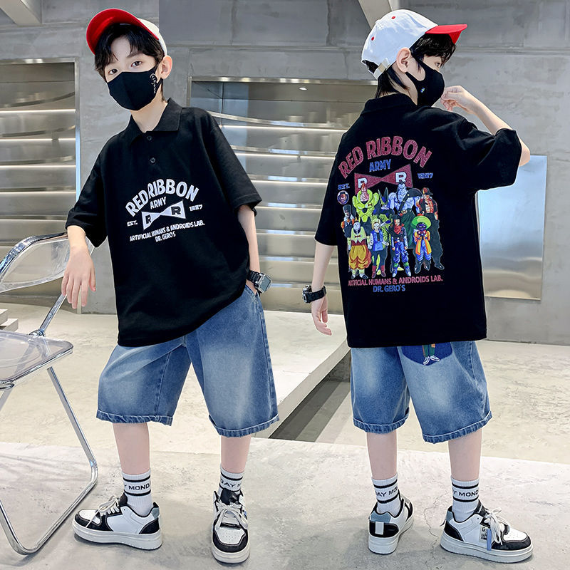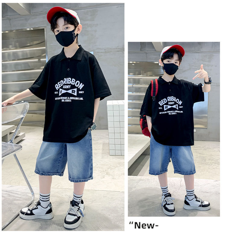 아동 여름 의류 소년 폴로 셔츠 정장 여름 반팔 2025 새로운 스타일 잘 생기고 세련된 중대형 아동 여름 캐주얼스토어 가기