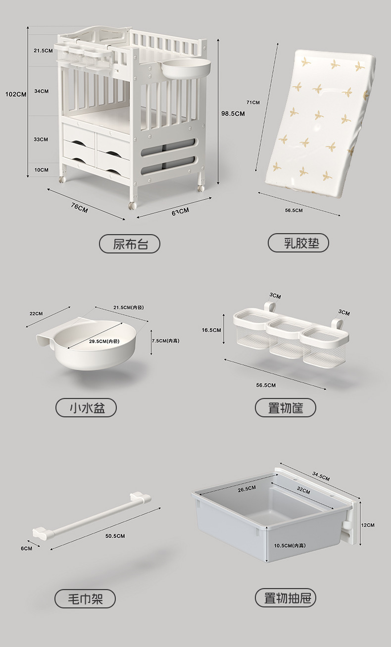 • 기저귀교환대 [럭셔리모델 + 걸이바구니 + 소형 세면대 + 라텍스 매트리스]