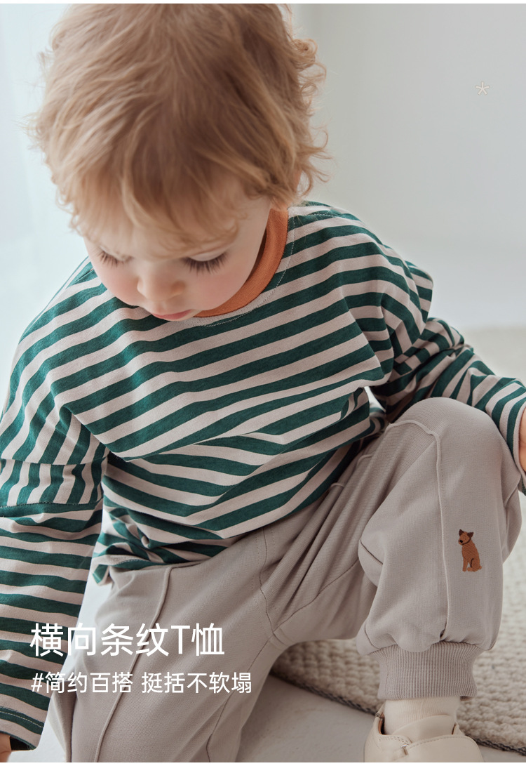 [브랜드 클리어런스] 베이비러브 아기 티셔츠 스트라이프 단색 긴팔 이너웨어 봄 가을 외출 캐주얼