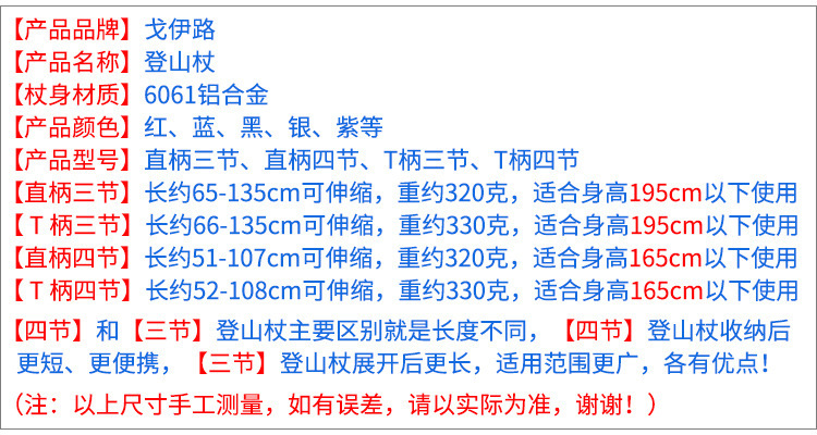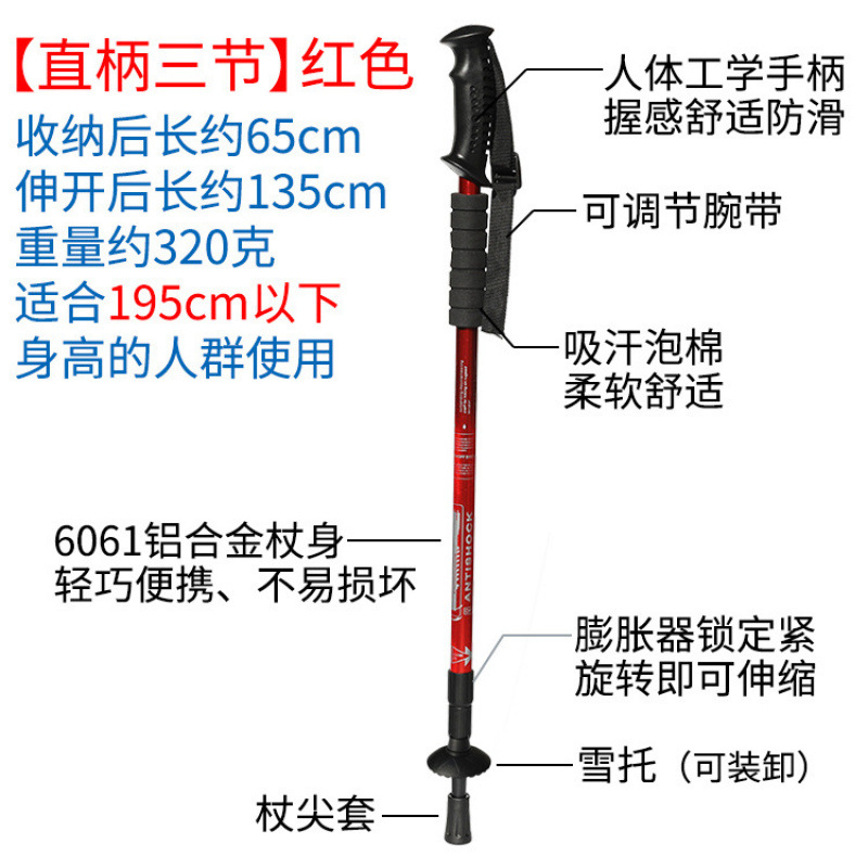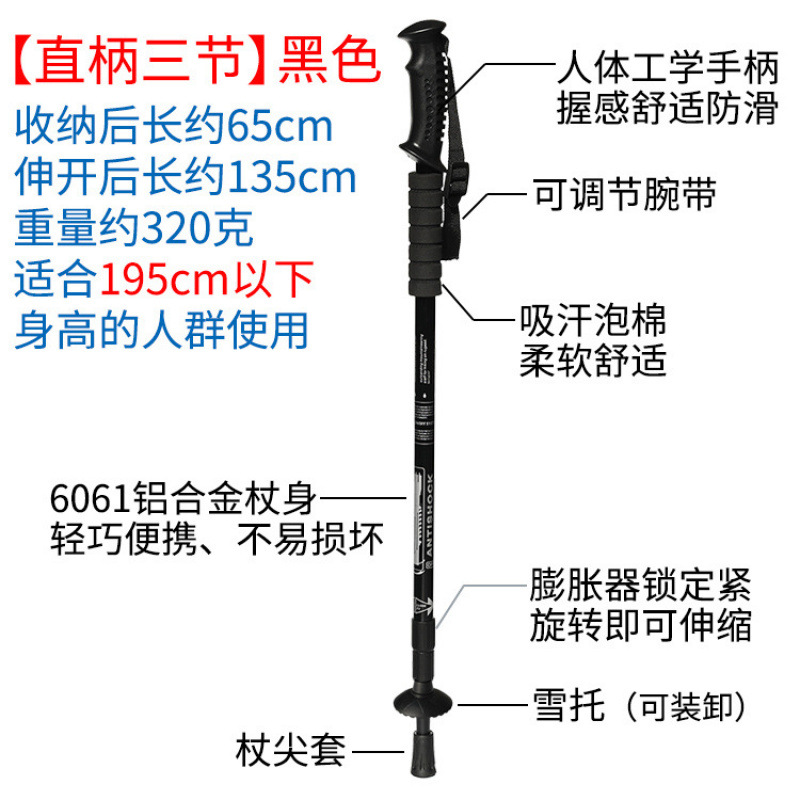 초경량 및 초단거리 등산 지팡이, 야외 접이식 접이식 지팡이, 하이킹 지팡이, 걷기 장비