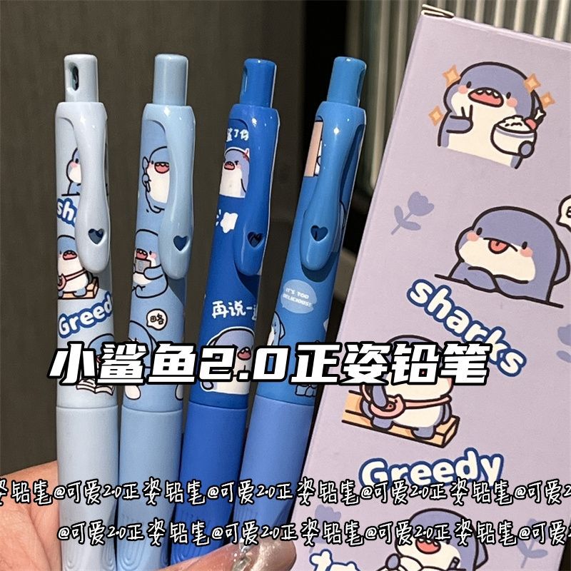 2.0 작은 상어 자동 연필 ins 스타일 고급스럽고 귀여운 학생이 심을 깨지기 쉽지 않으며 그립 연필을 교정합니다.