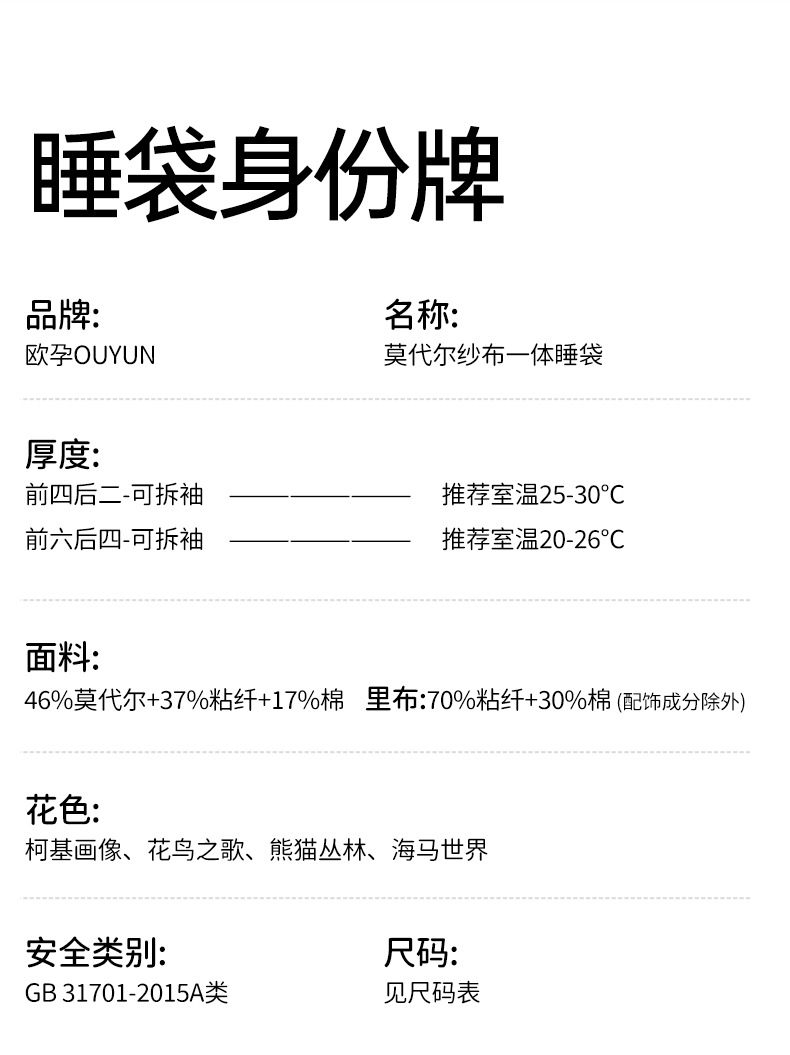 Ouyun-아기 침낭 봄과 여름 아기 올인원 안티 킥 이불 모달 대나무 면 거즈 사계절 침낭