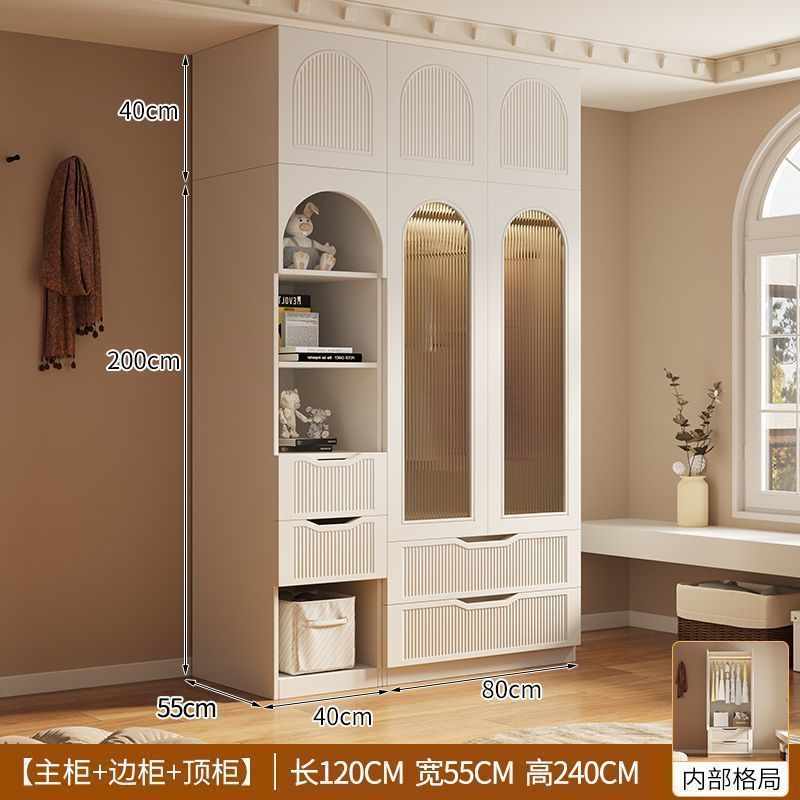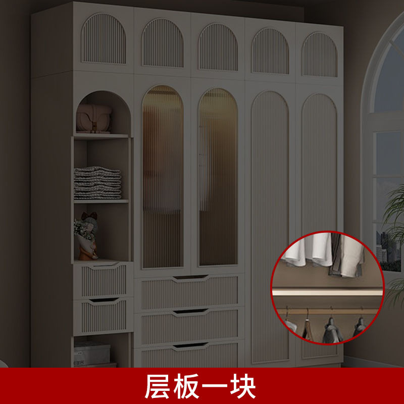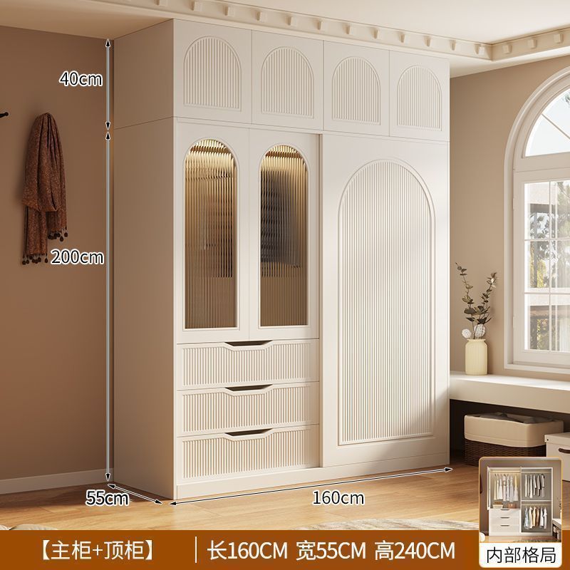 옷장 프렌치 크림 스타일 옷장 홈 침실 작은 아파트 라이트 럭셔리 슬라이딩 도어 스토리지 옷장 어린이 옷장