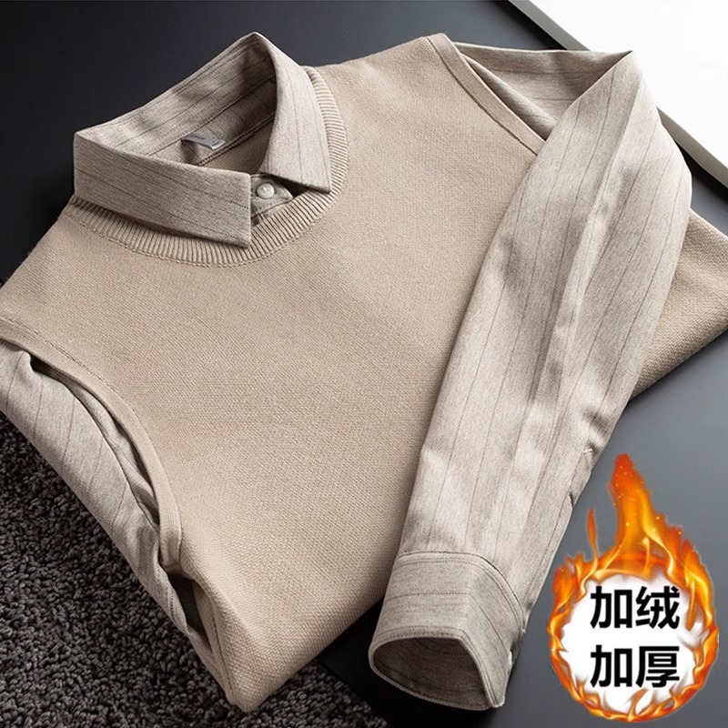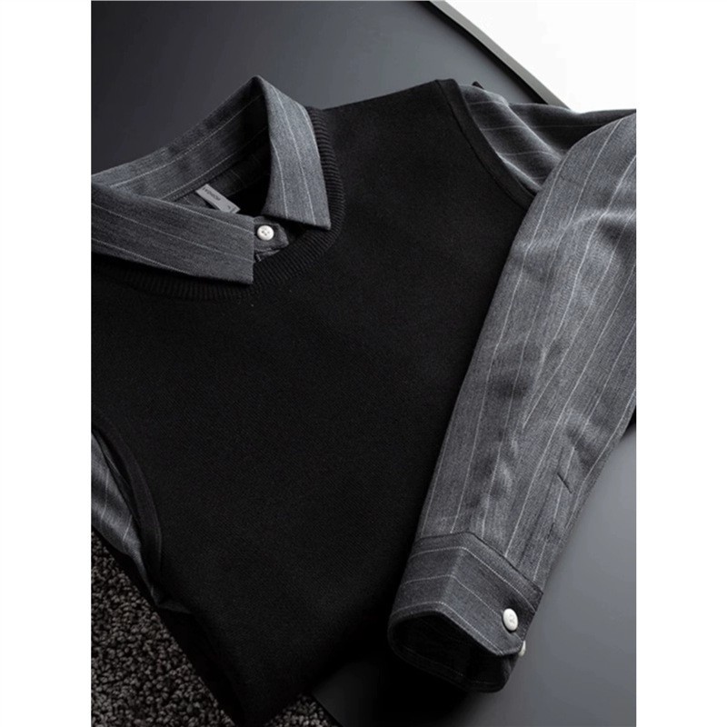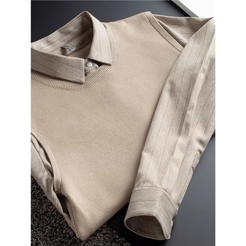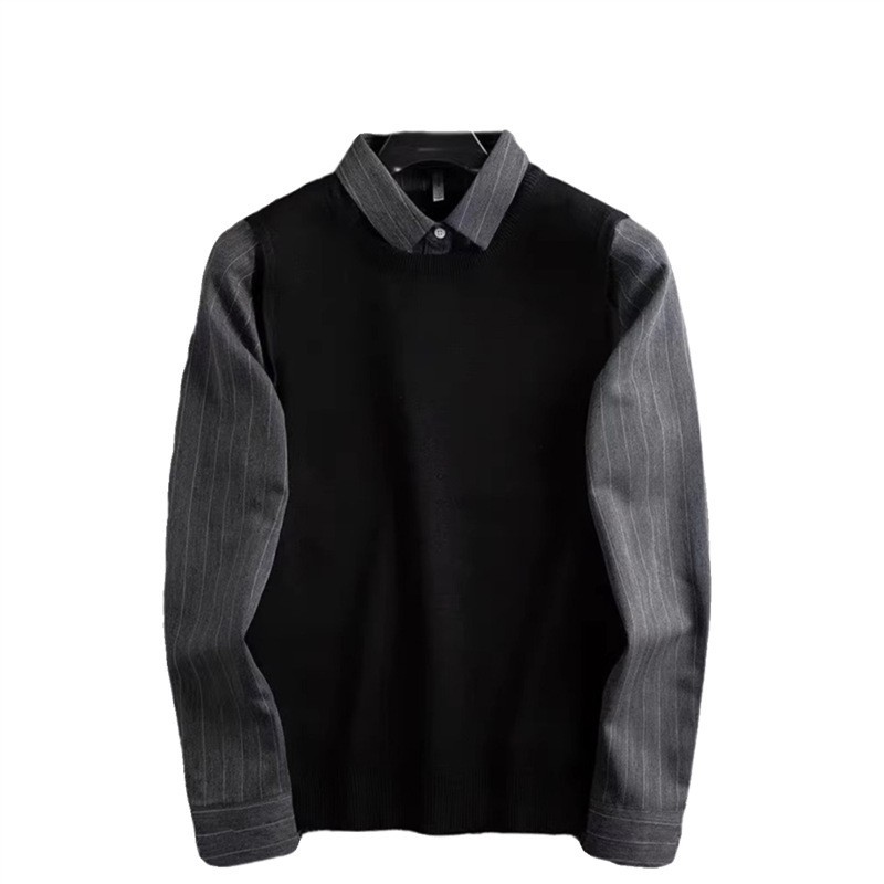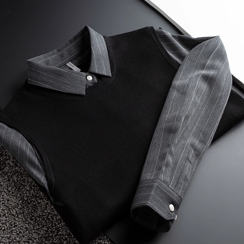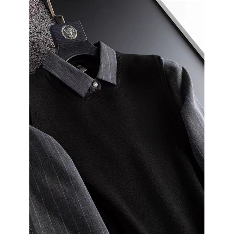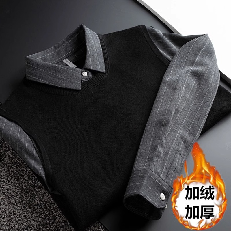 가벼운 럭셔리 가을, 겨울 두꺼운 따뜻한 비즈니스 캐주얼 셔츠 칼라 가짜 투피스 스웨터 남성용 슬림 풀오버 스웨터스토어 가기