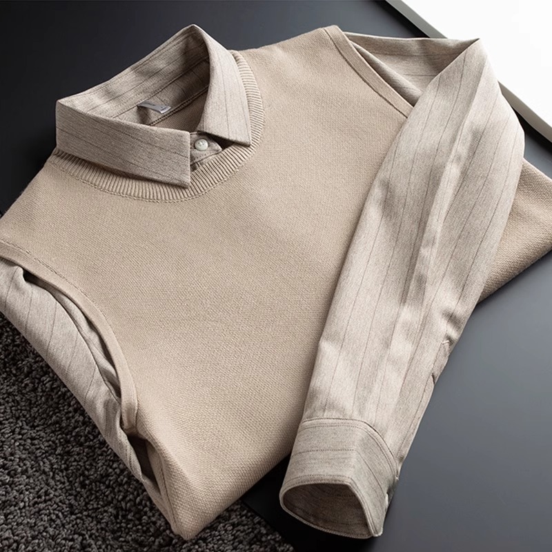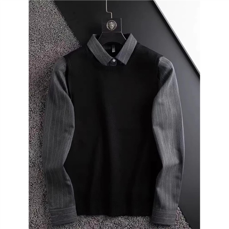 가벼운 럭셔리 가을, 겨울 두꺼운 따뜻한 비즈니스 캐주얼 셔츠 칼라 가짜 투피스 스웨터 남성용 슬림 풀오버 스웨터