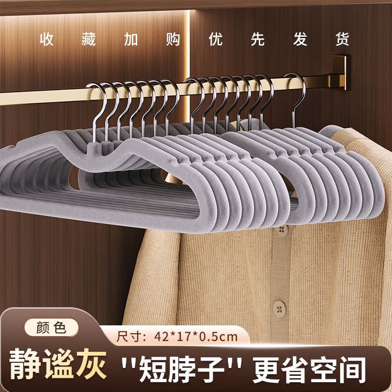 옷걸이, 플록 처리된 짧은 목 옷걸이, 가정용 일상용 미끄럼 방지, 흔적 없는 짧은 목 옷걸이, 가정용 옷걸이, 두꺼운스토어 가기