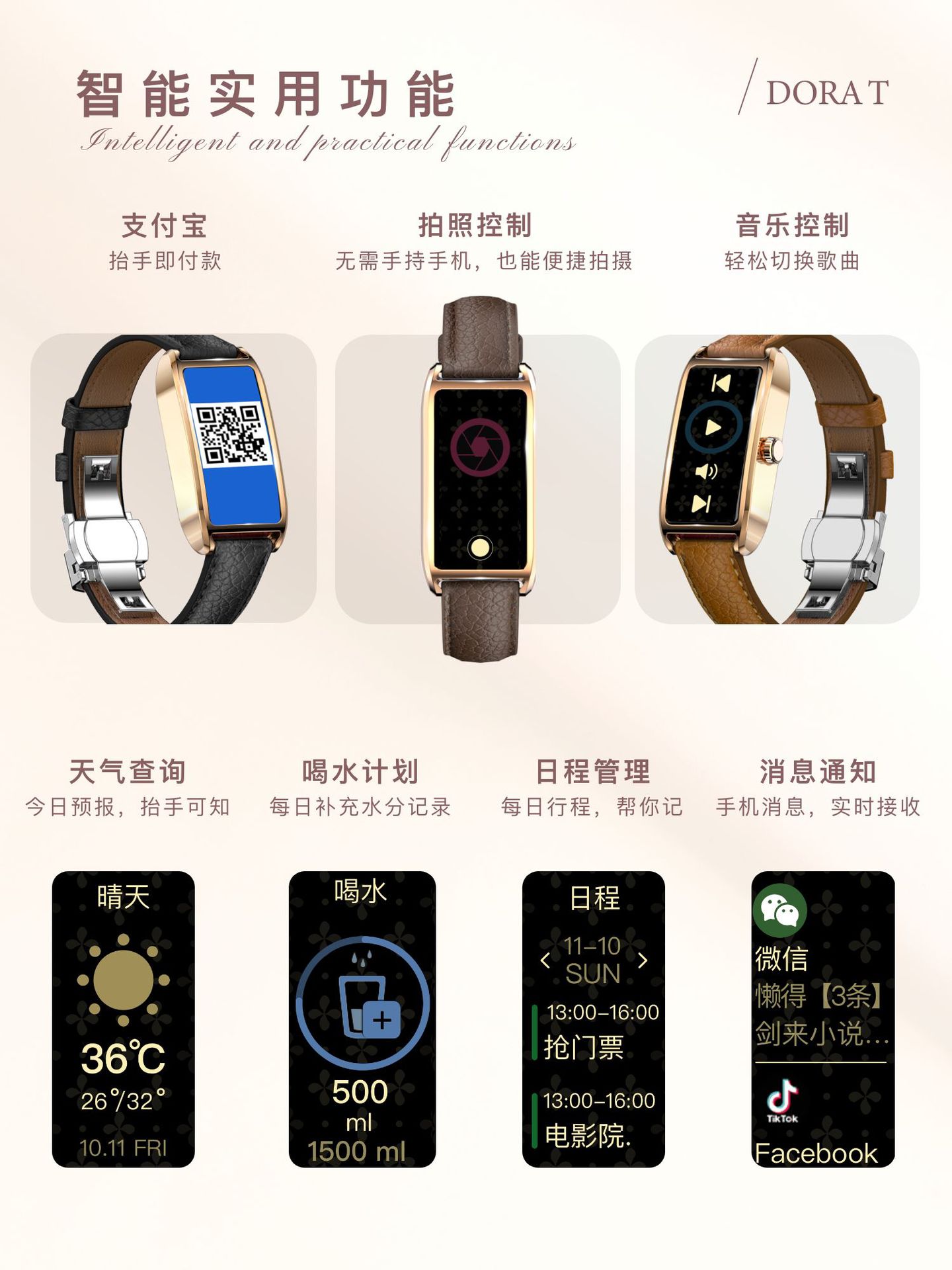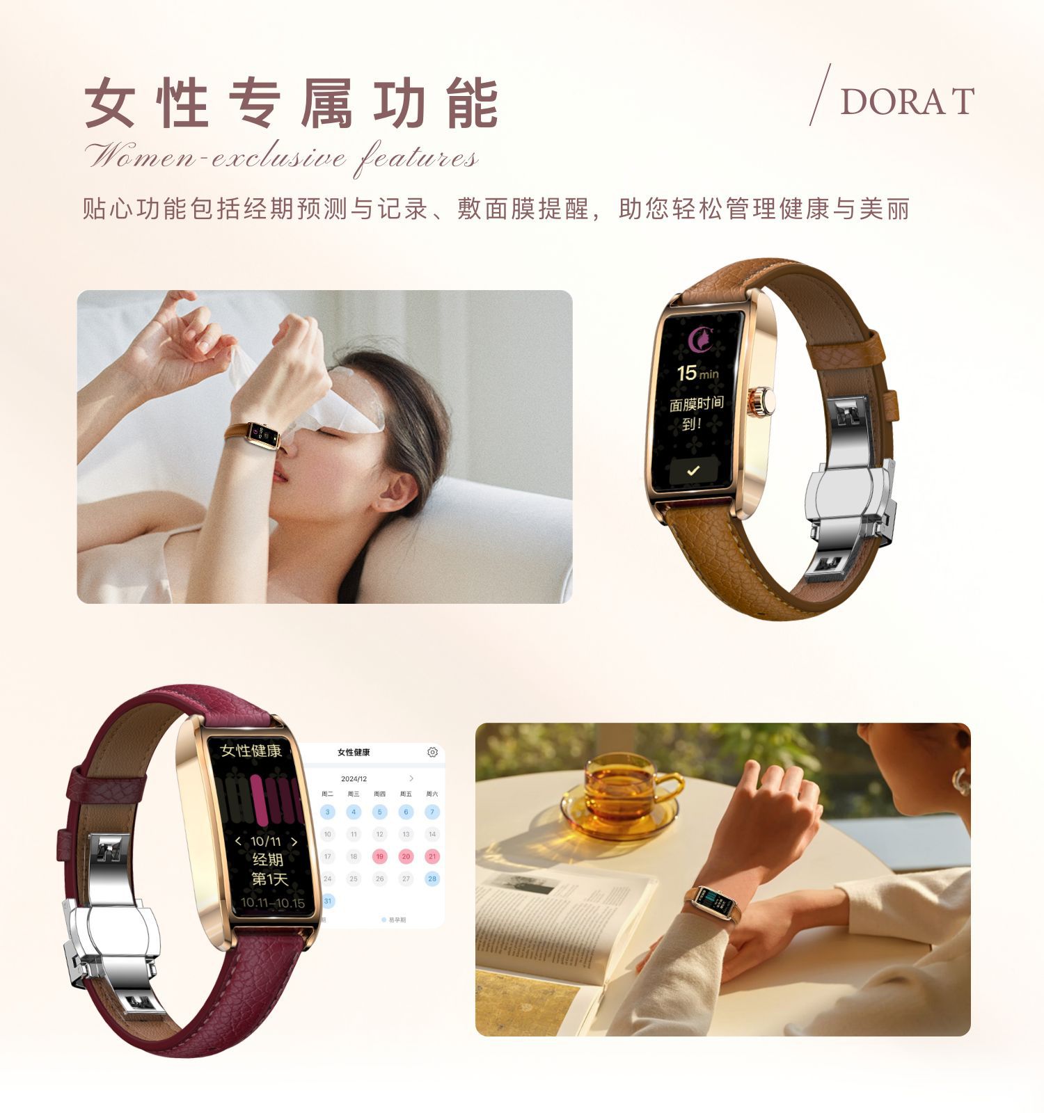 Dora T 여성용 소형 사각형 녹색 시계 심박수 혈압 혈액 산소 모니터링 메시지 알림 멀티 스포츠 핸드스토어 가기
