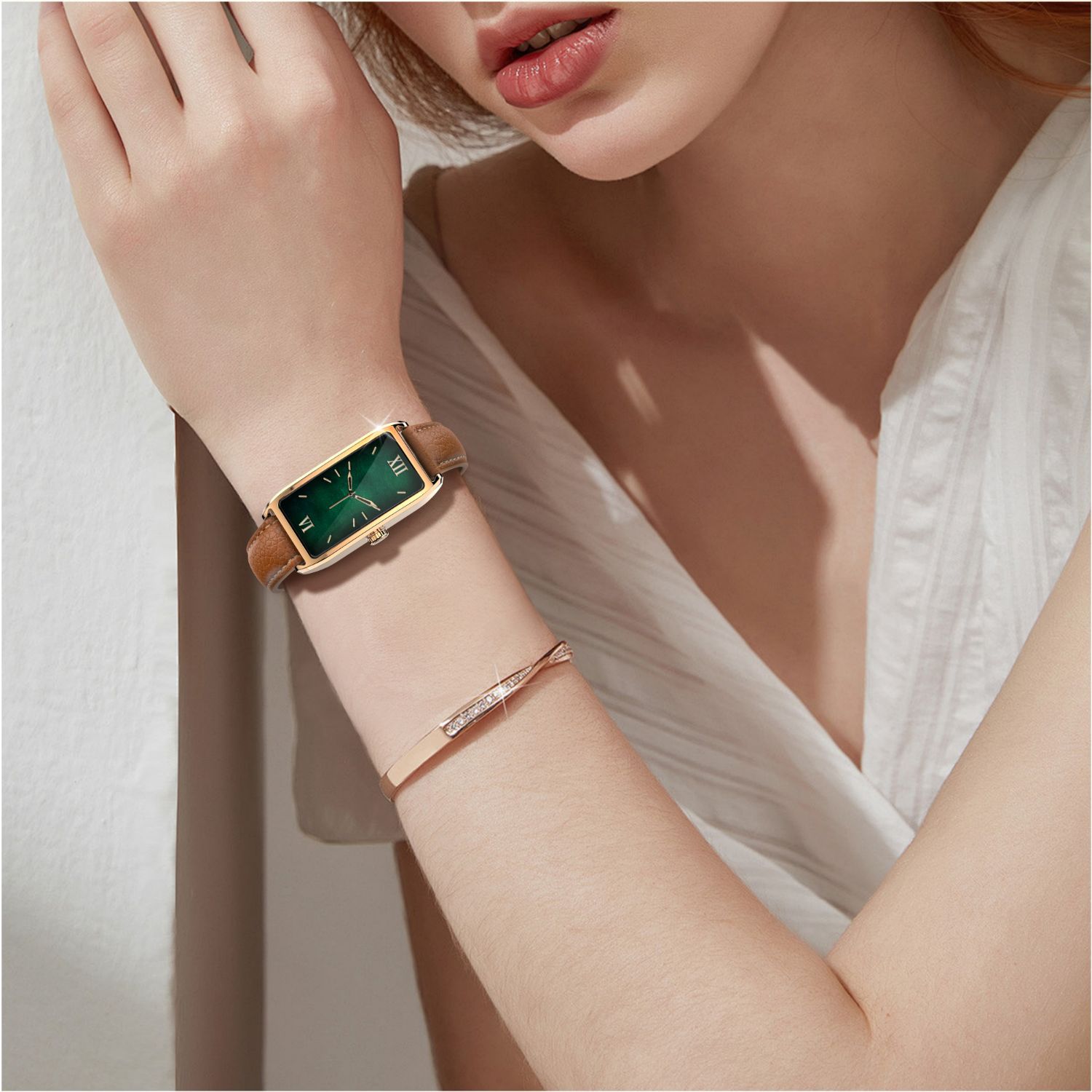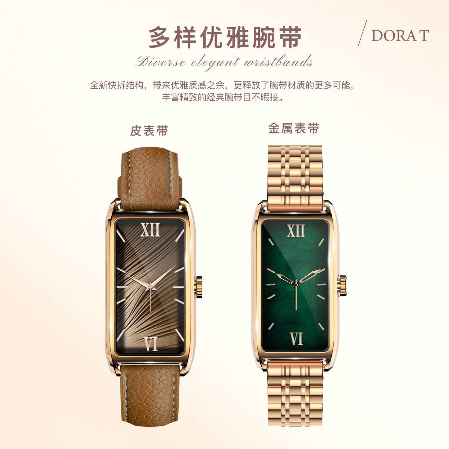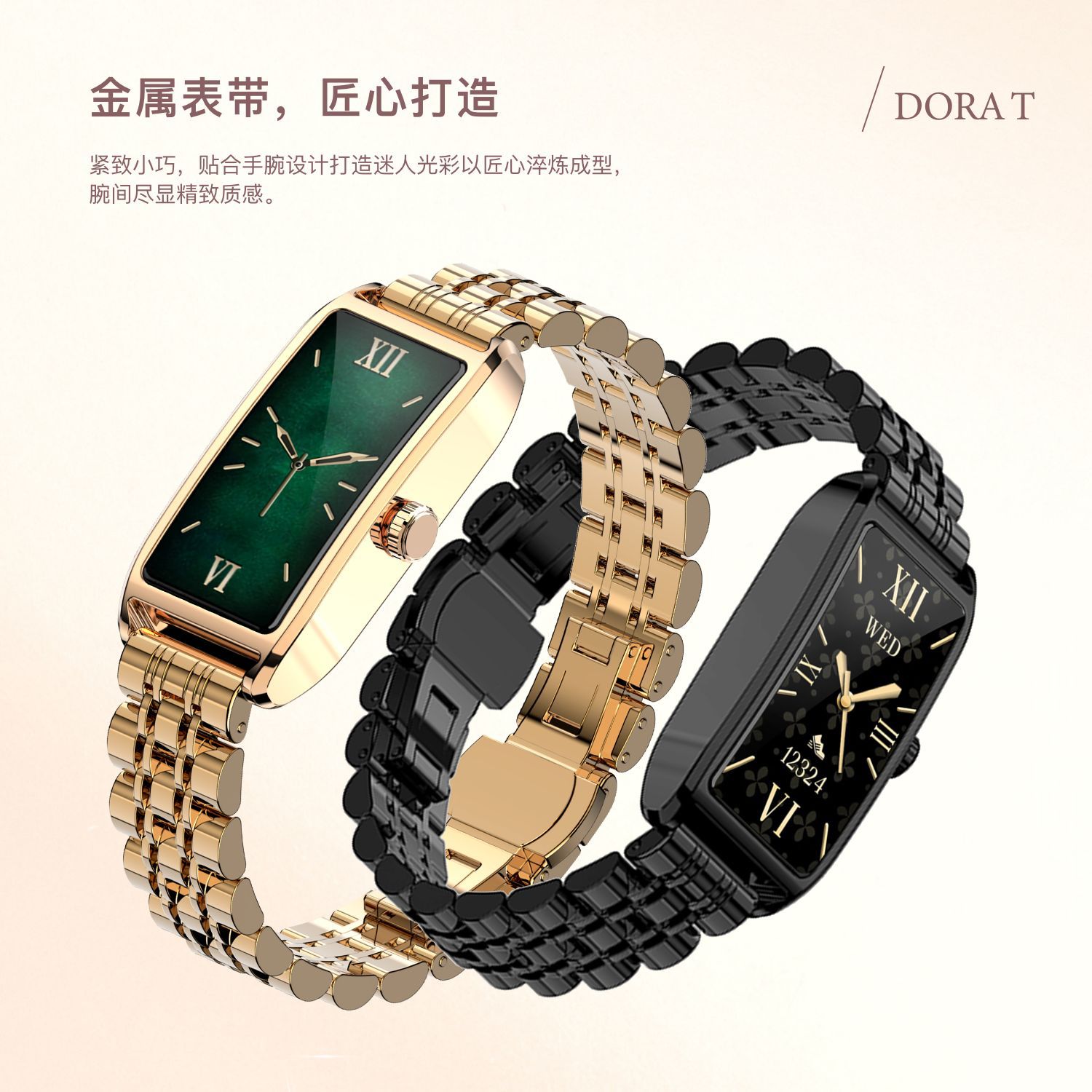 Dora T 여성용 소형 사각형 녹색 시계 심박수 혈압 혈액 산소 모니터링 메시지 알림 멀티 스포츠 핸드