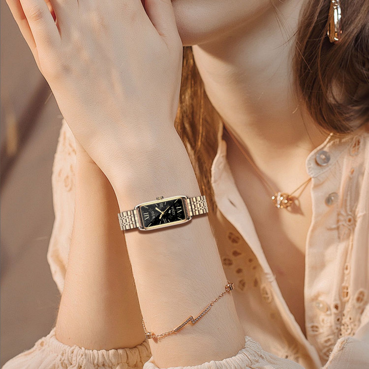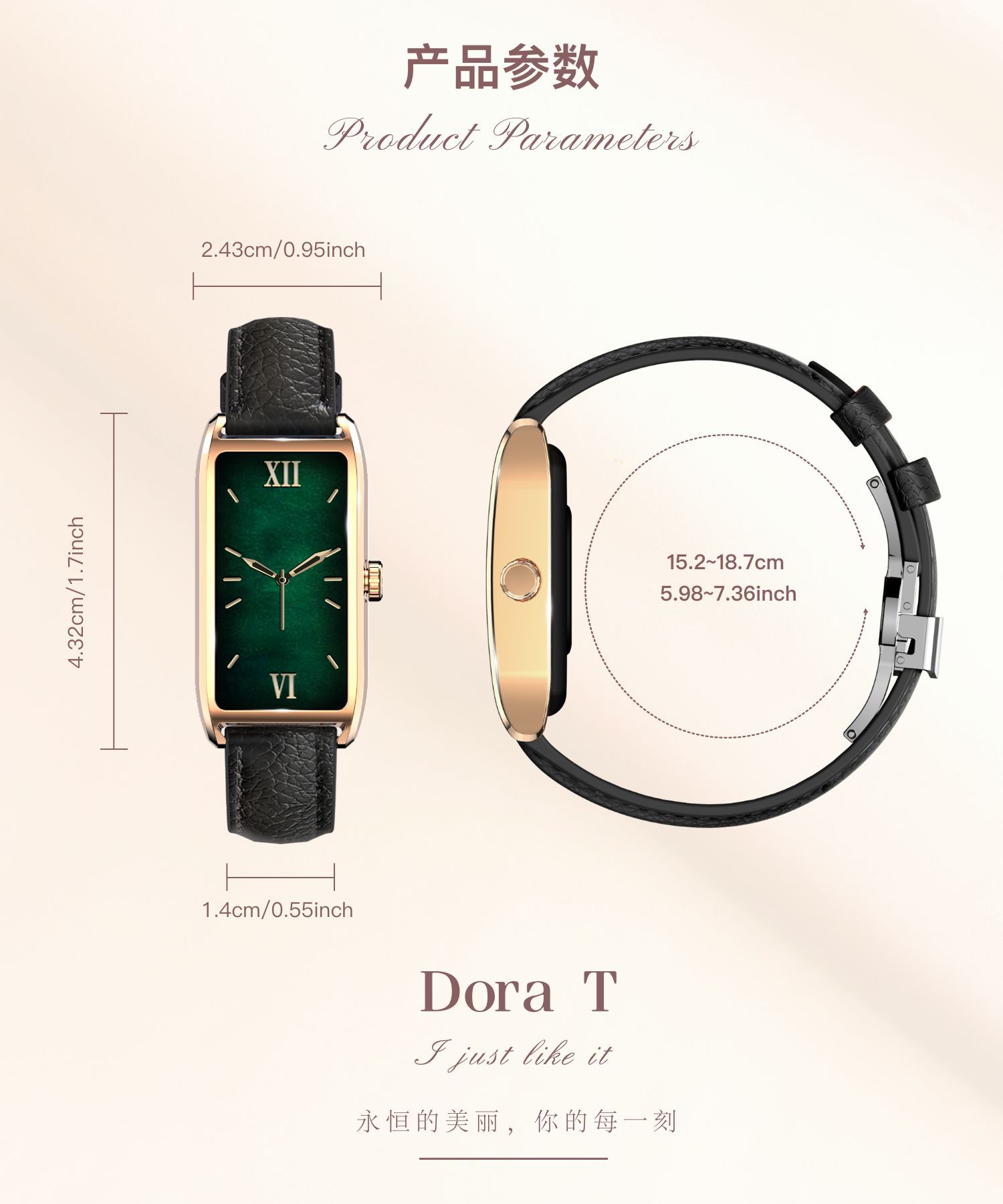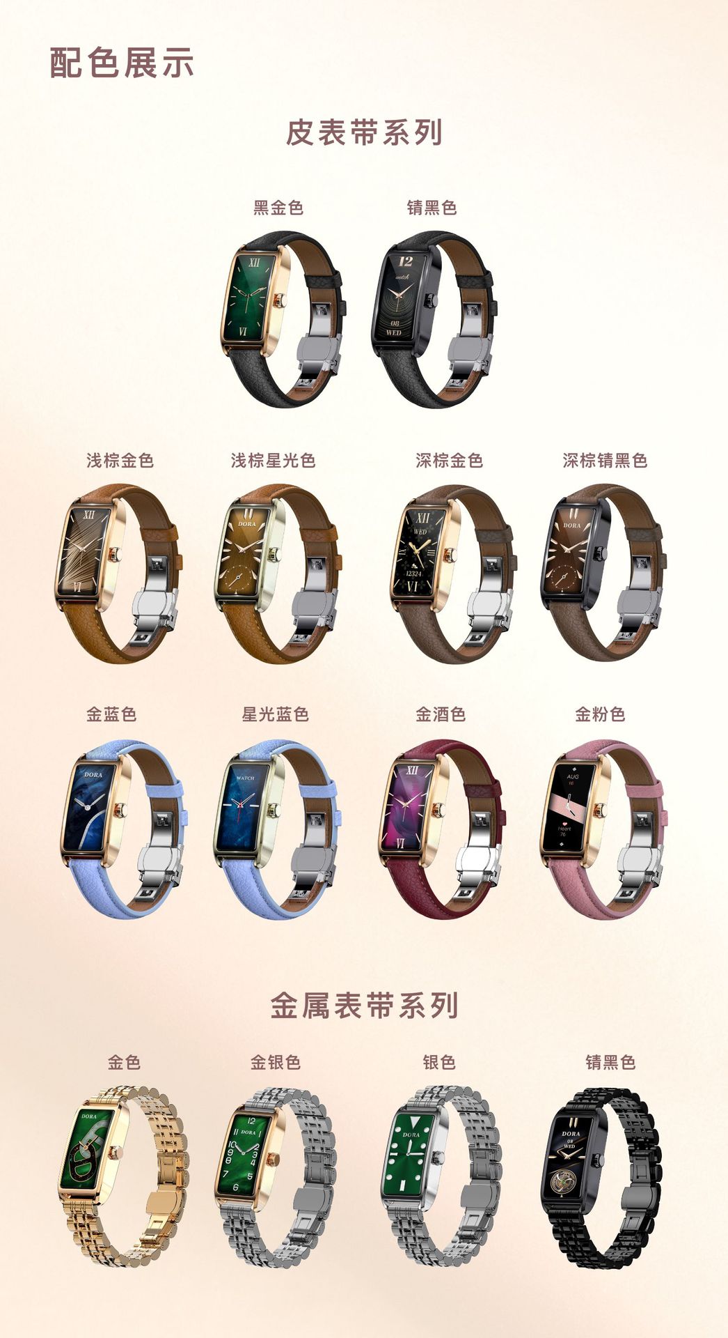 Dora T 여성용 소형 사각형 녹색 시계 심박수 혈압 혈액 산소 모니터링 메시지 알림 멀티 스포츠 핸드