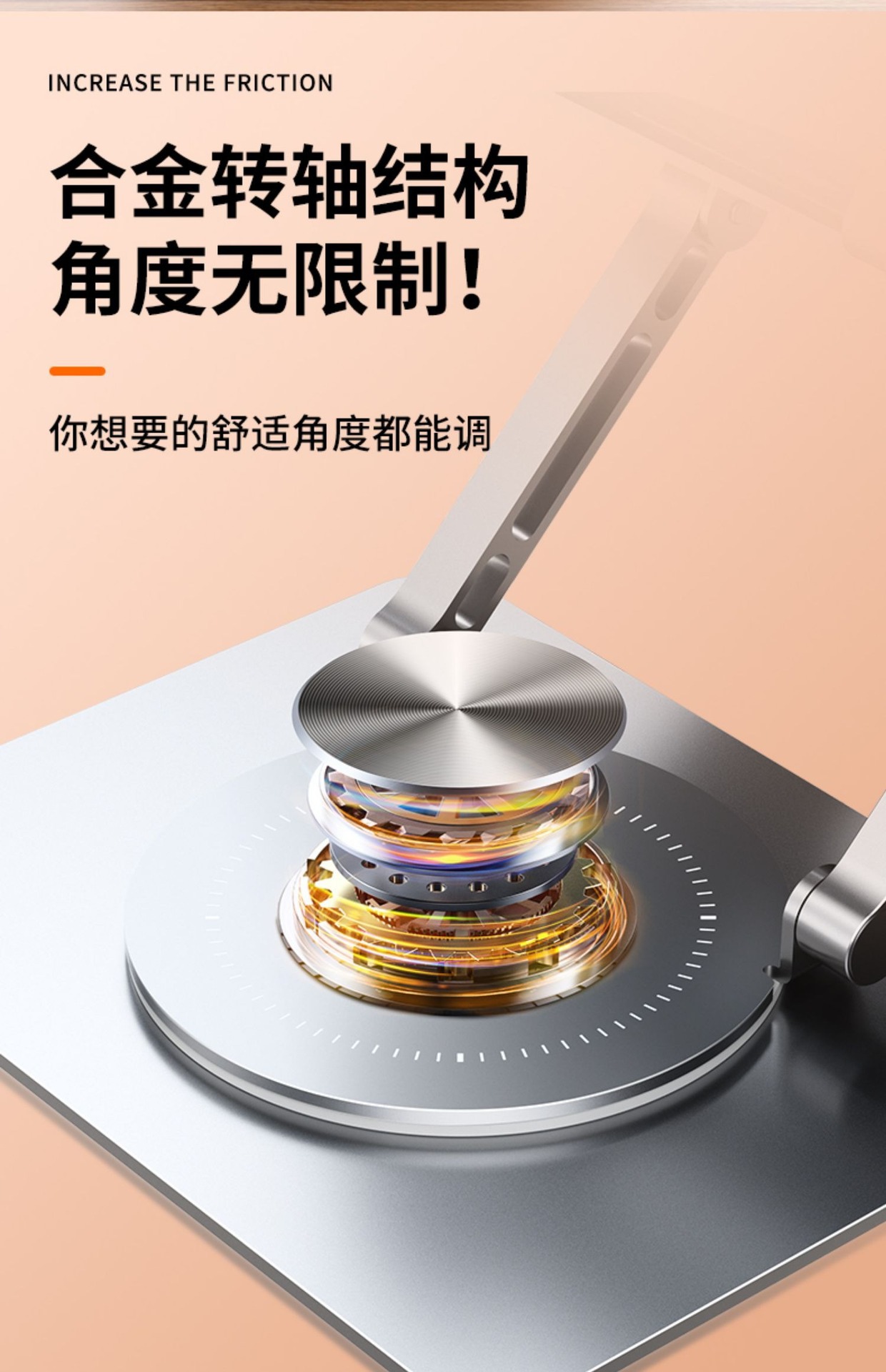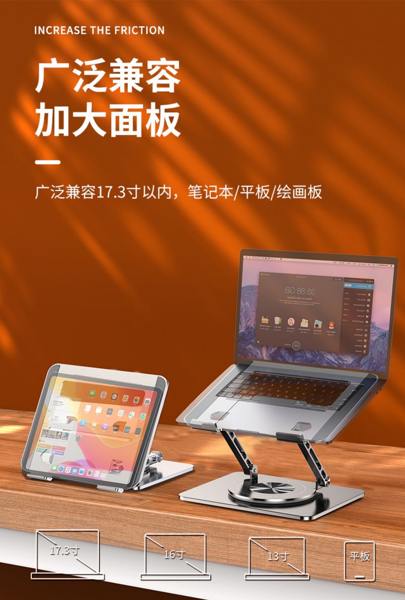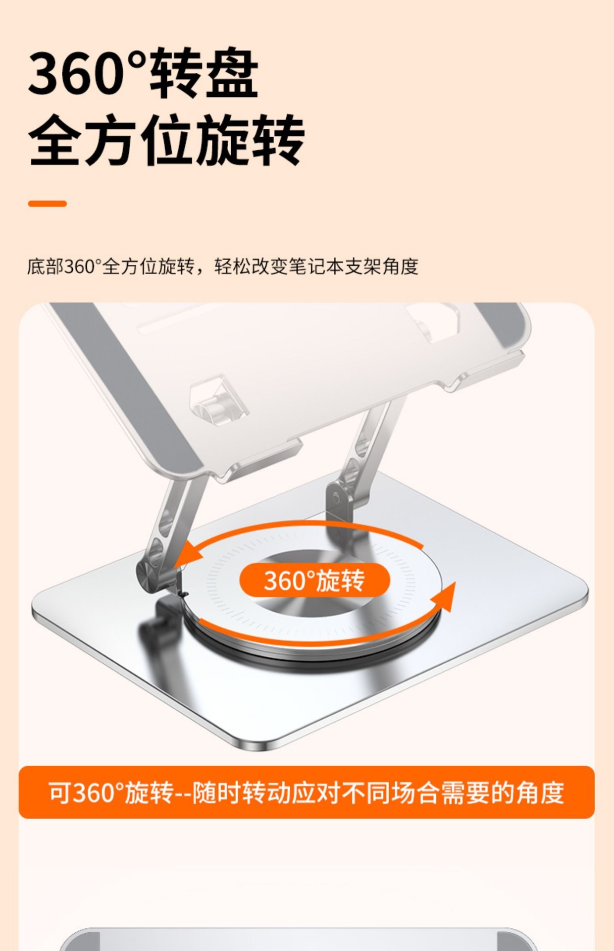 卖点:360度旋转,底座旋转盘很大,放大笔记本稳固,铝合金材质,cnc,阳极氧化工艺,品质好适合外贸客户,追求细节