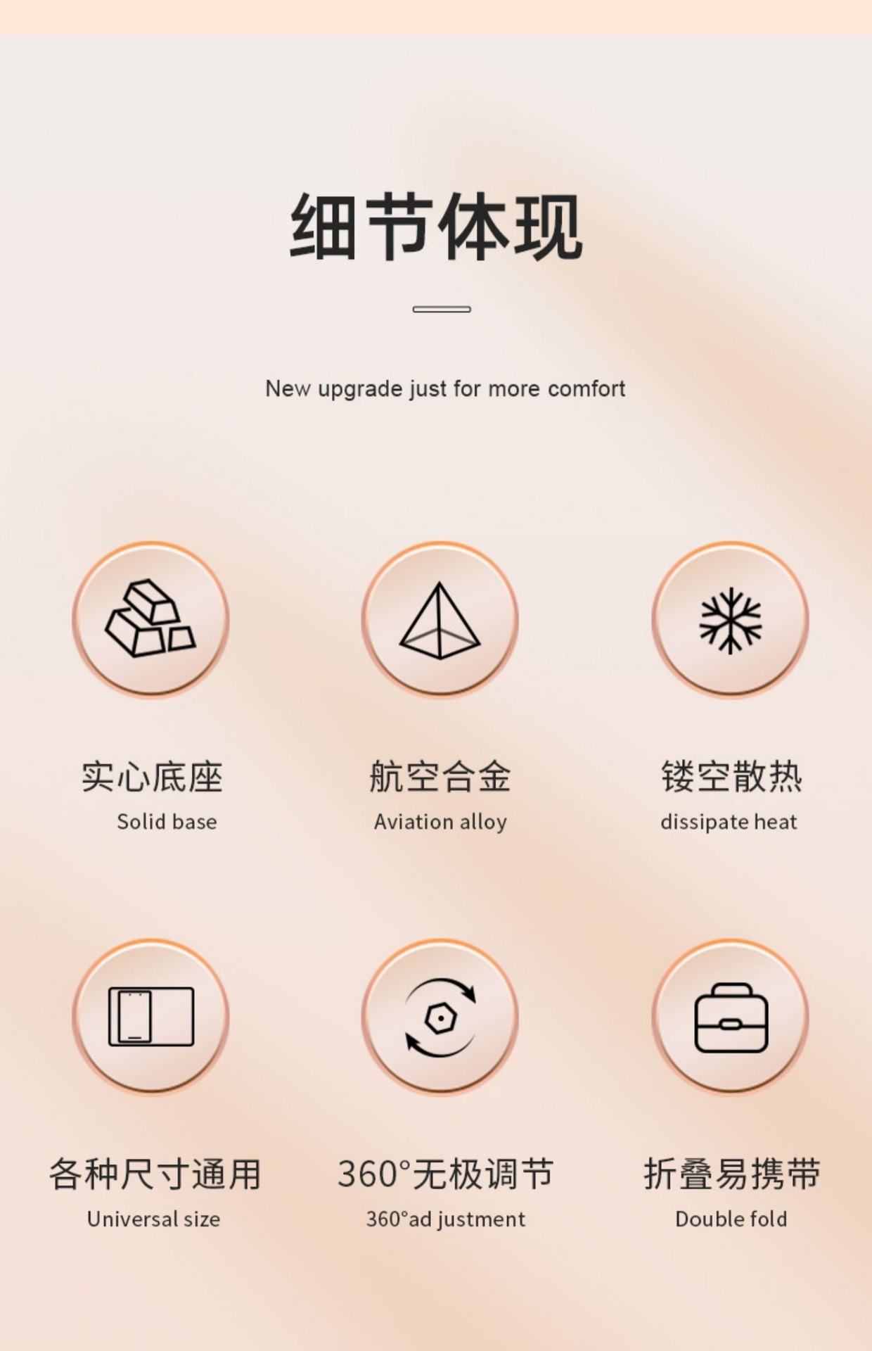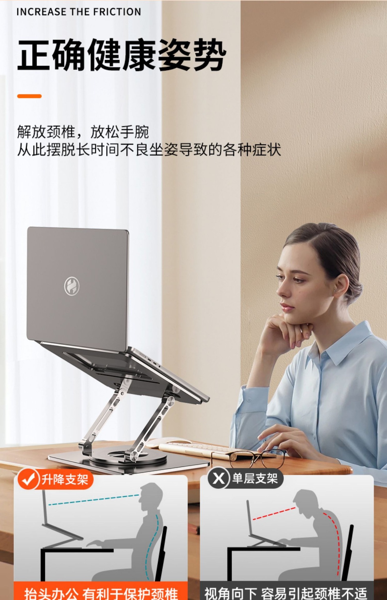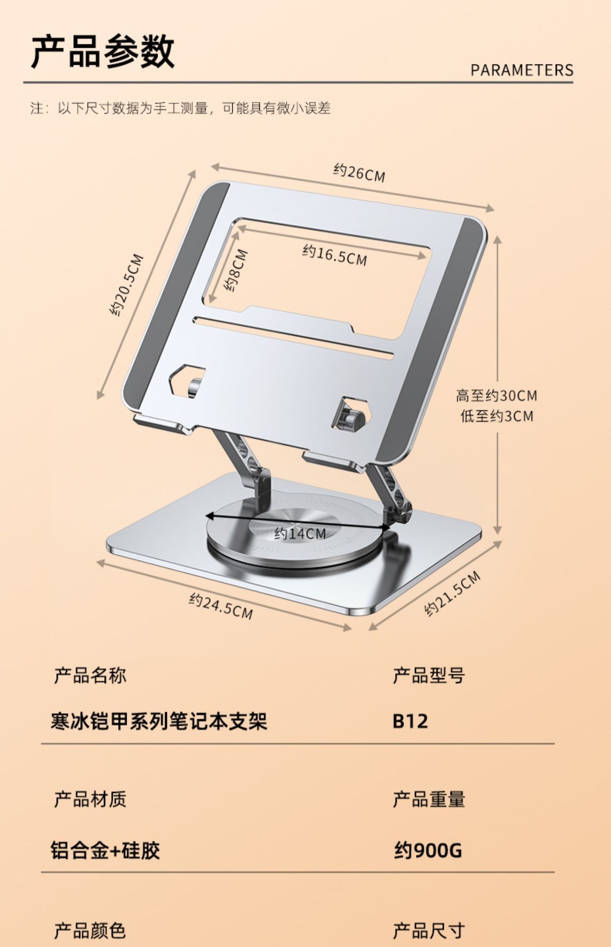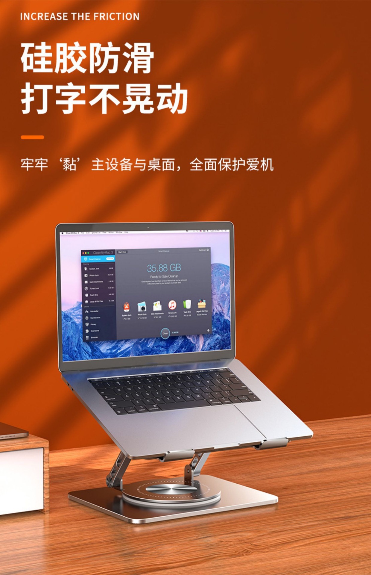 卖点:360度旋转,底座旋转盘很大,放大笔记本稳固,铝合金材质,cnc,阳极氧化工艺,品质好适合外贸客户,追求细节